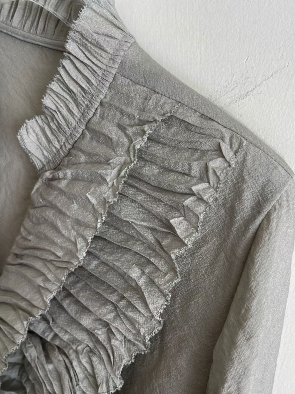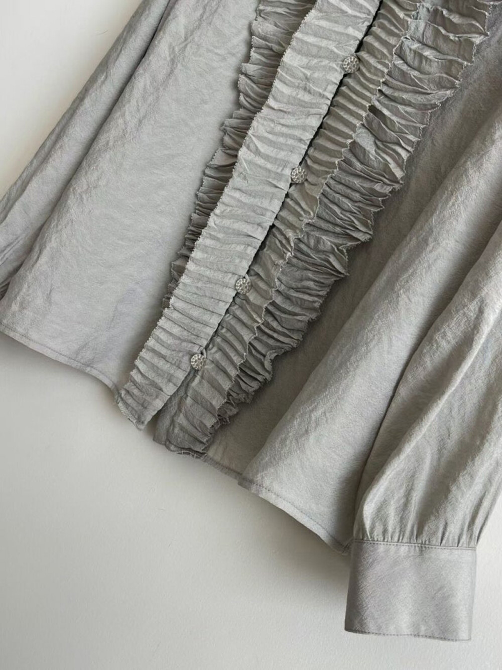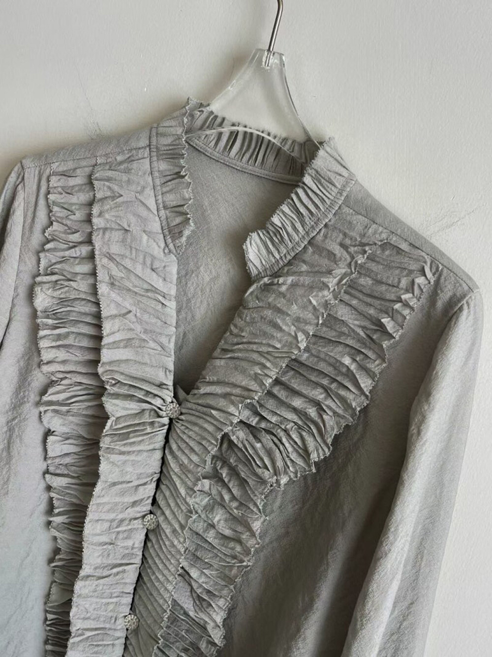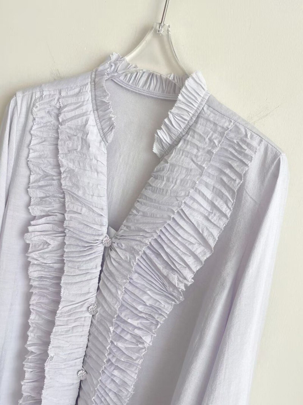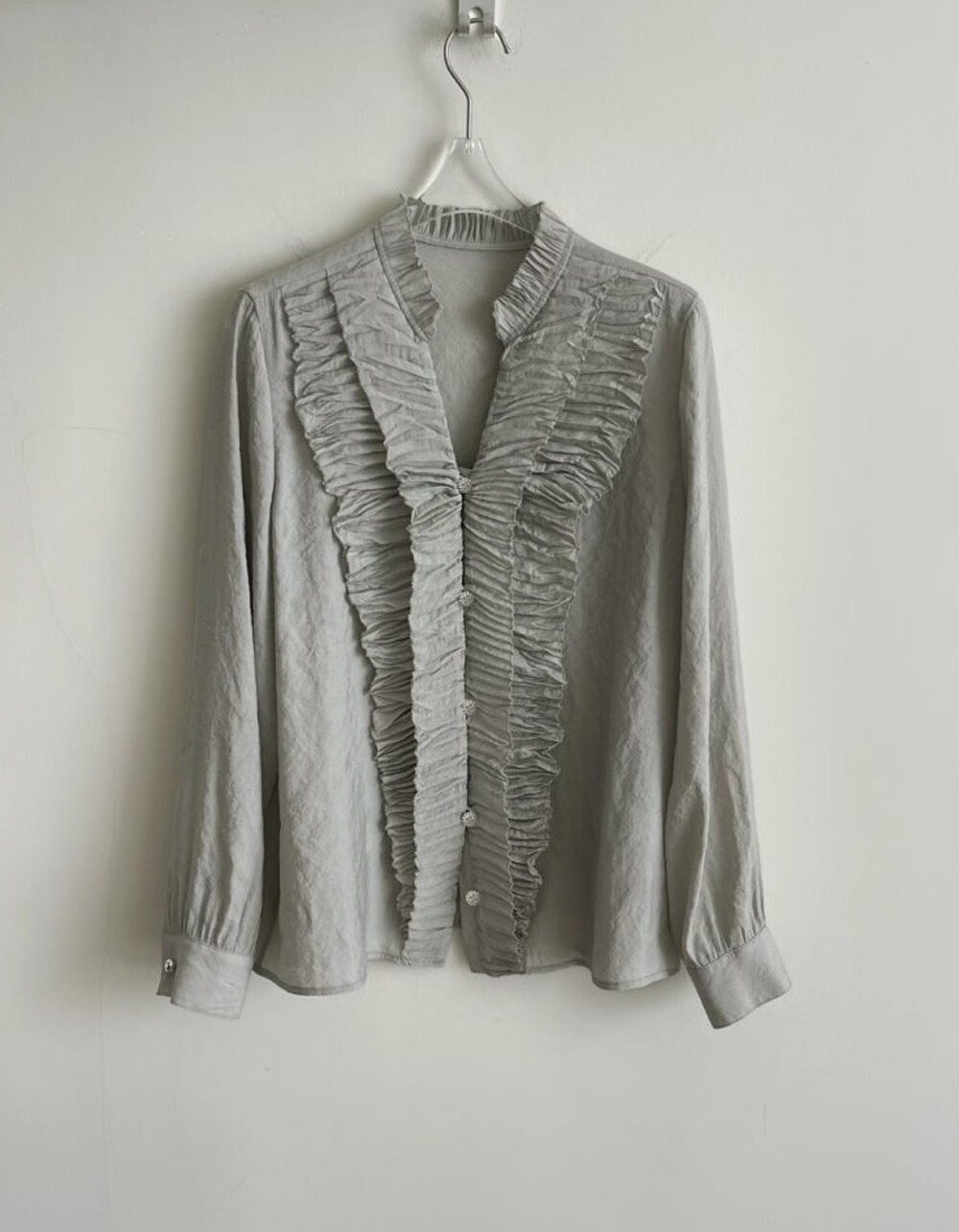 랑방컬렉션 러플 패널 모크넥 블라우스