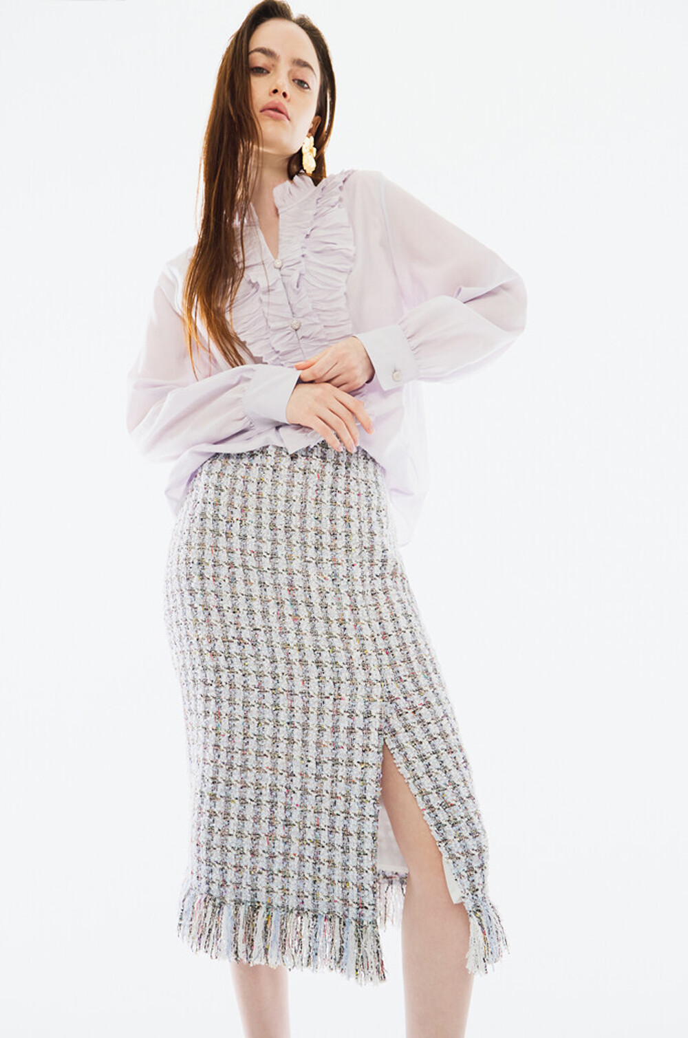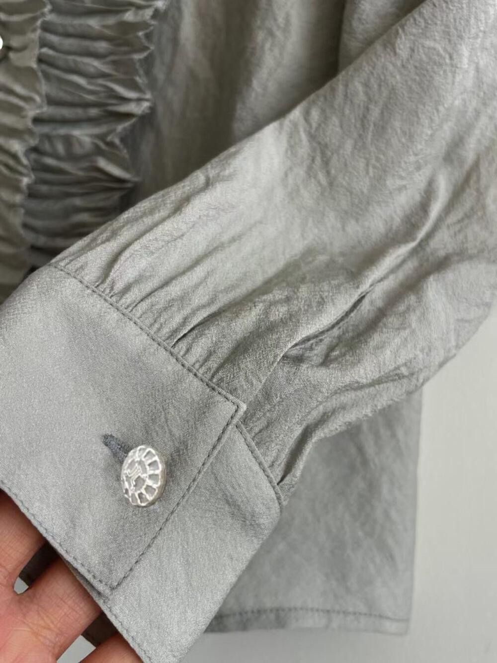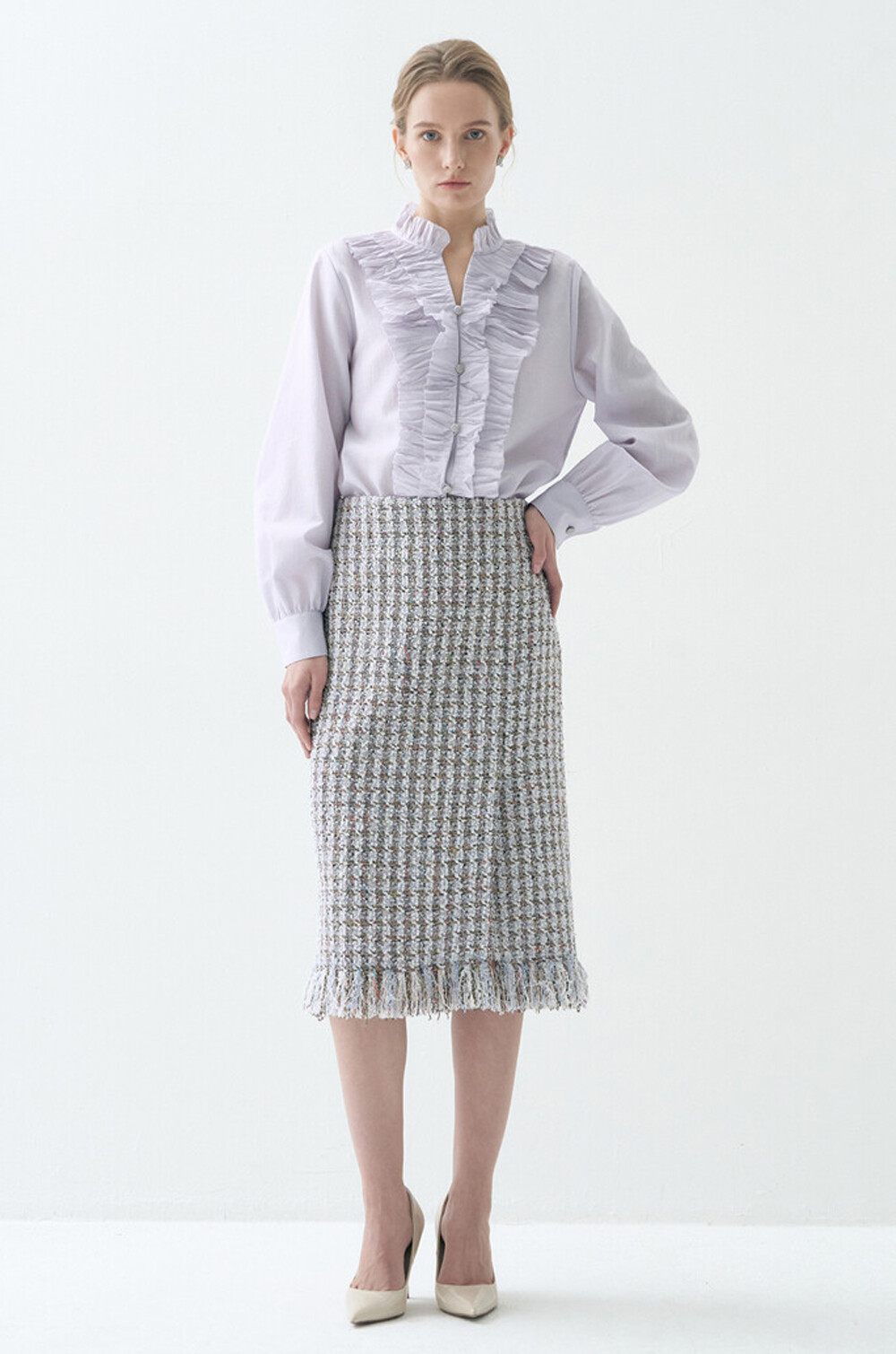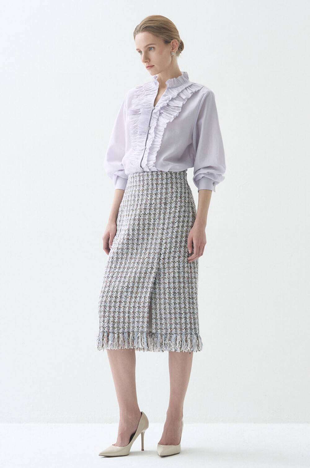 랑방컬렉션 러플 패널 모크넥 블라우스
