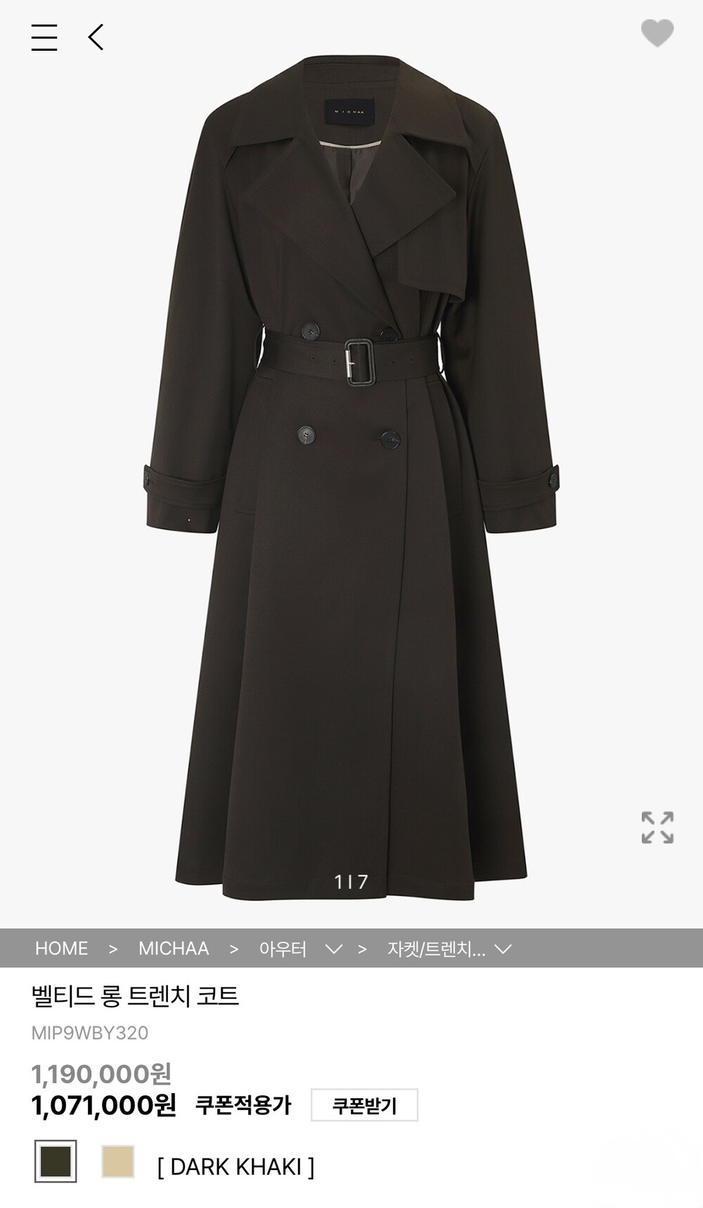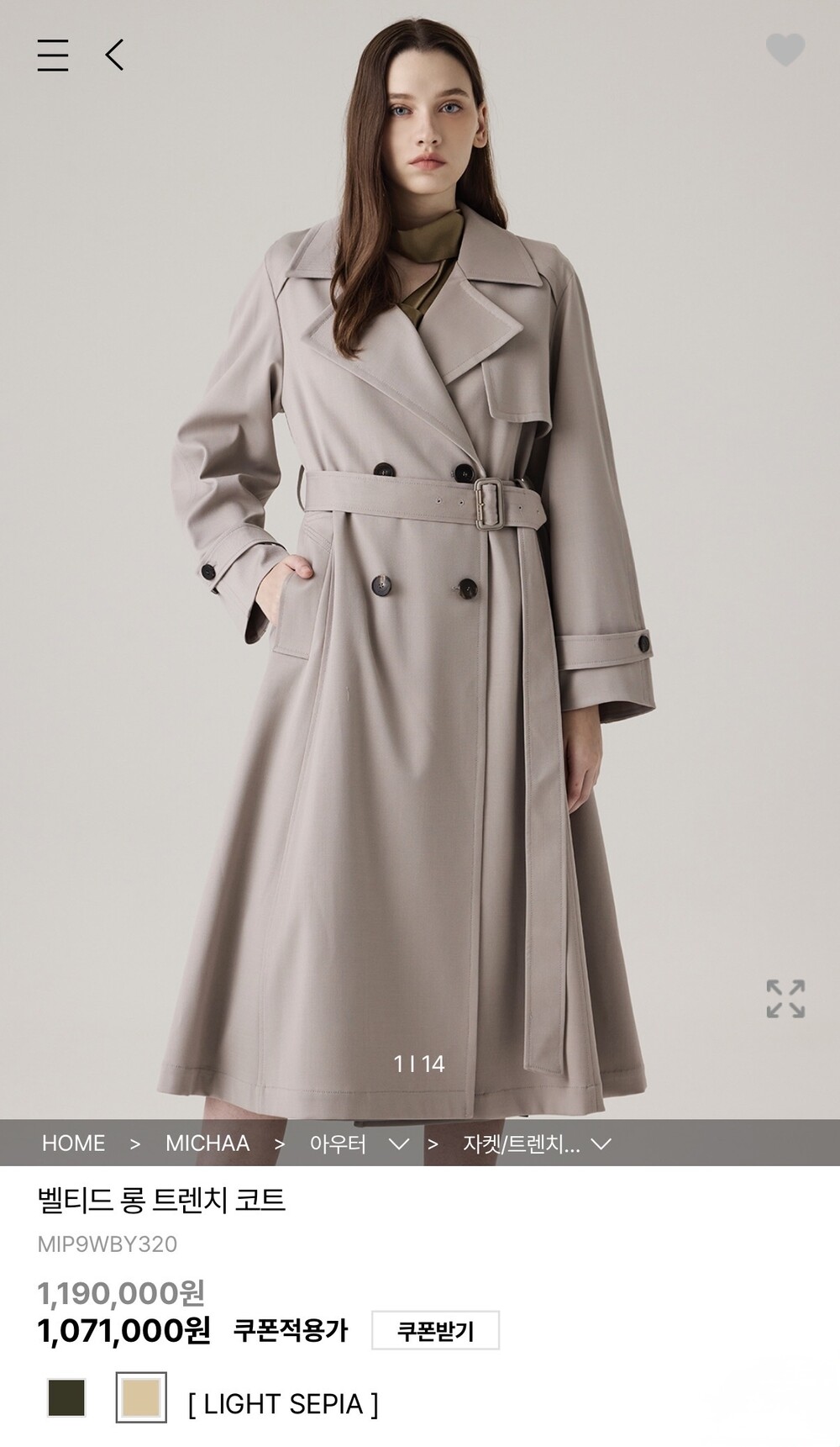 미샤의 울 혼방 롱 트렌치 코트예요.