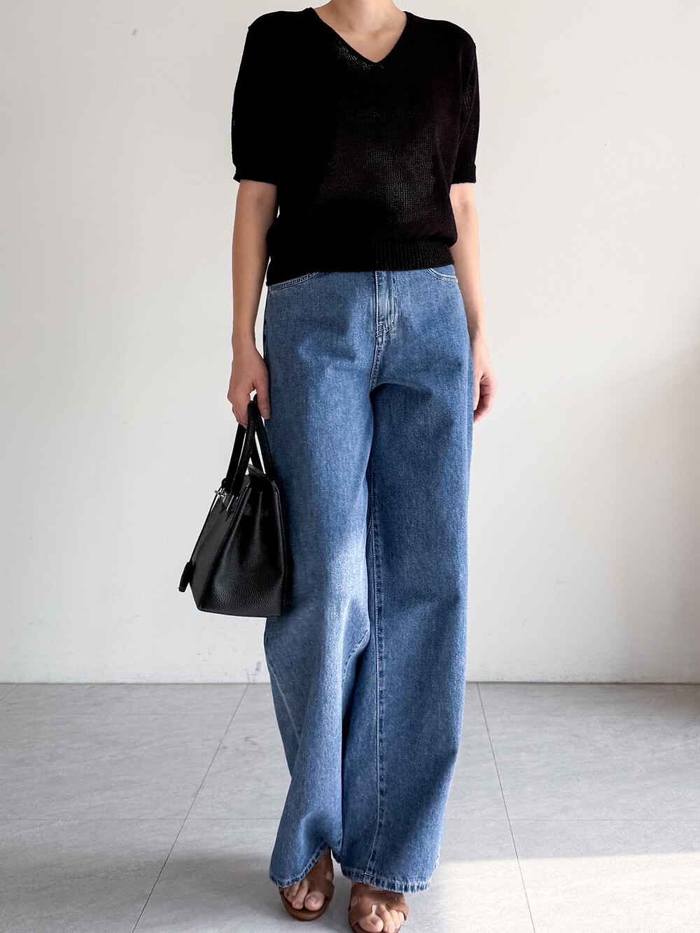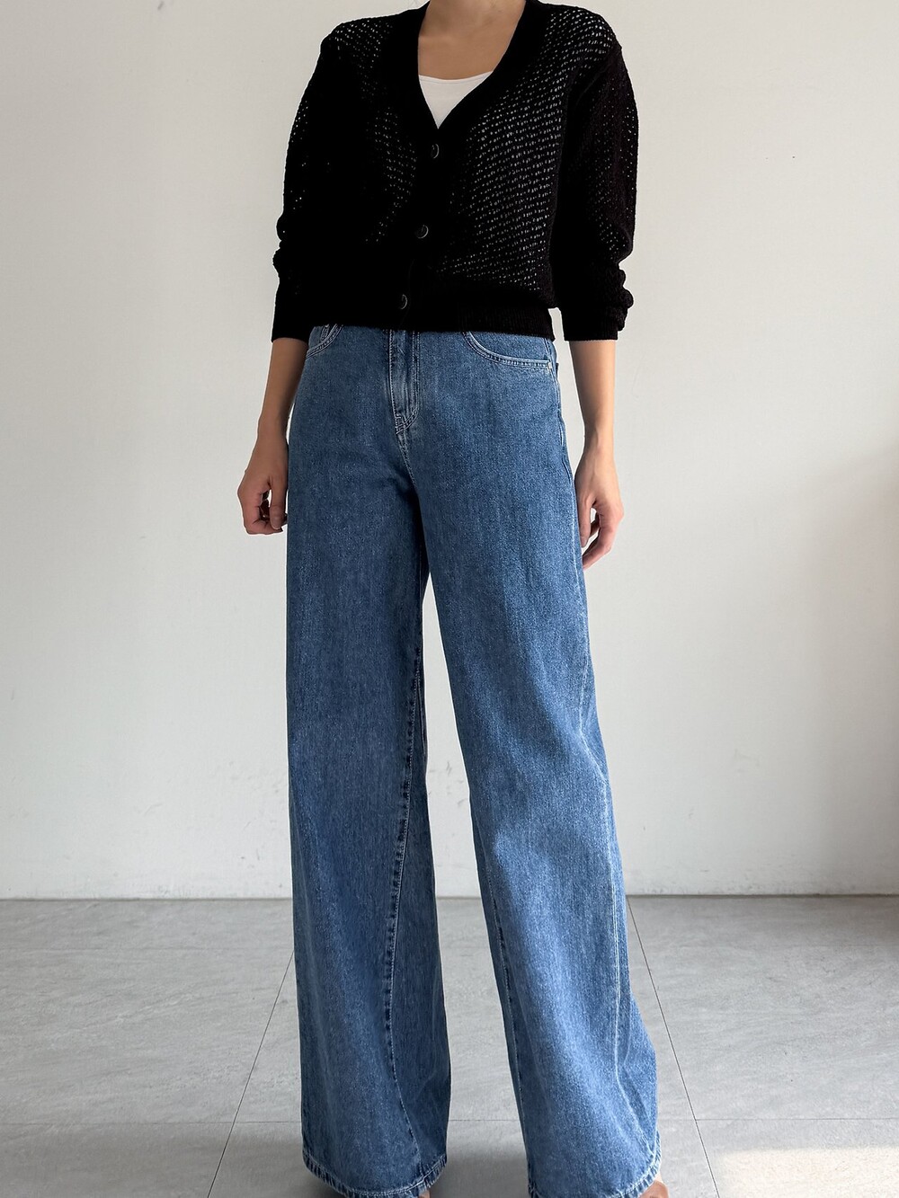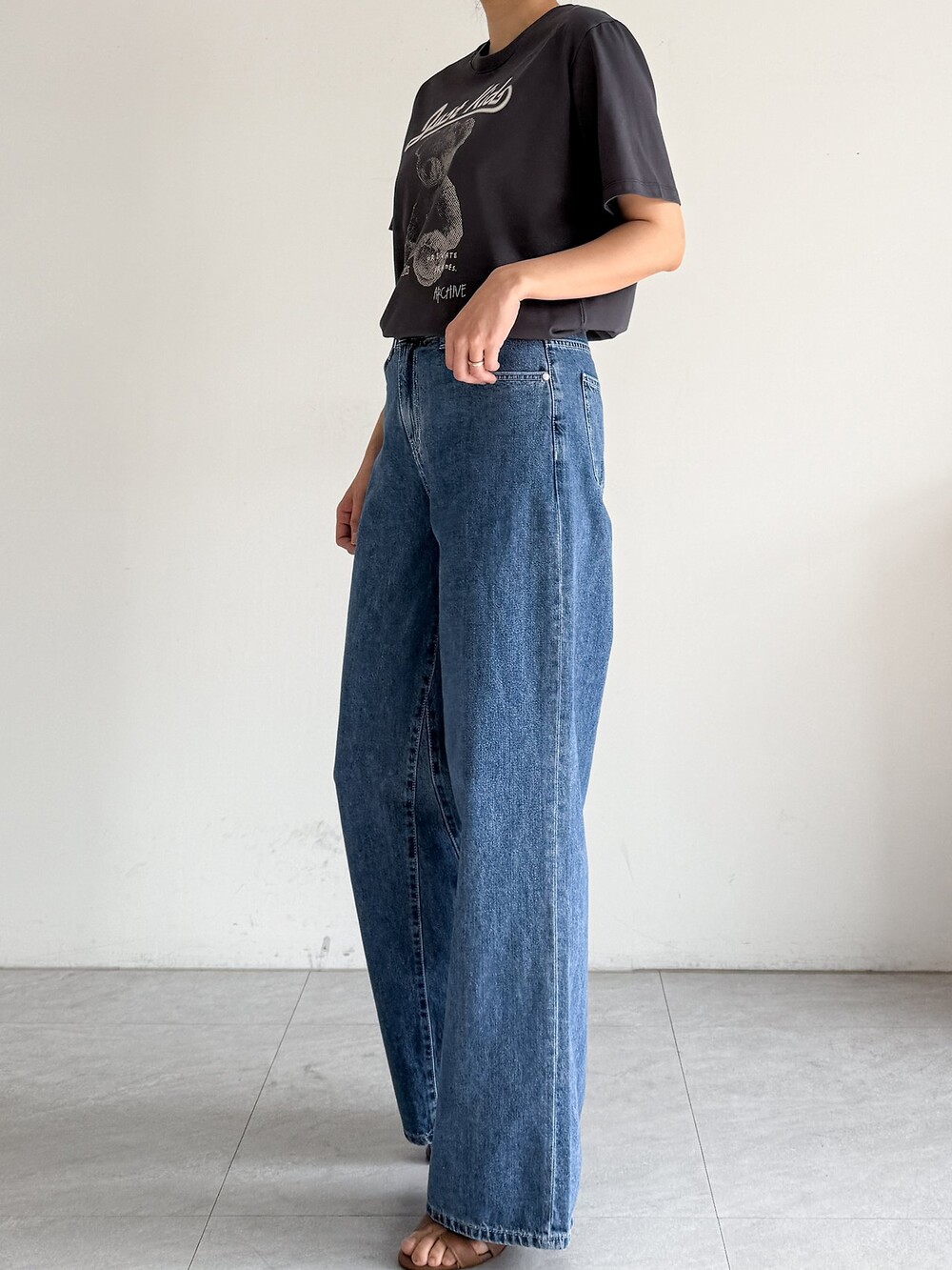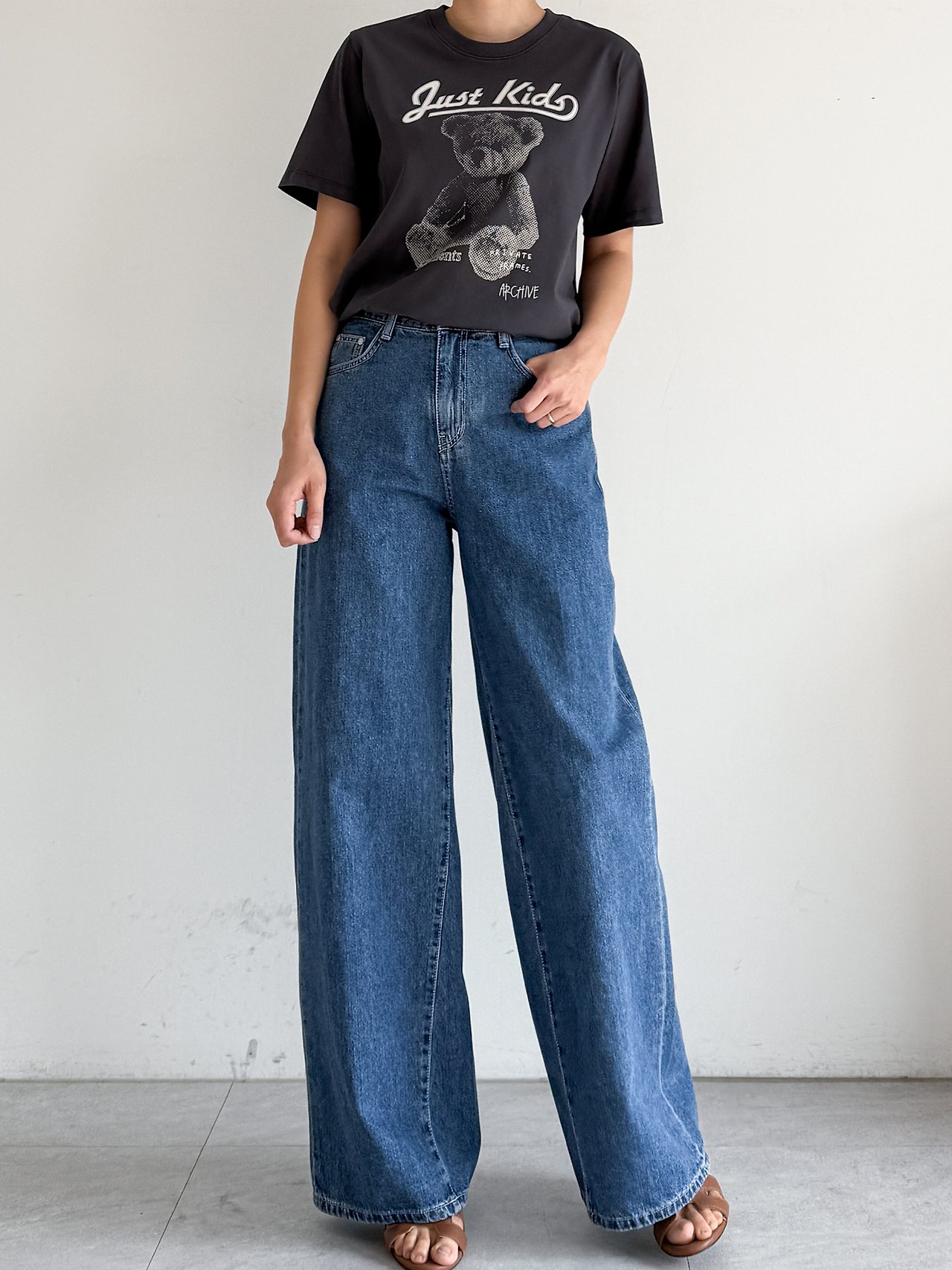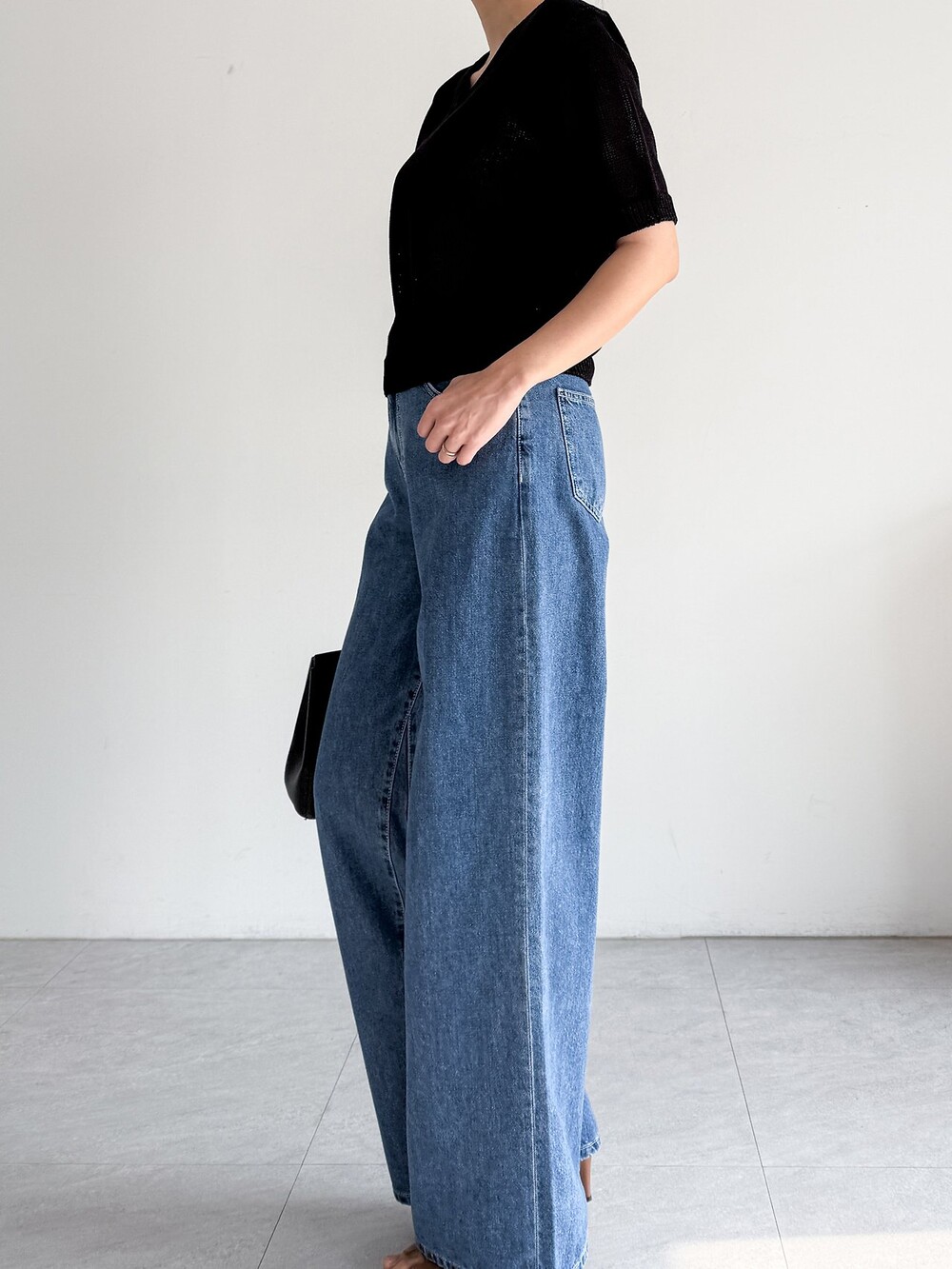 여유로운 와이드 핏 데님 팬츠입니다.