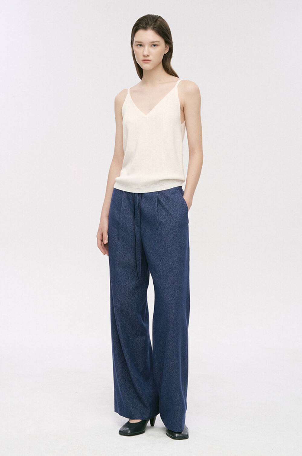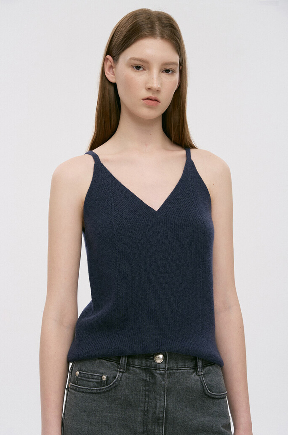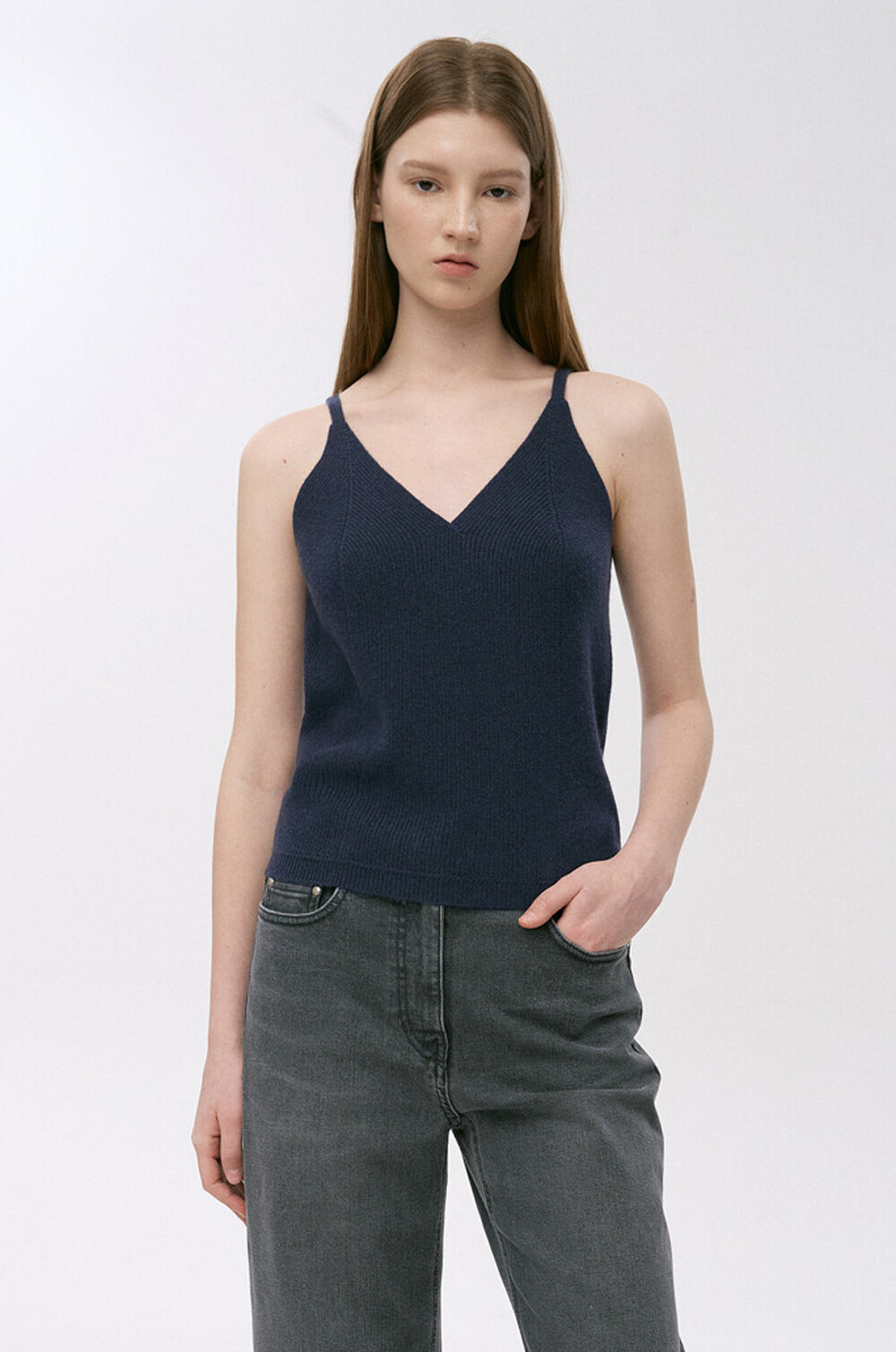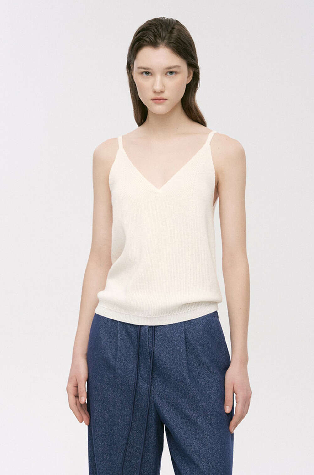 타임 캐시미어 블렌드 리브드 슬리브리스 탑