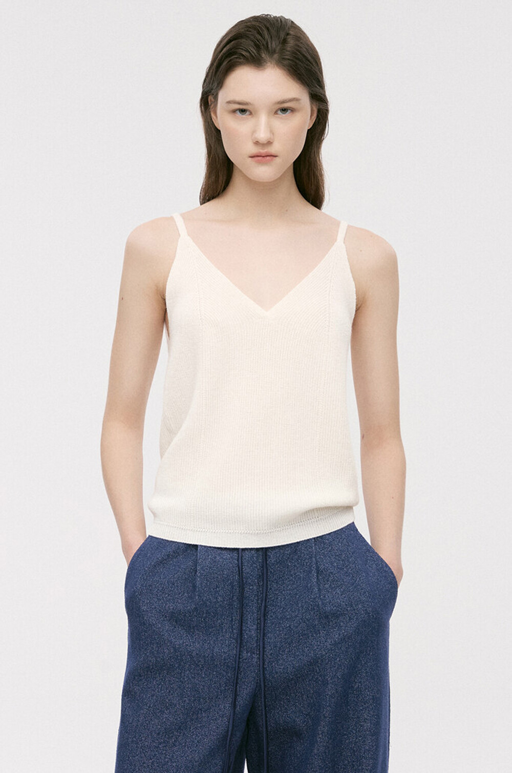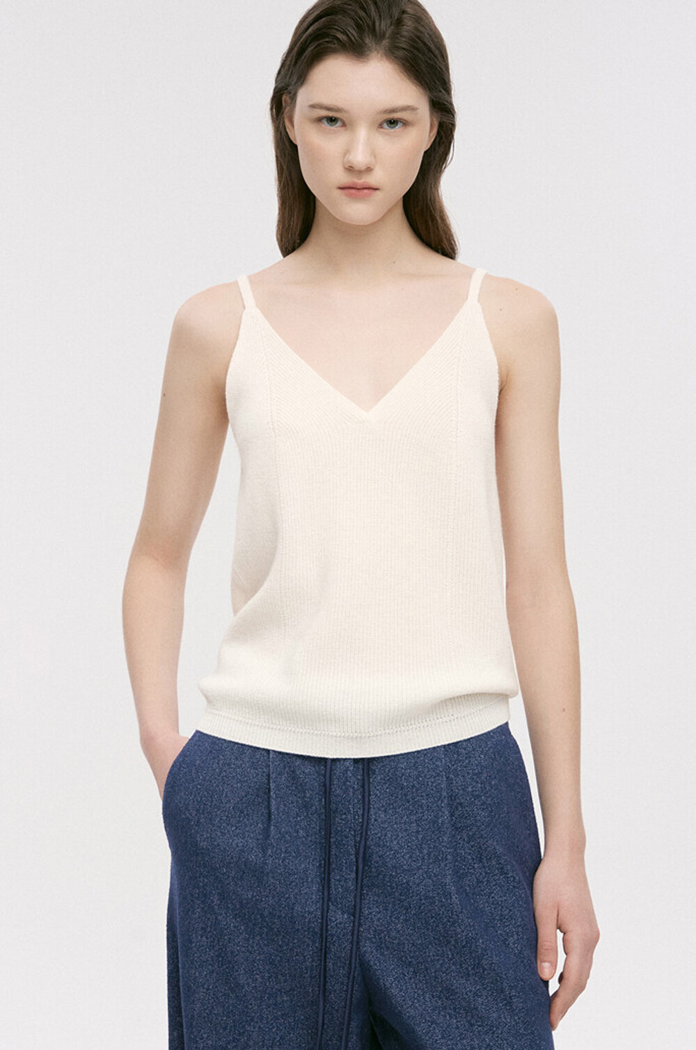 리브 텍스처와 브이넥 디자인이