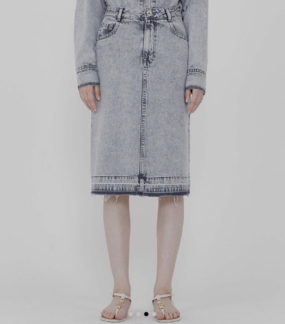 - 고급 순면으로 제작된 워시드 헴 라인 데님 스커트.