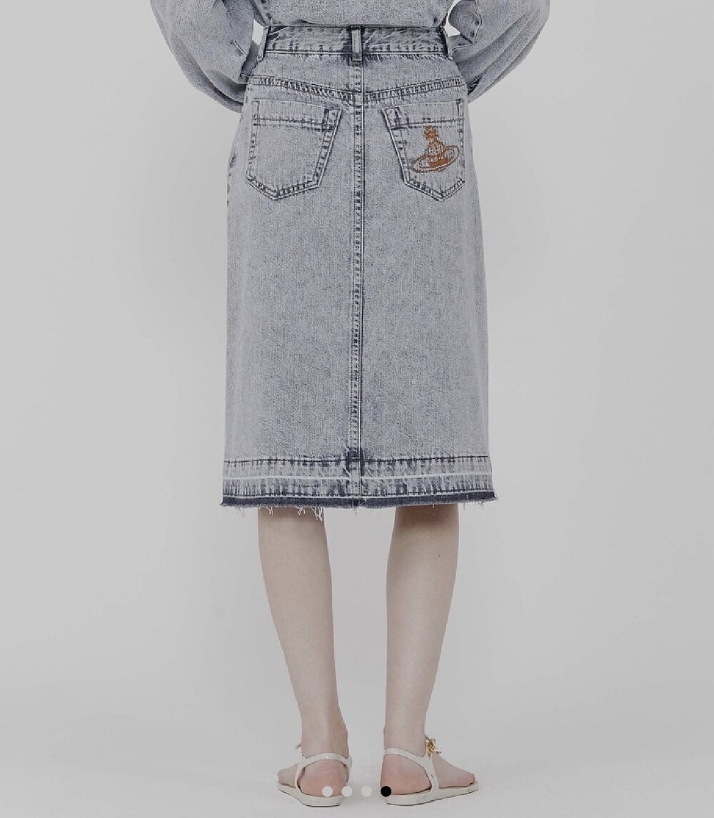 비비안웨스트우드 워시드 헴 라인 데님 스커트