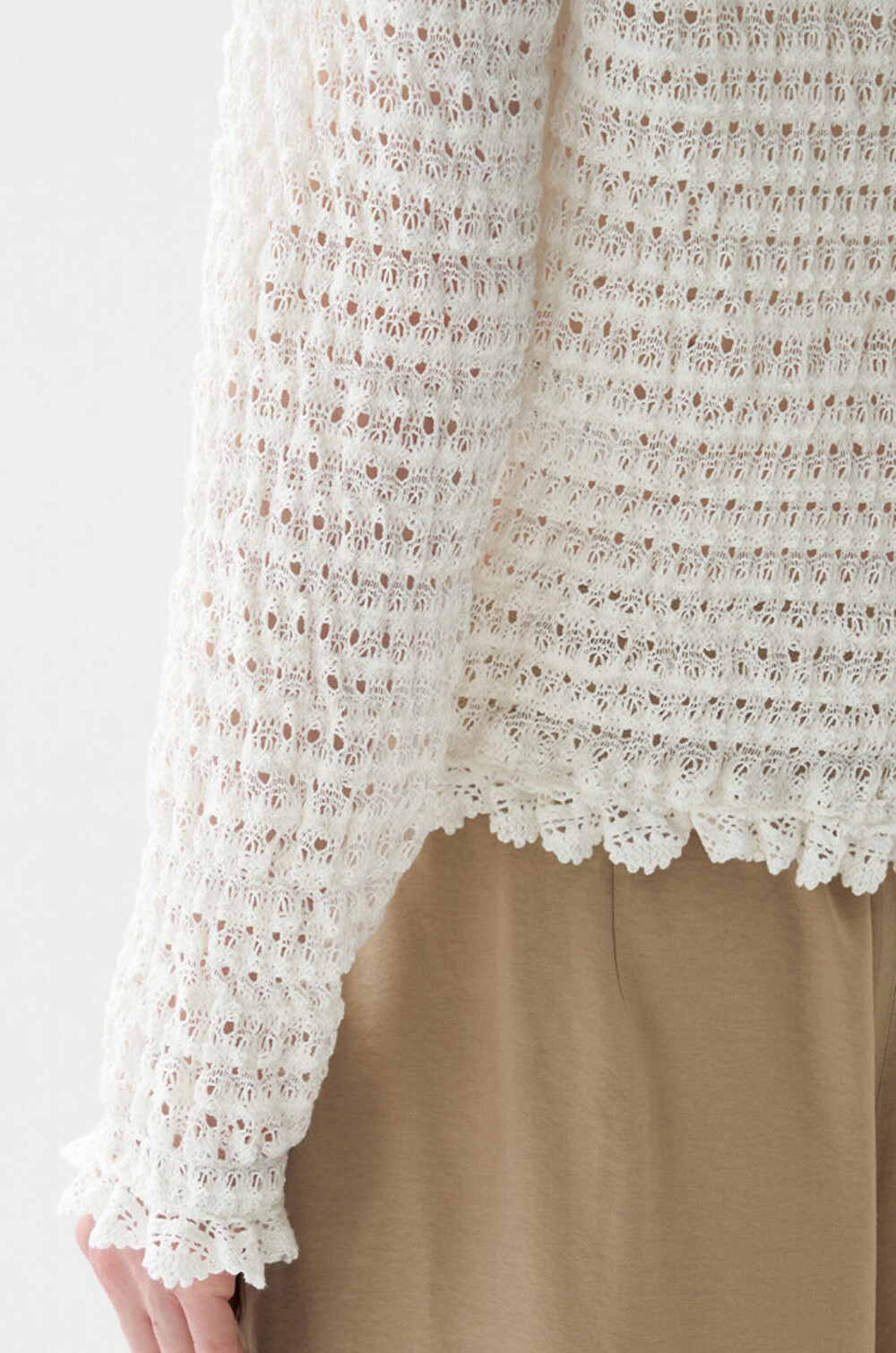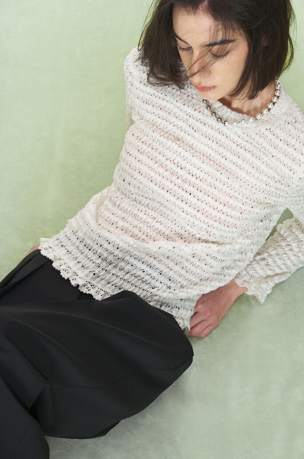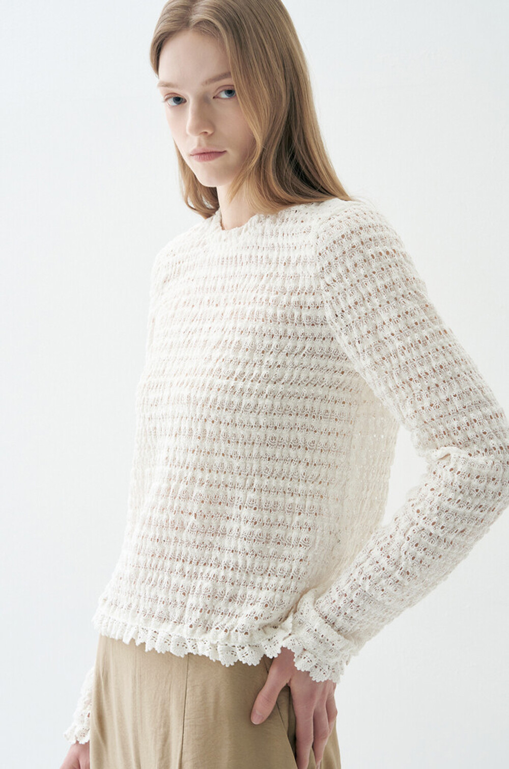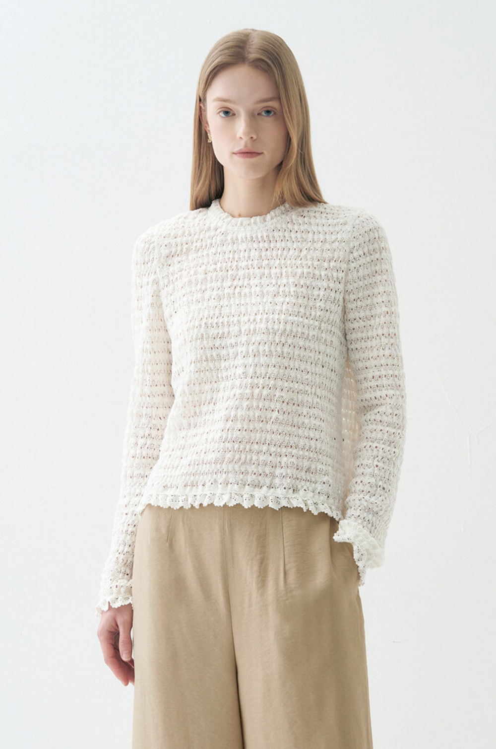 - 소맷단과 밑단에 스캘럽 레이스 블록