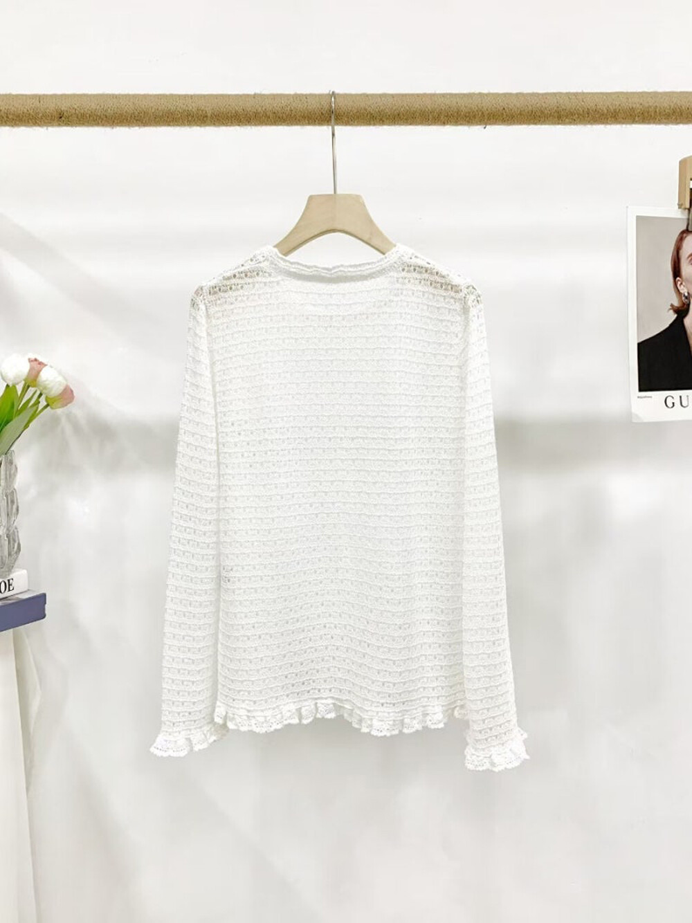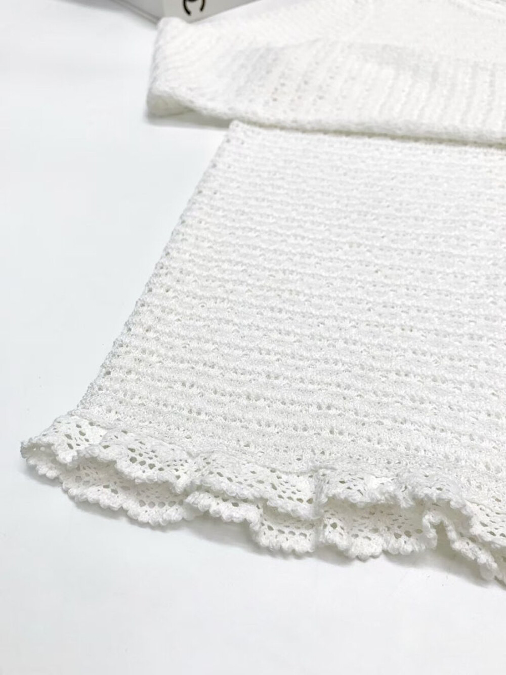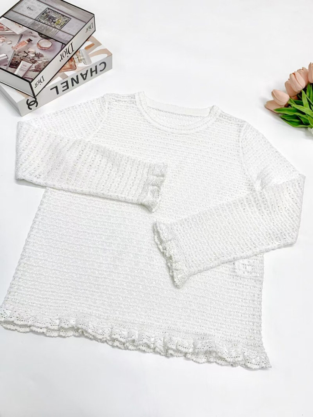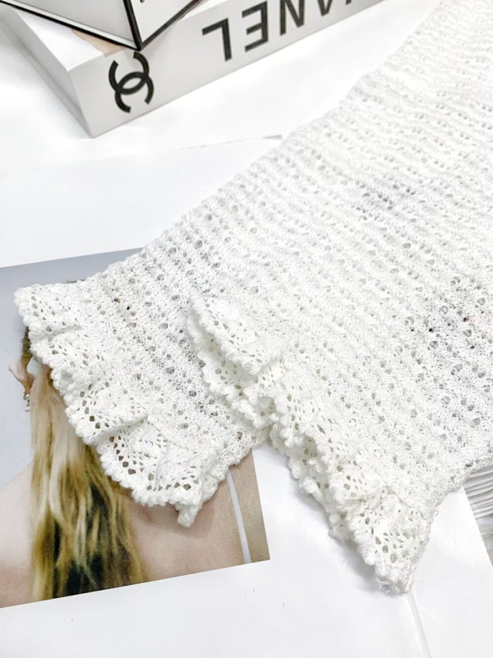 - 소맷단과 밑단에 스캘럽 레이스 블록