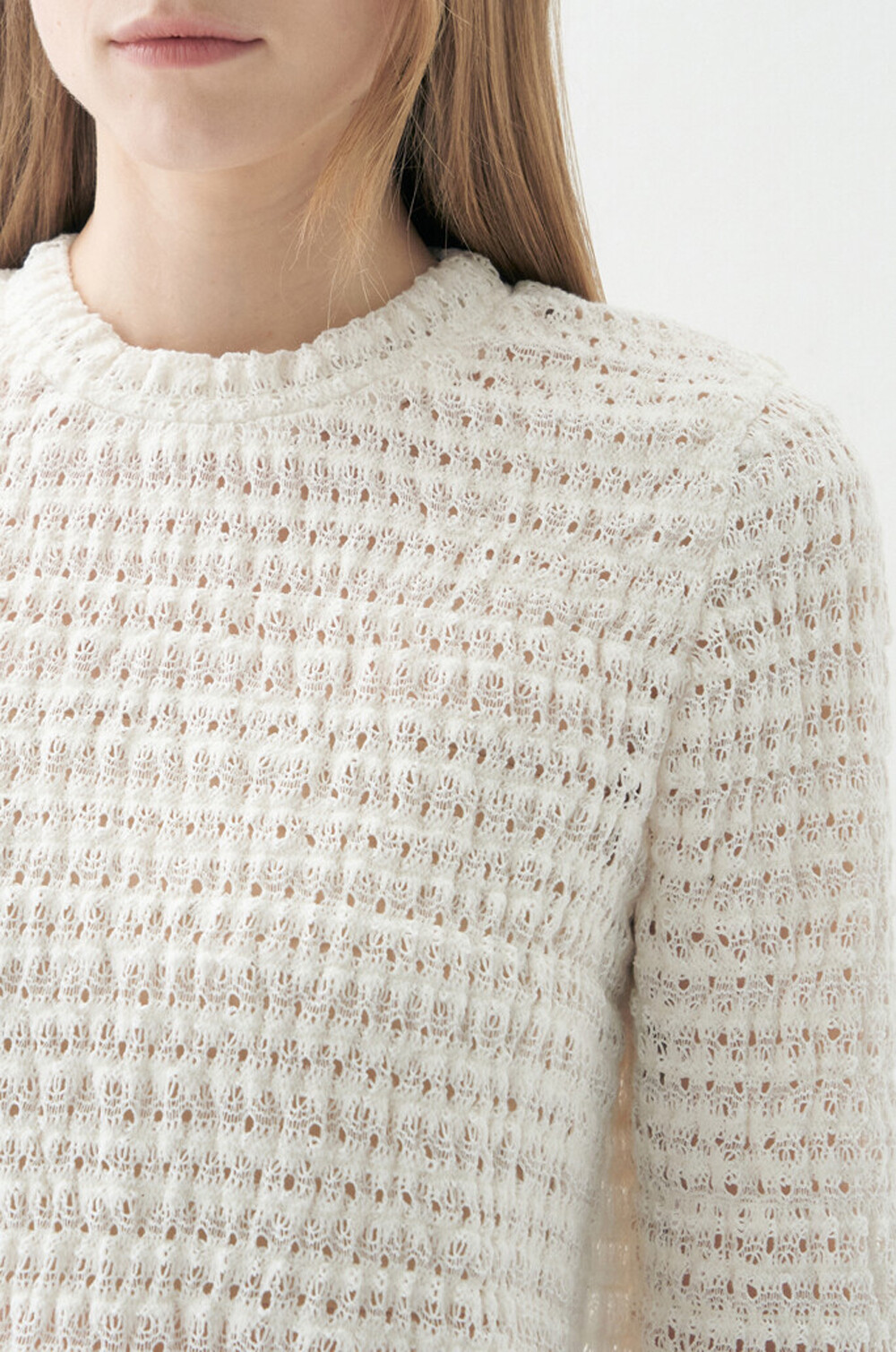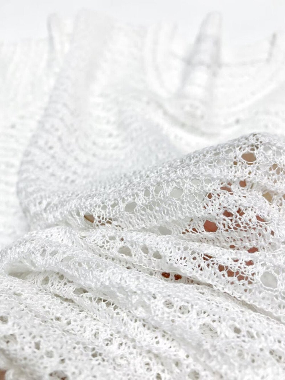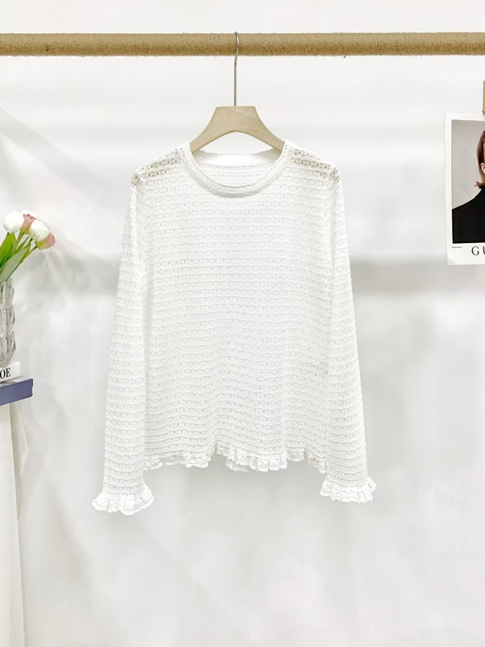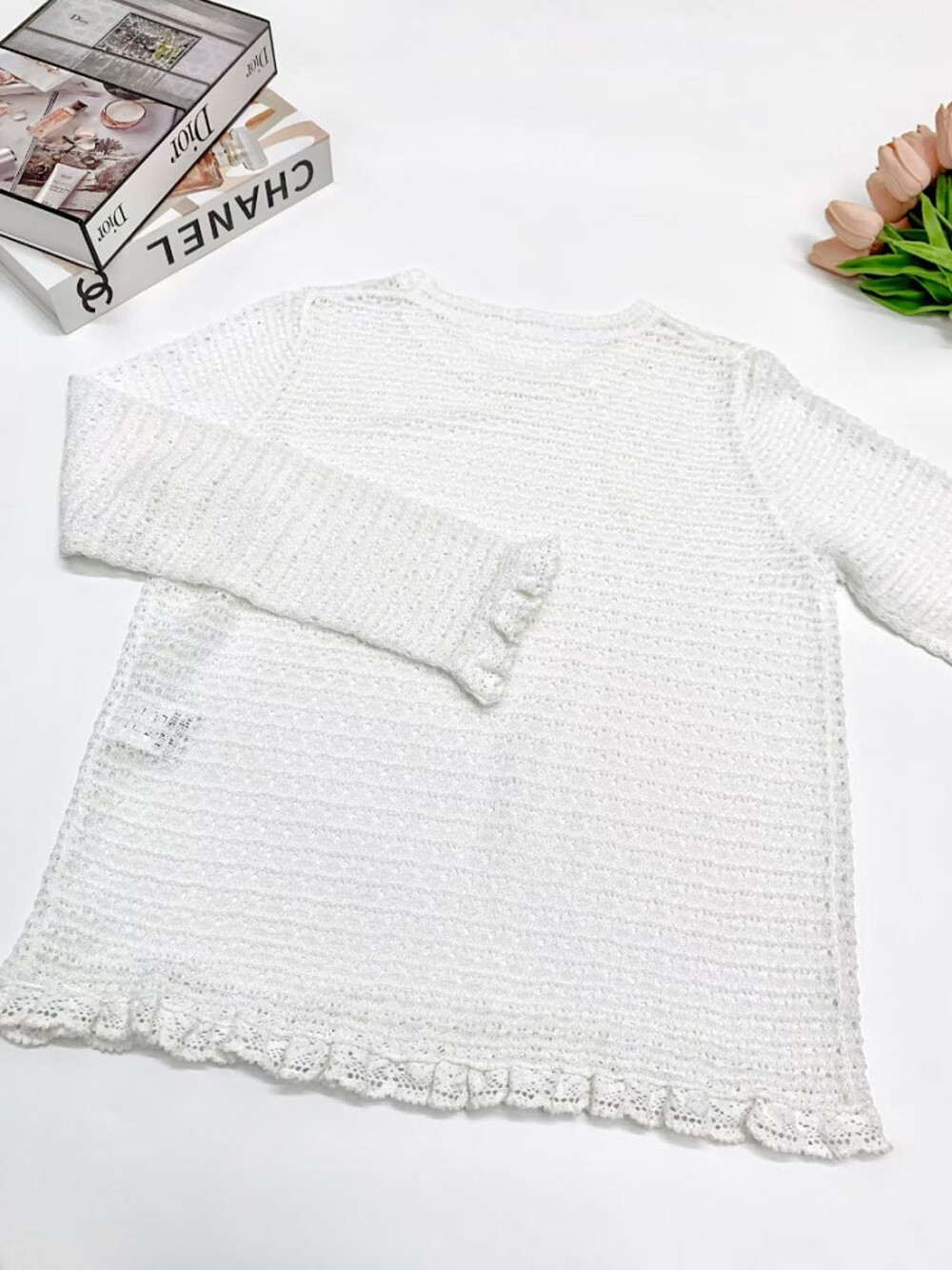 - 소맷단과 밑단에 스캘럽 레이스 블록
