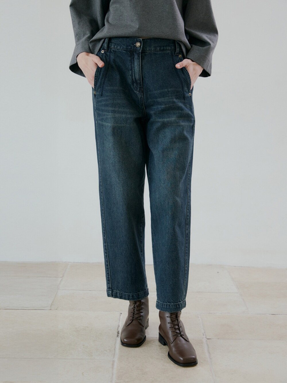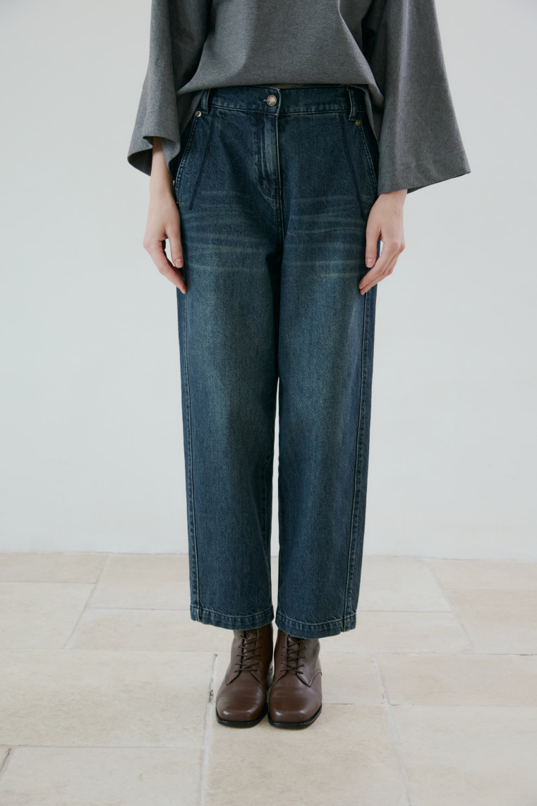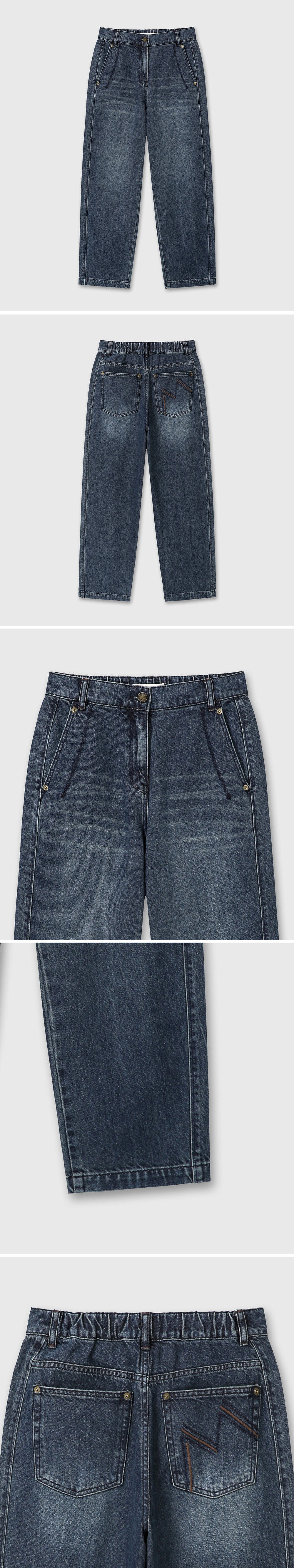 (세일) 백 밴딩 배기핏 데님 팬츠