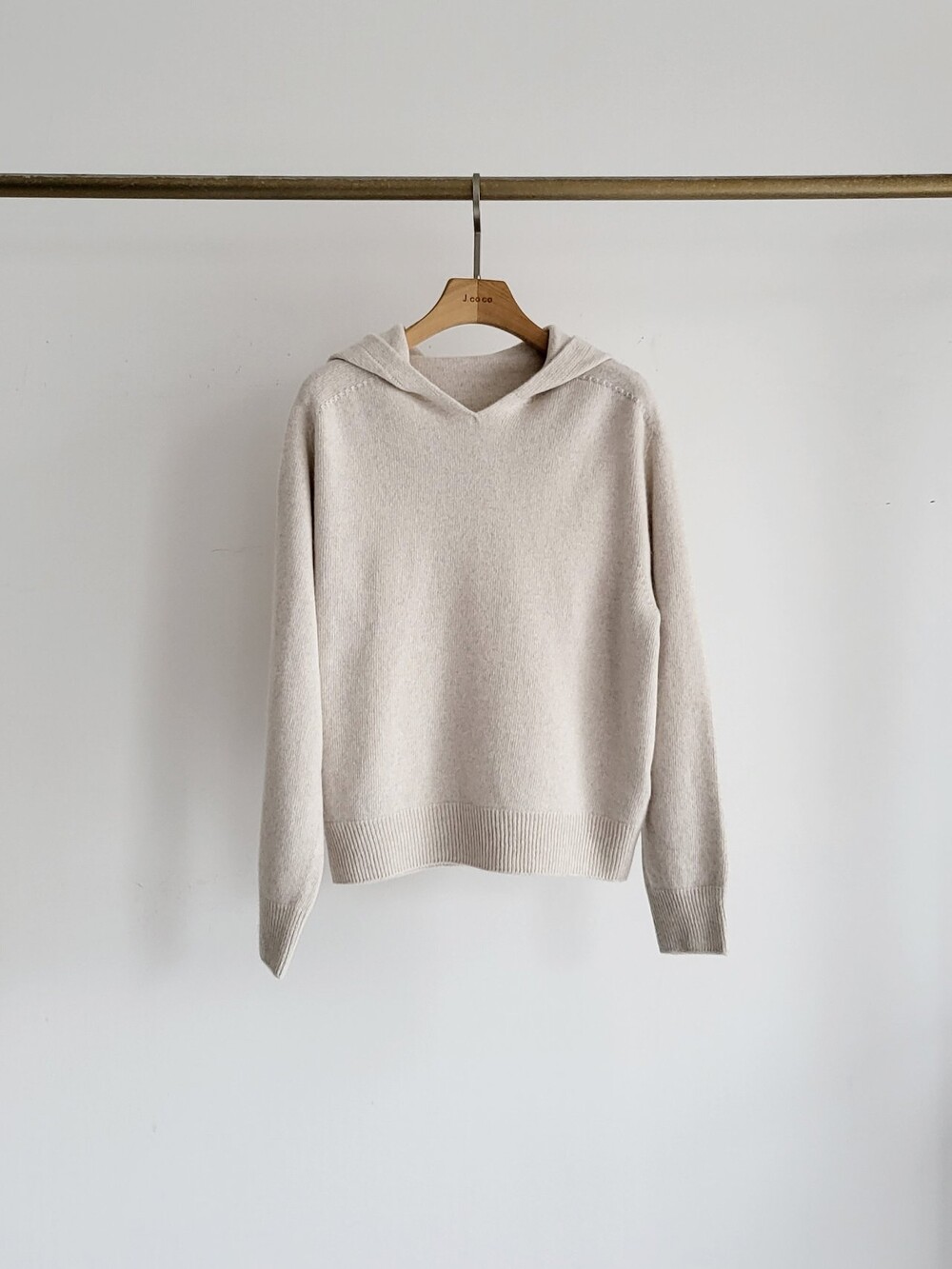 제이코코. J 캐시미어 블렌드 후드 니트 풀오버