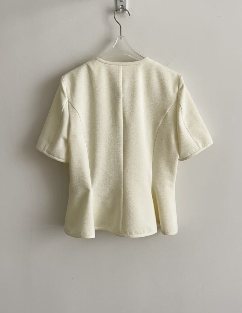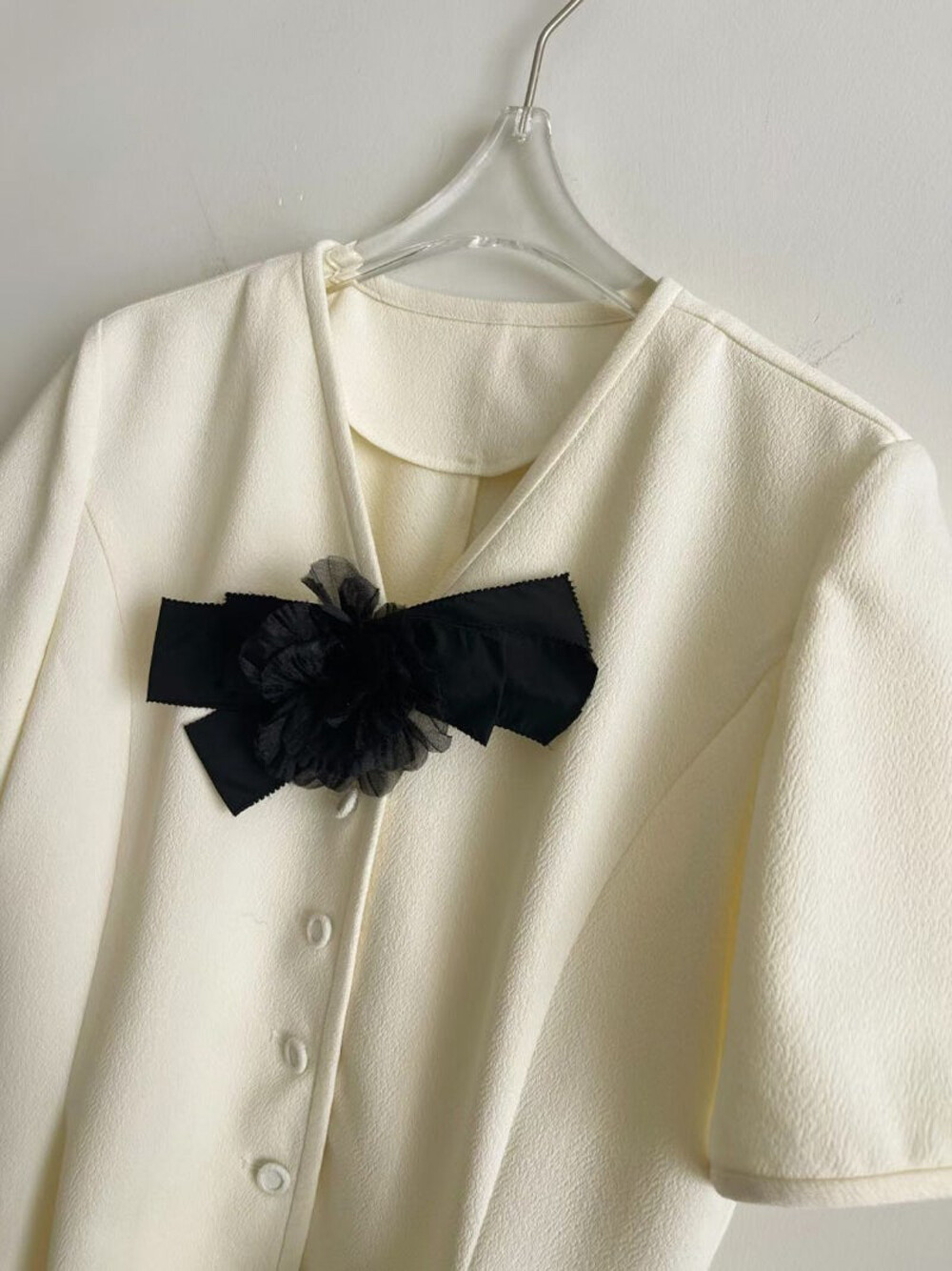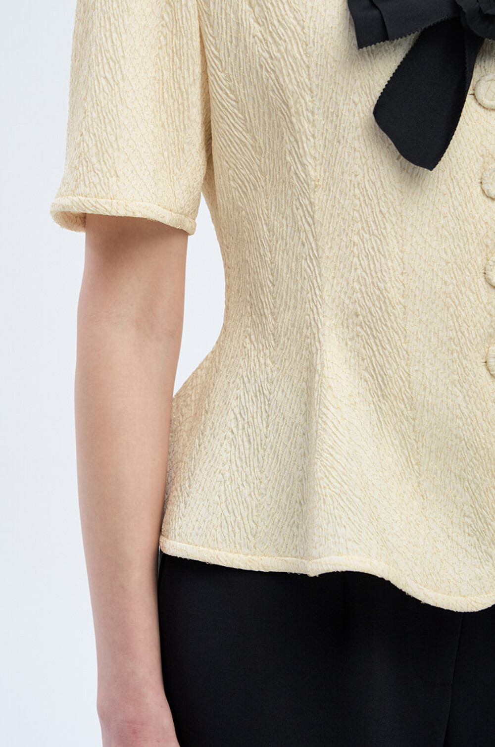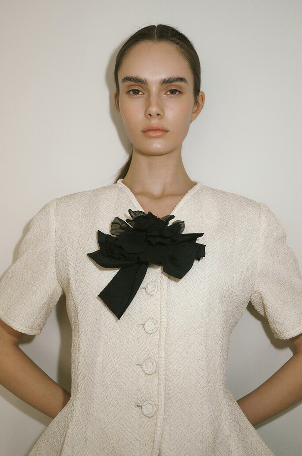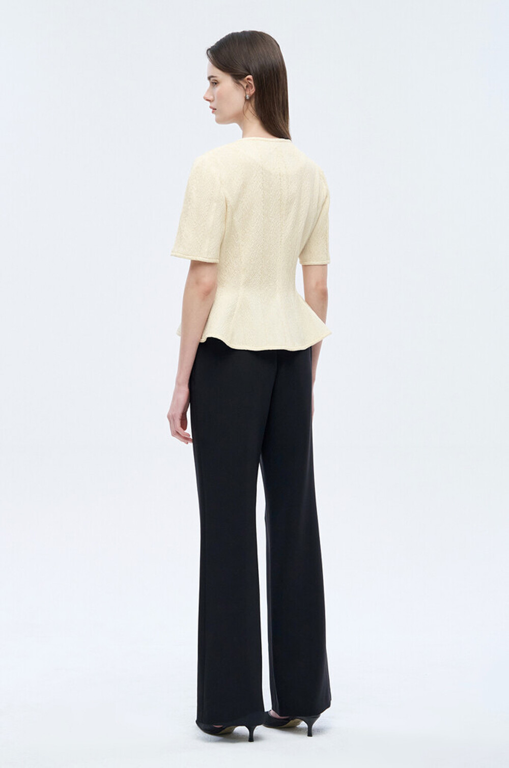 오브제 텍스처드 페플럼 헴 블라우스 & 플라워 브로치