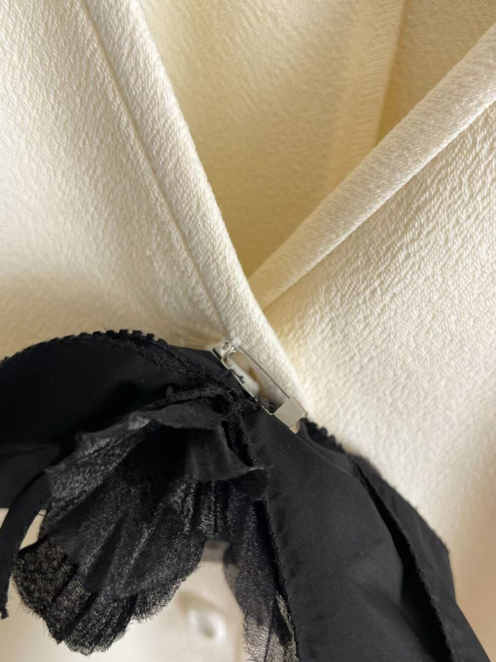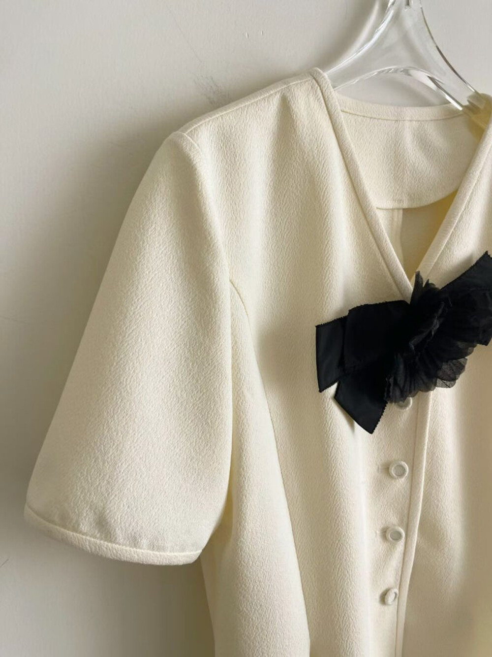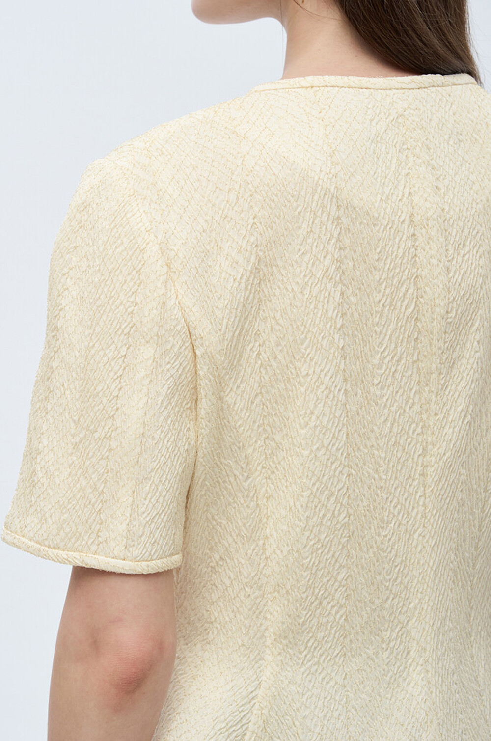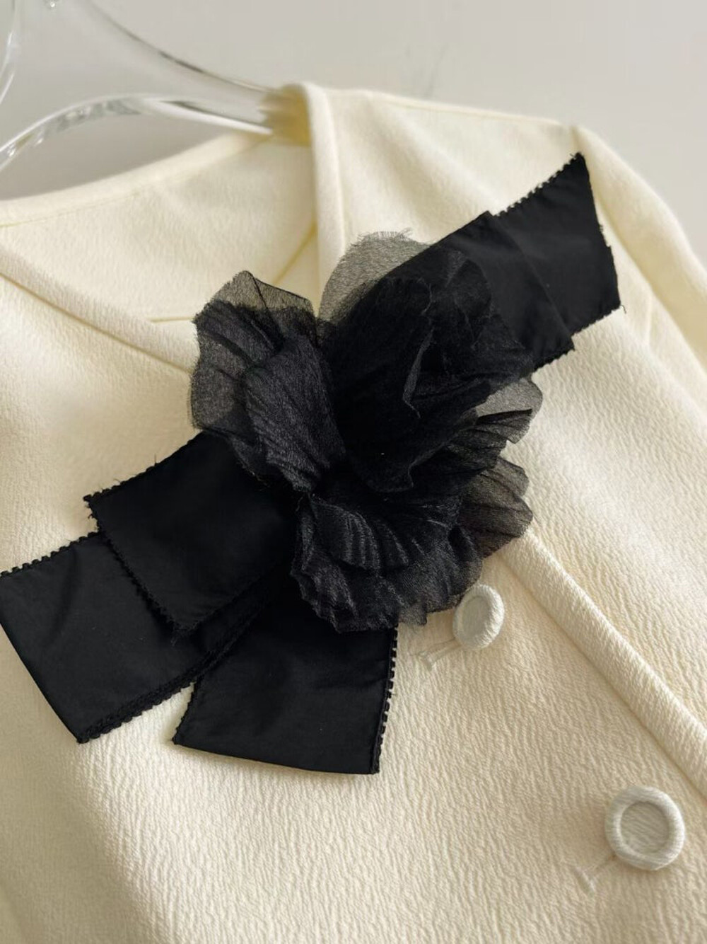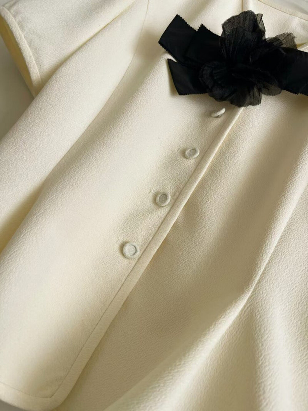 오브제 텍스처드 페플럼 헴 블라우스 & 플라워 브로치