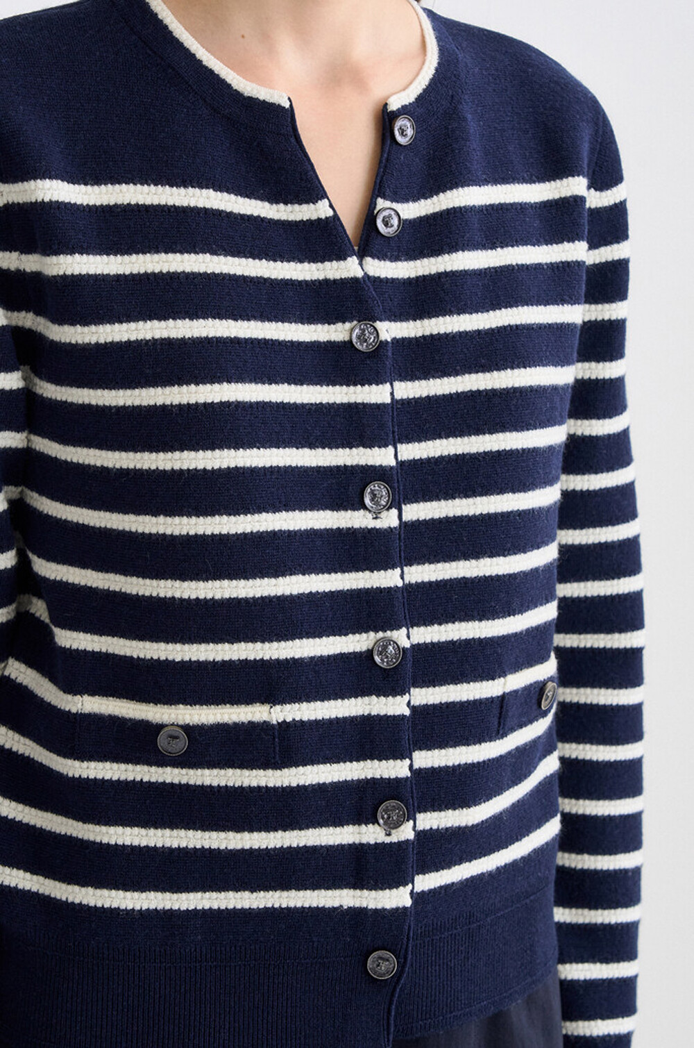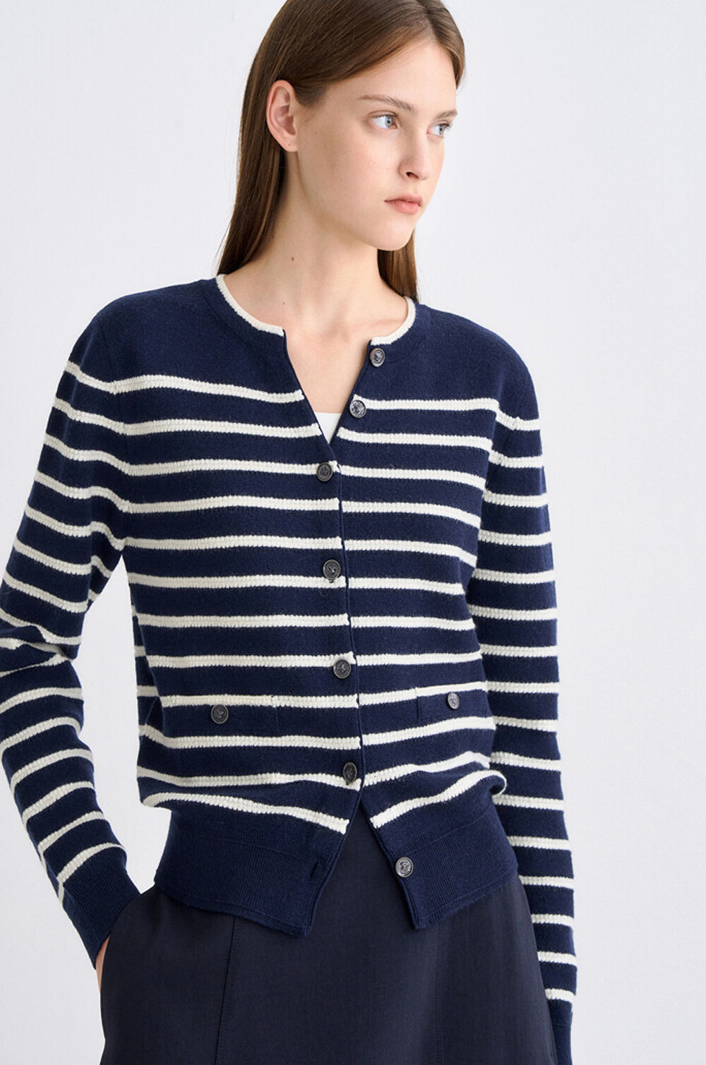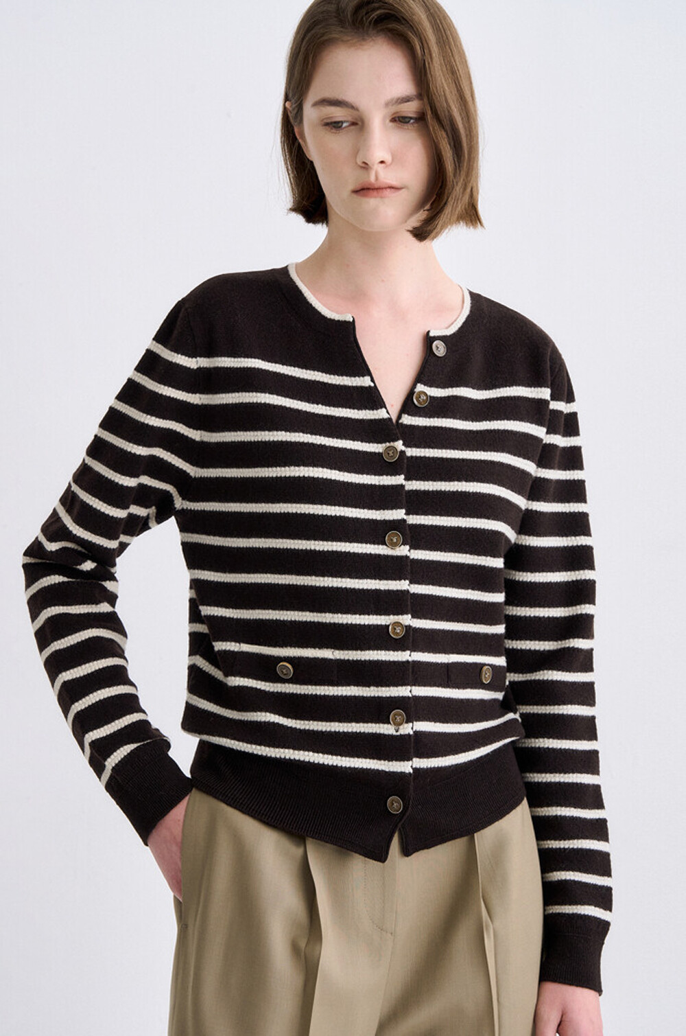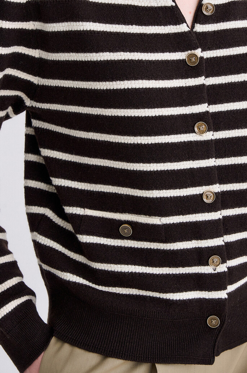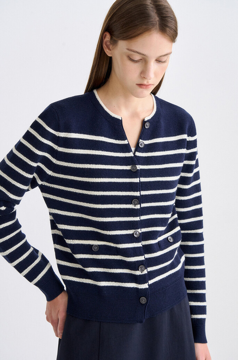 타임 램스 울 블렌드 스트라이프 니트 가디건