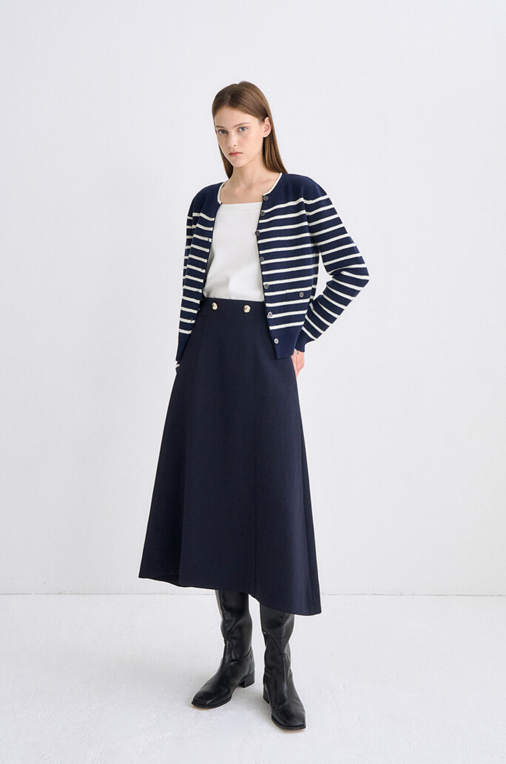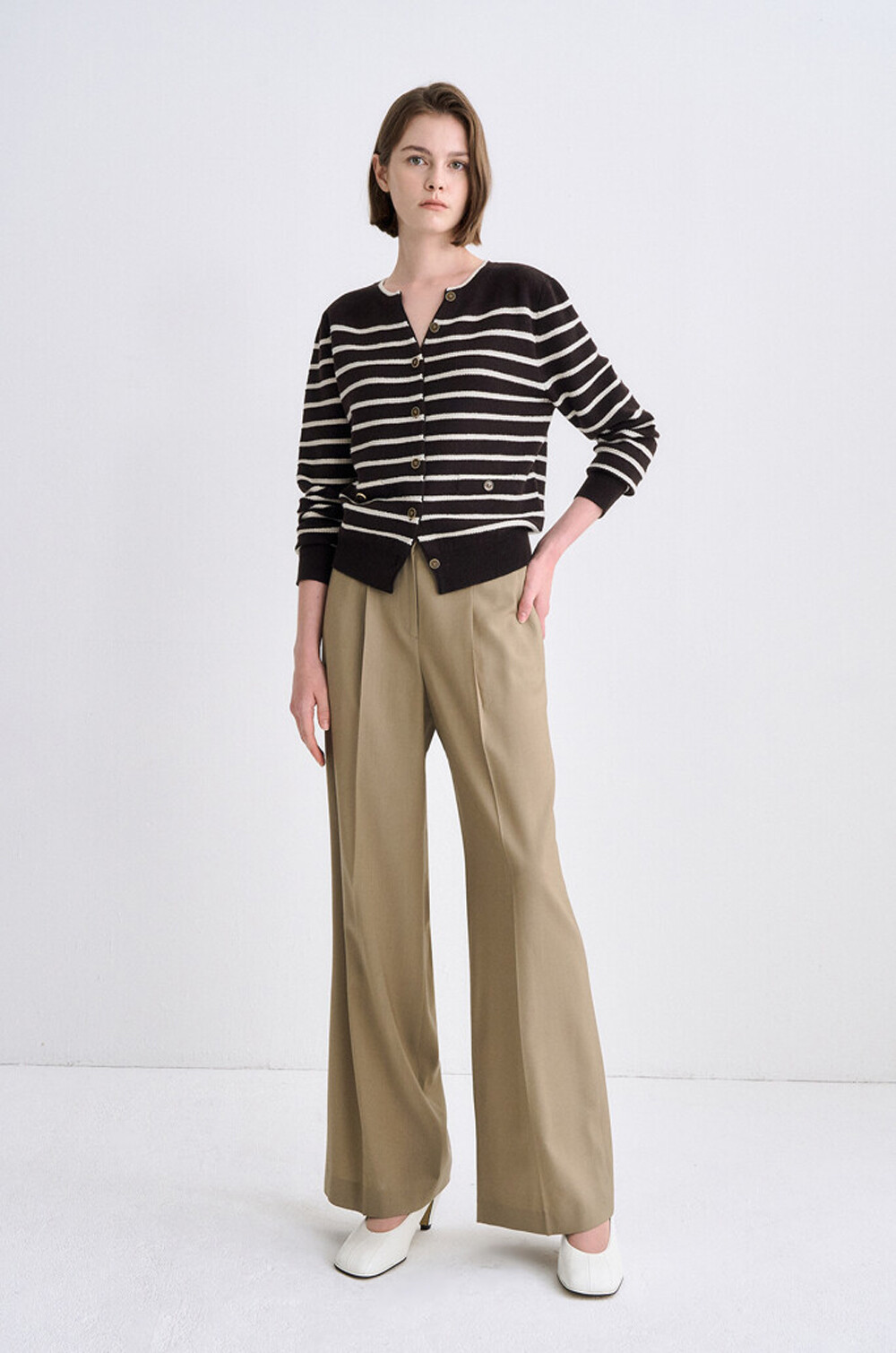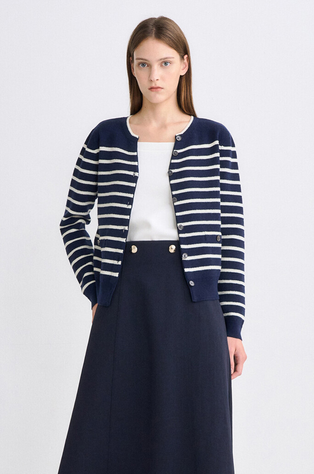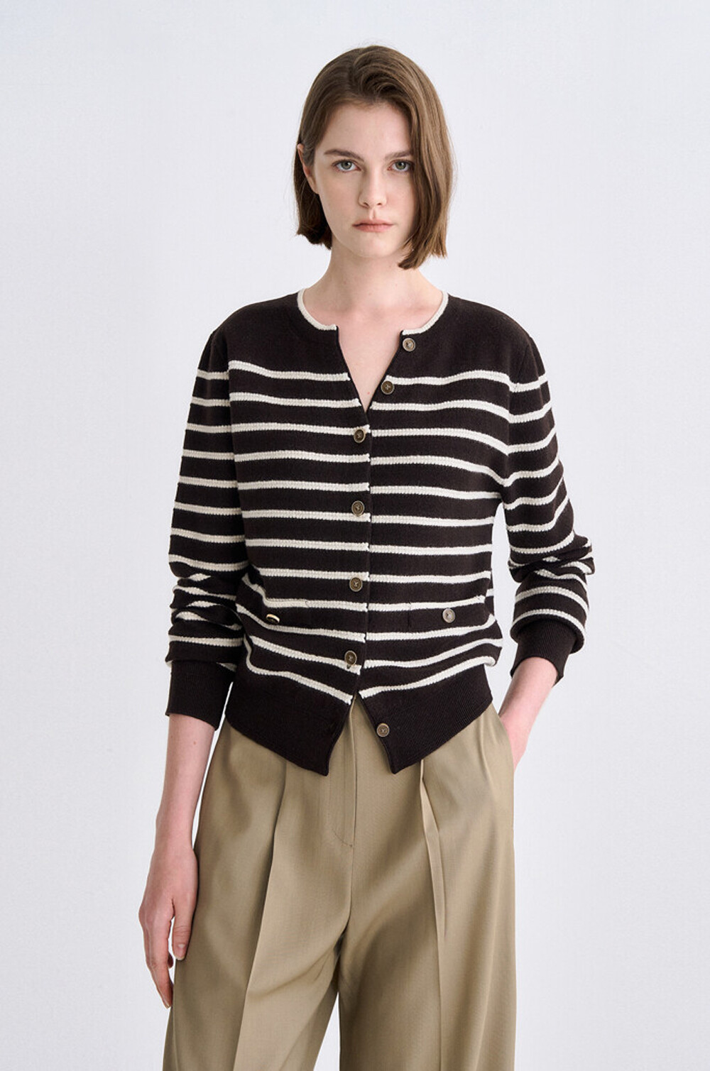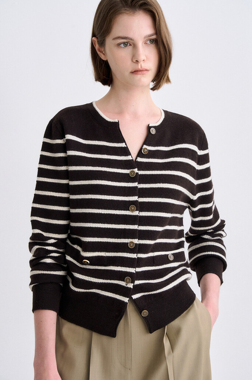 타임 램스 울 블렌드 스트라이프 니트 가디건