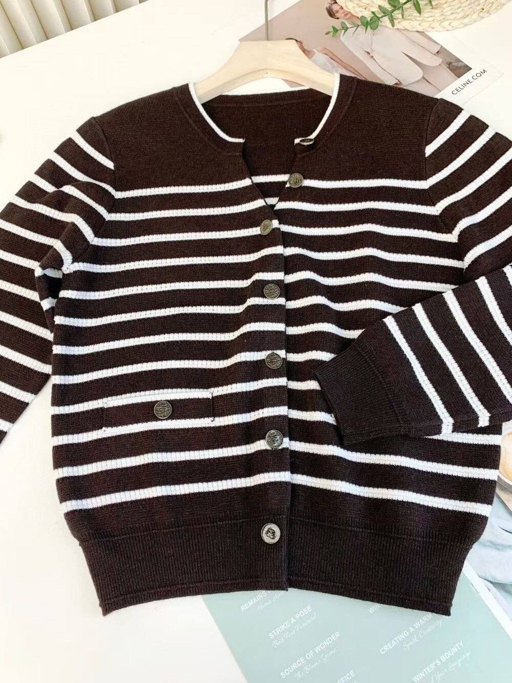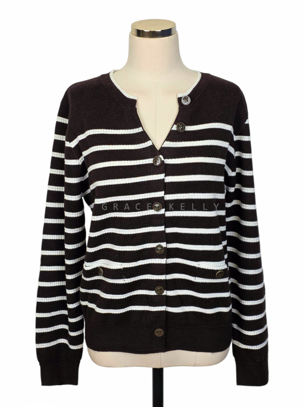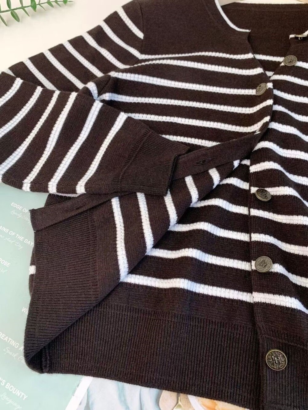 TIME. Wool Blend Stripe Knit Cardigan