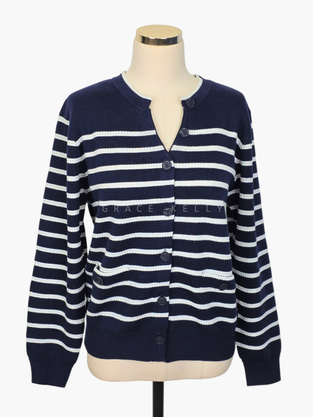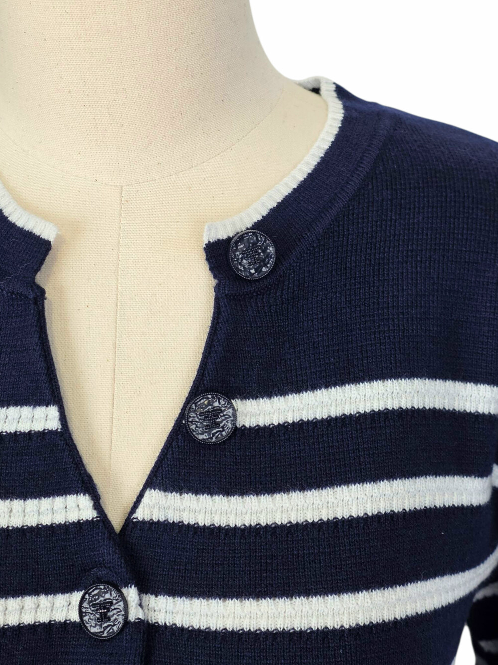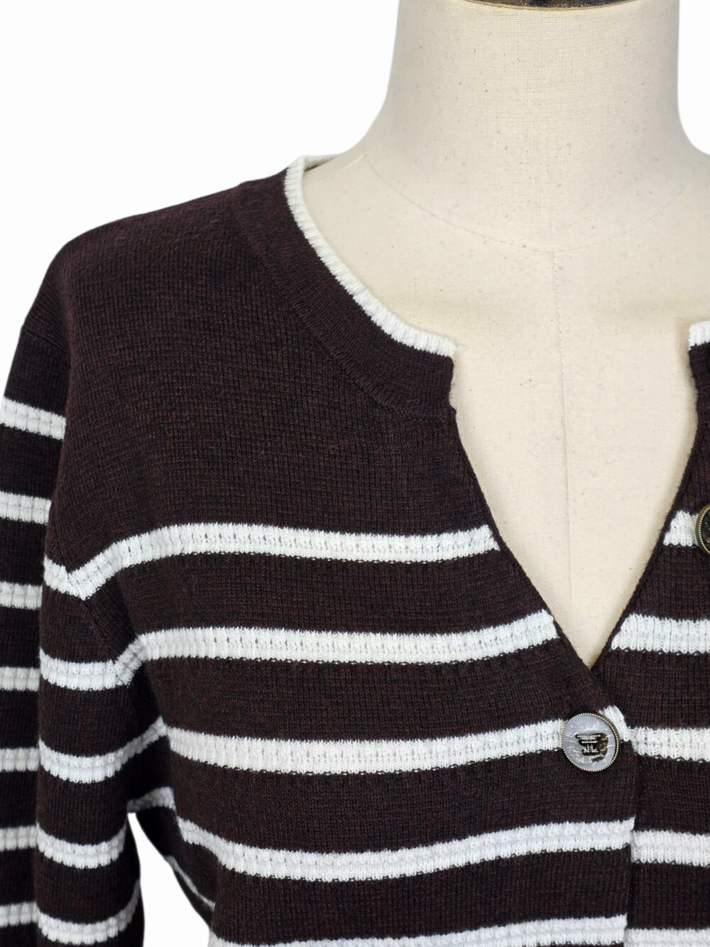 - 넥라인에 2개의 장식 버튼과 하단에 버튼 클로징