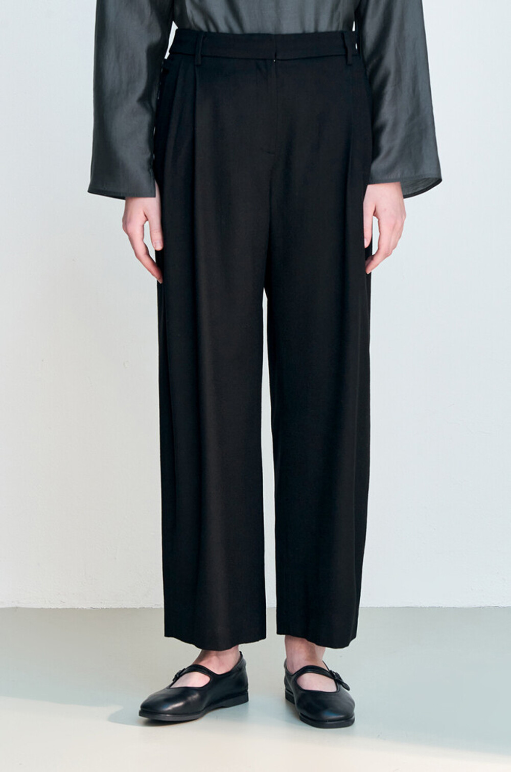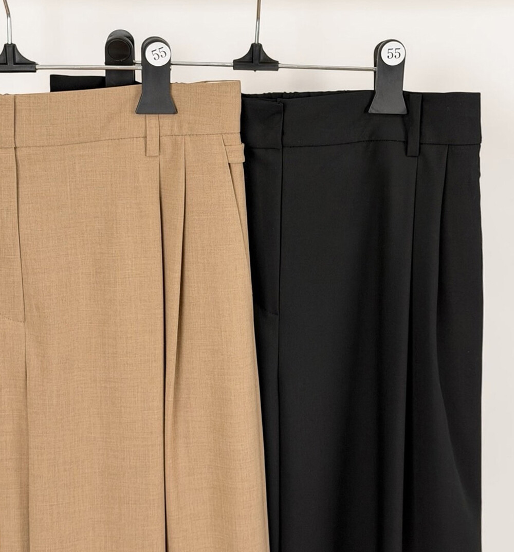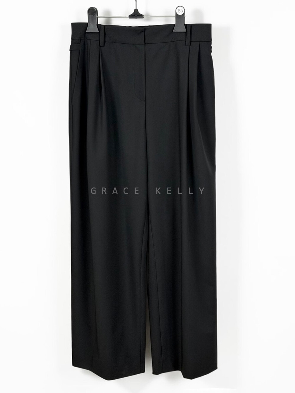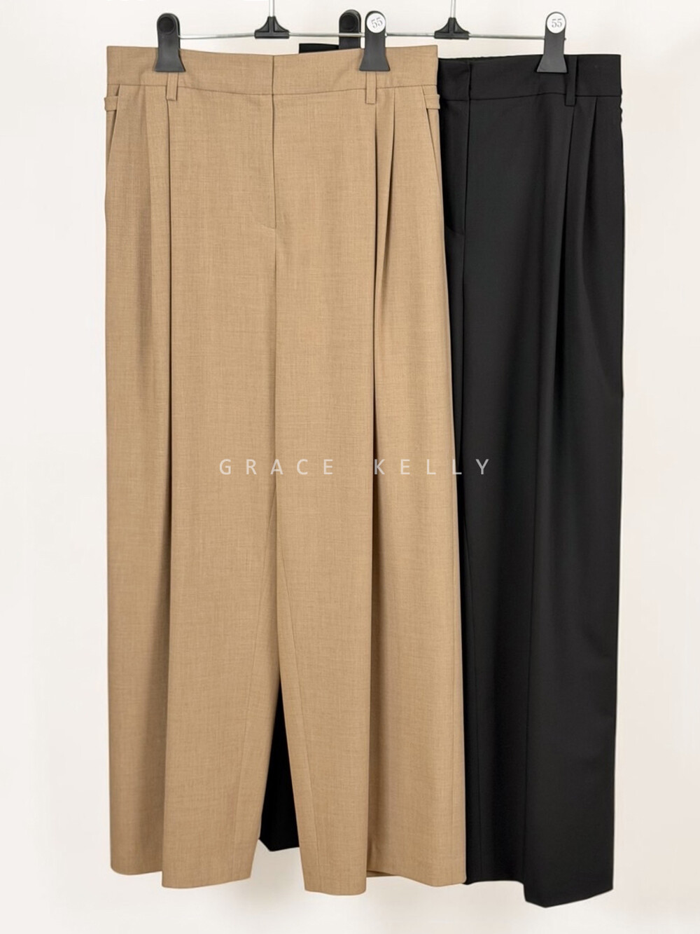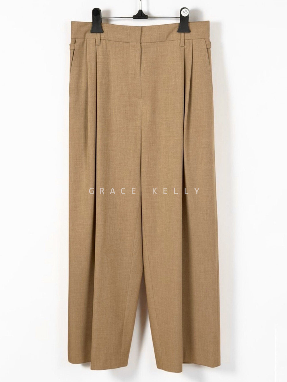 래트 울 블렌드 더블 핀턱 와이드 팬츠