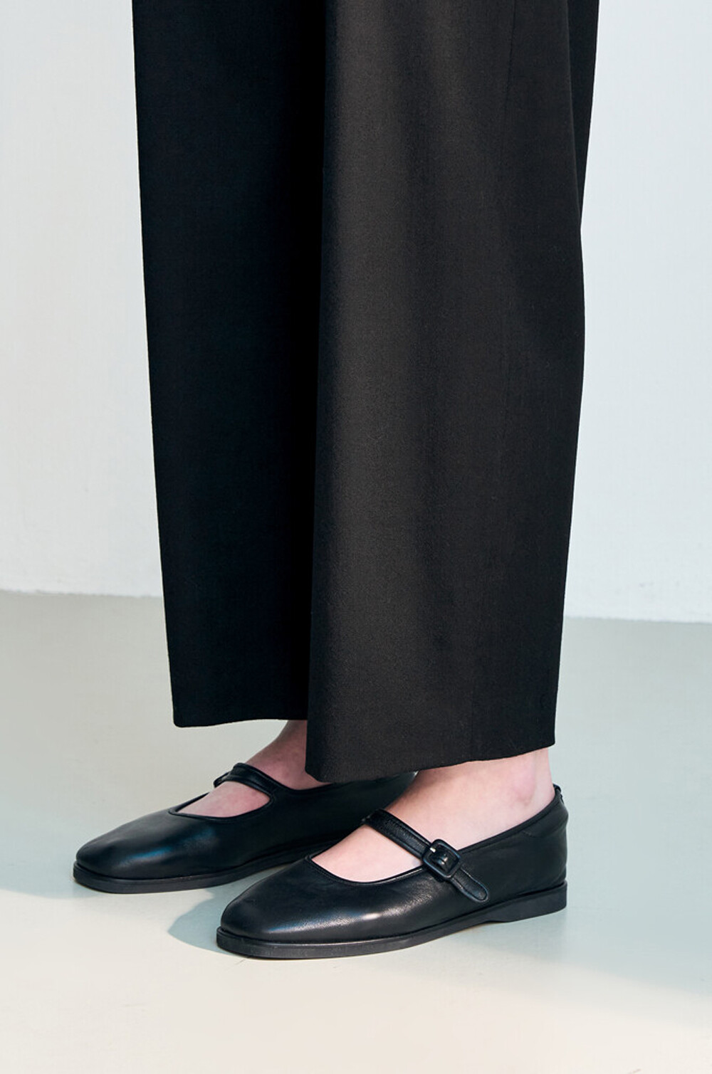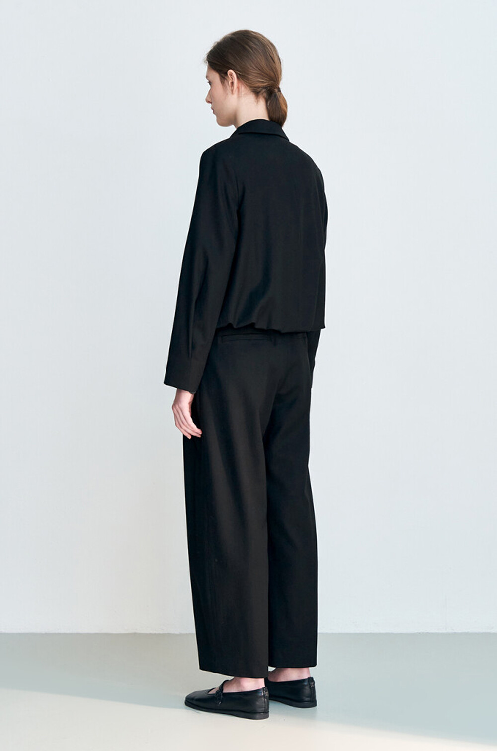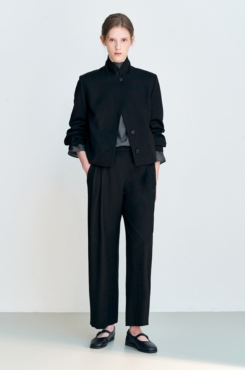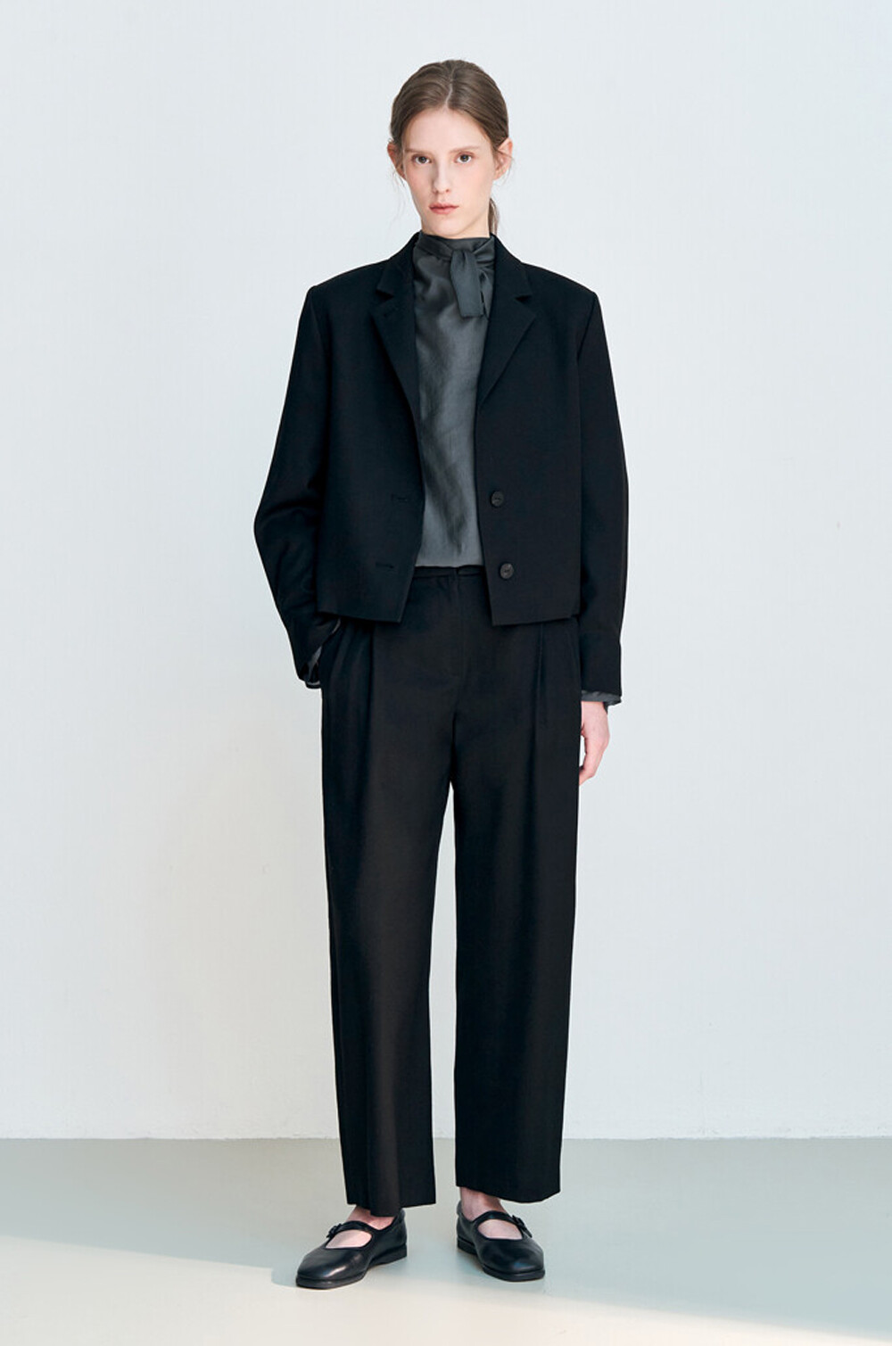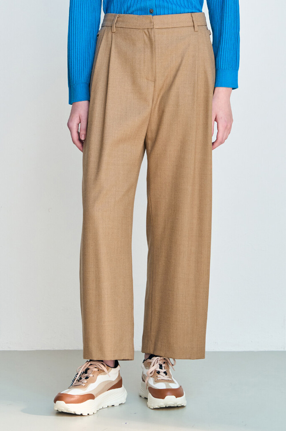 래트 울 블렌드 더블 핀턱 와이드 팬츠