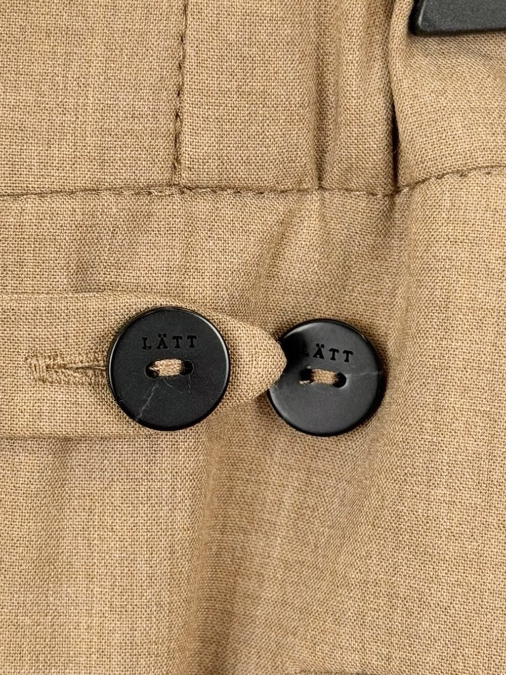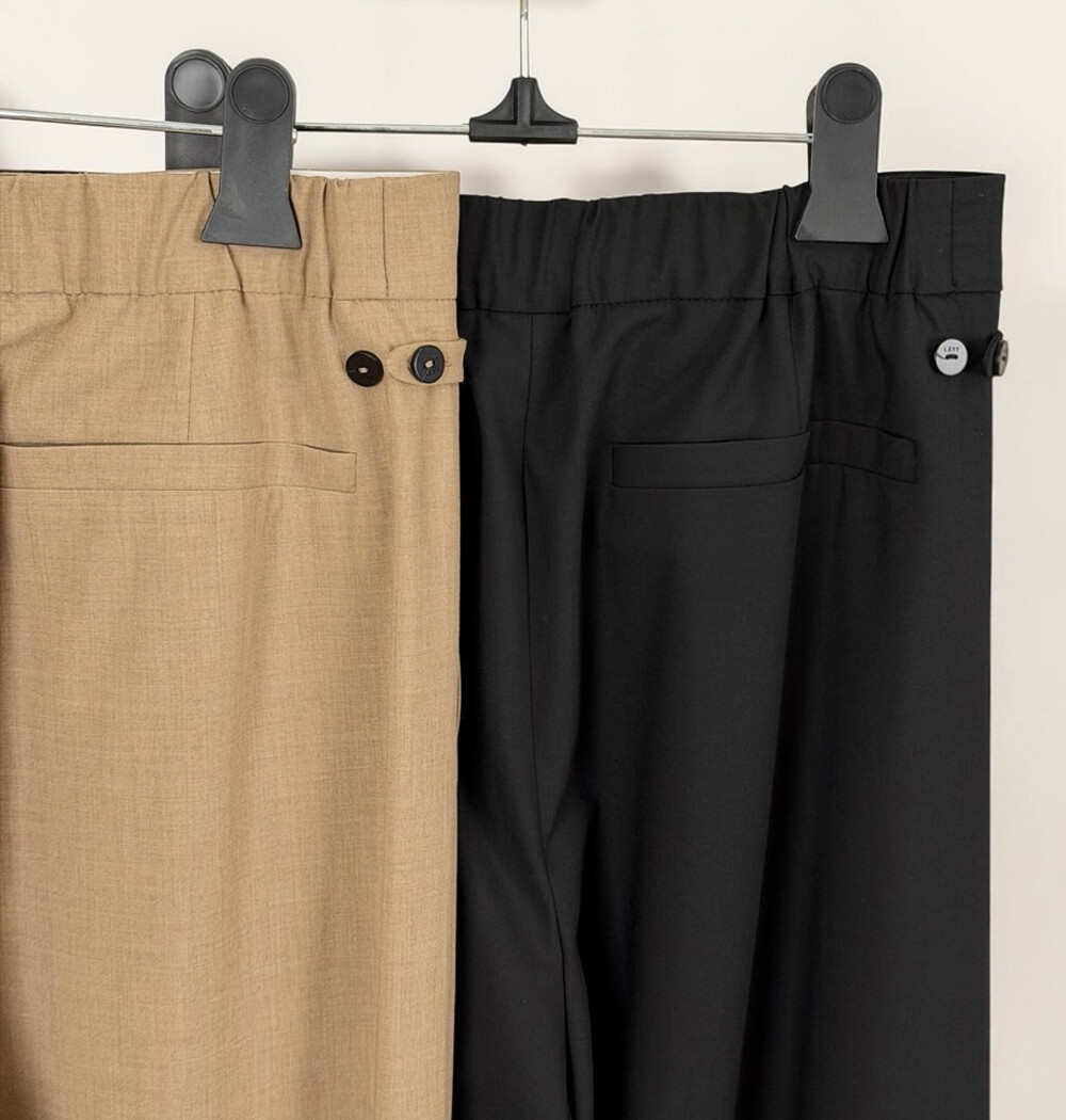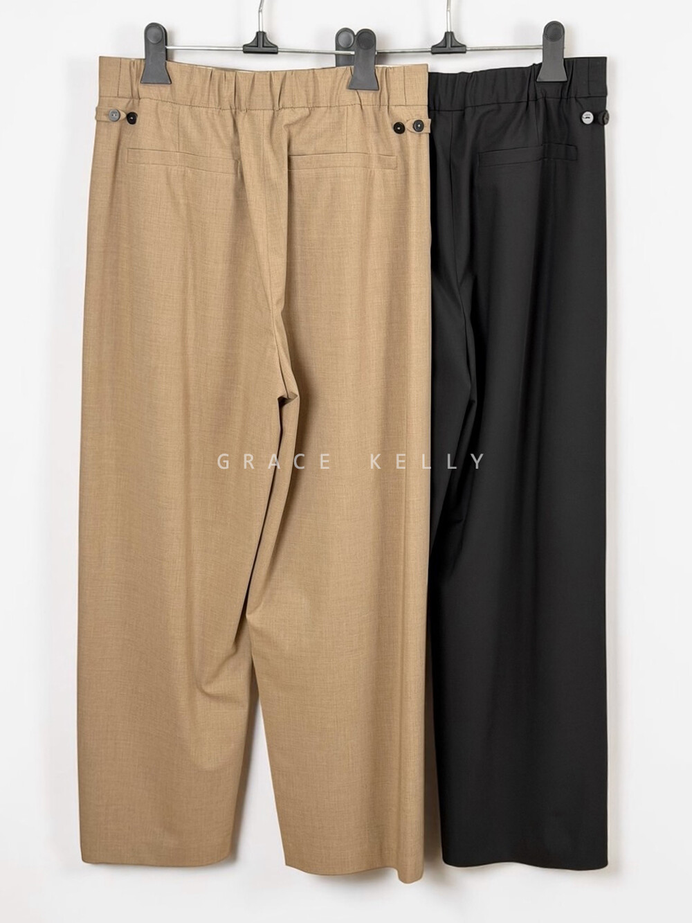 - 허리 라인 양옆에 더블 핀턱과 조절 가능한 버튼 탭