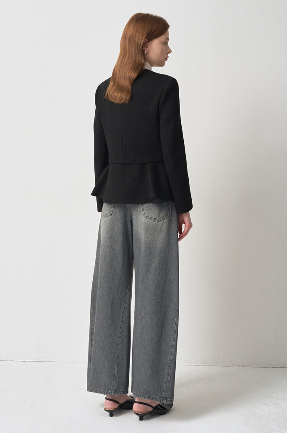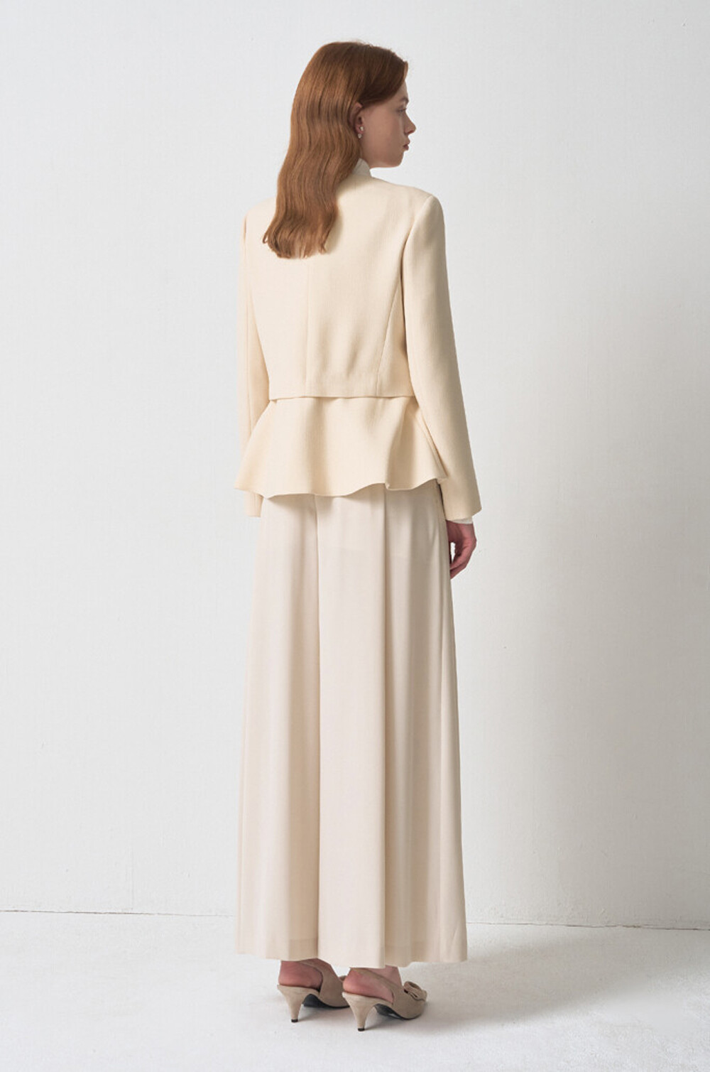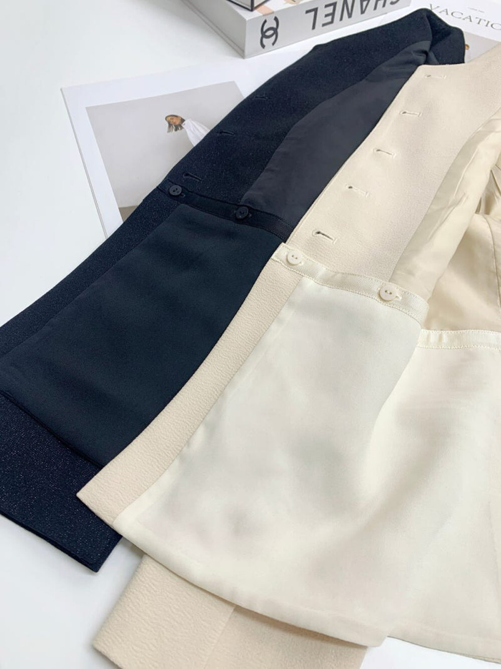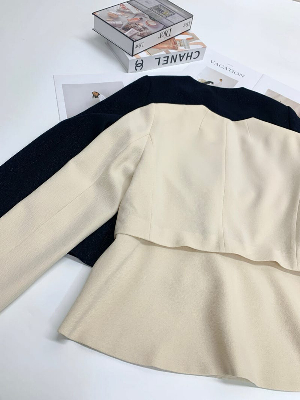 - 밑단 내부에 버튼으로 탈부착 가능한 페플럼 헴 디자인
