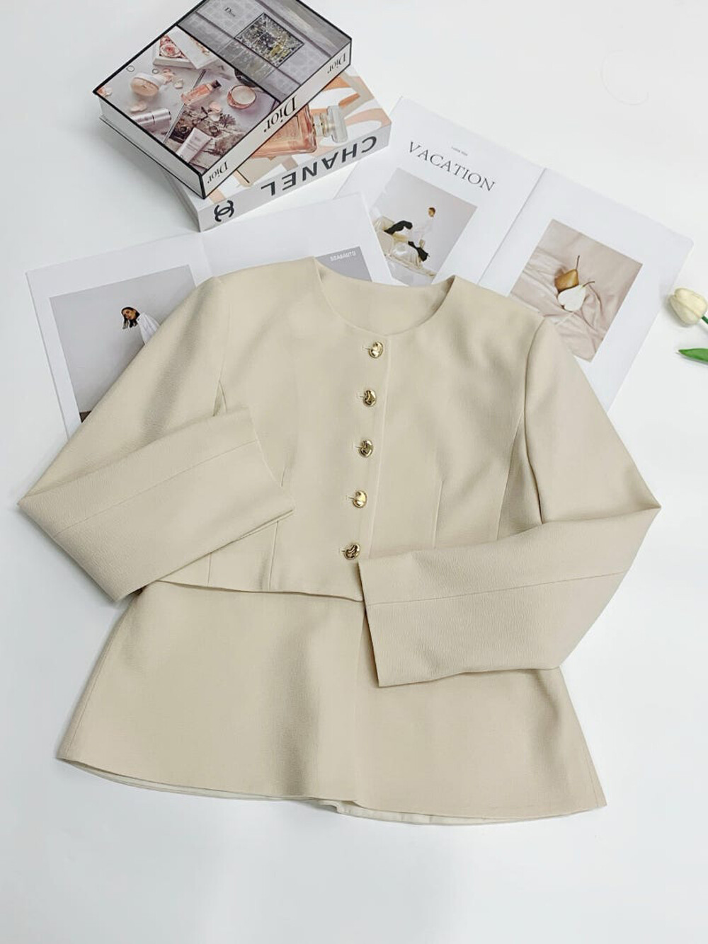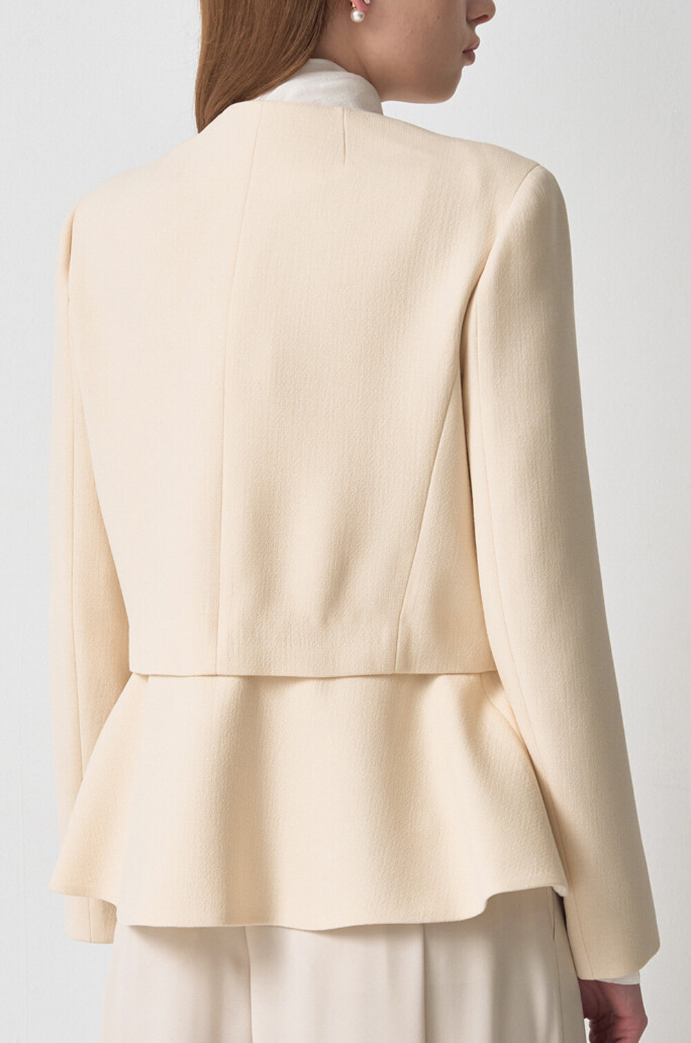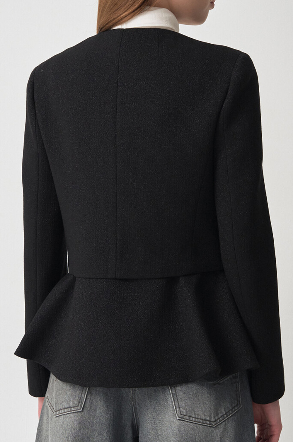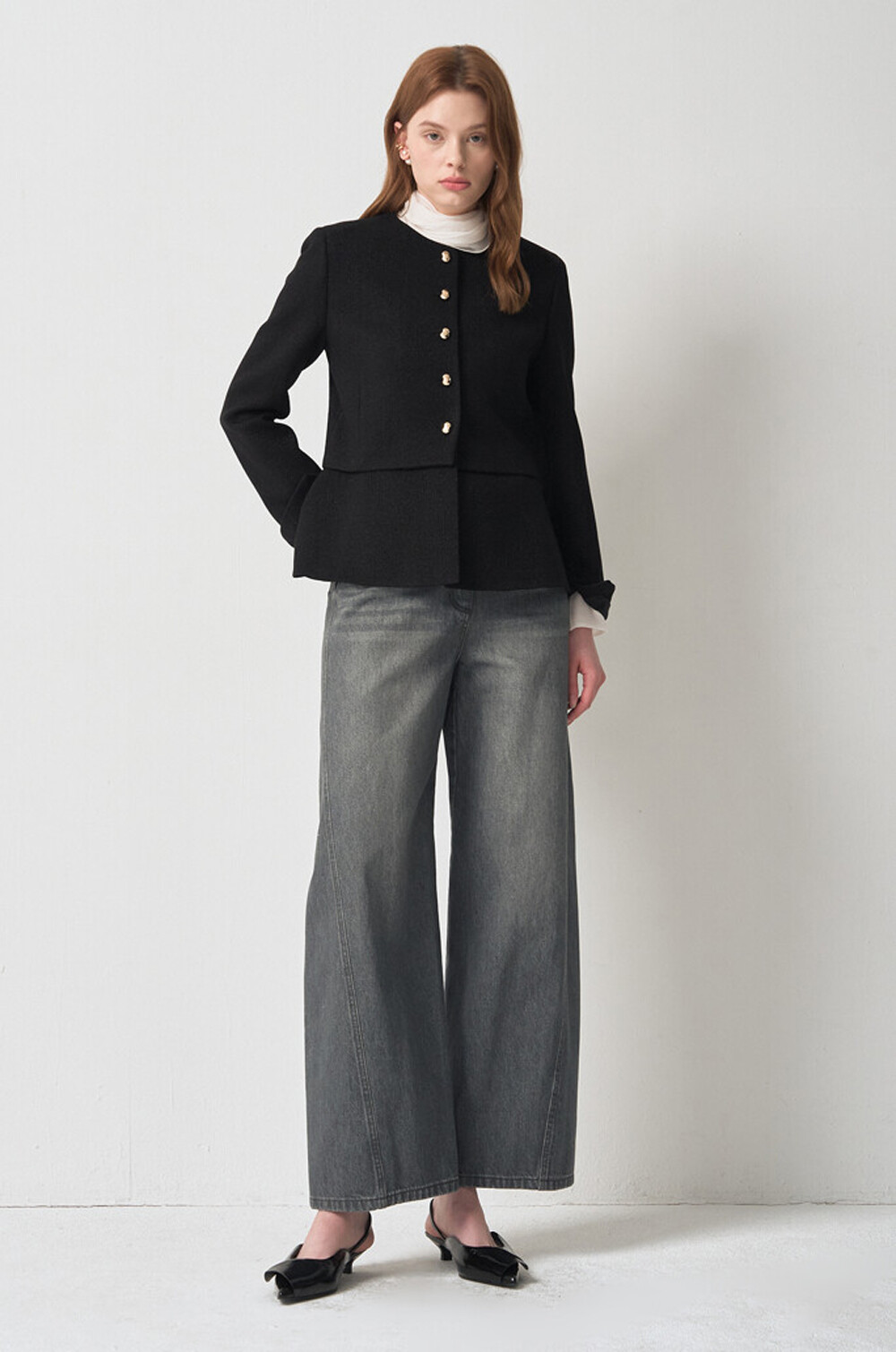 - 밑단 내부에 버튼으로 탈부착 가능한 페플럼 헴 디자인