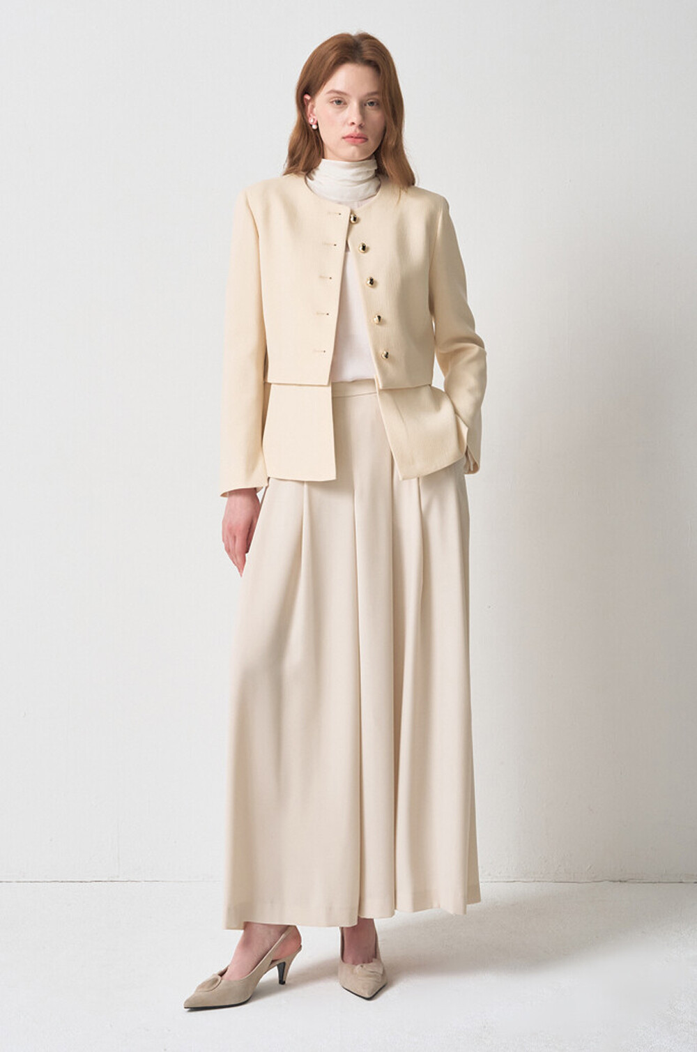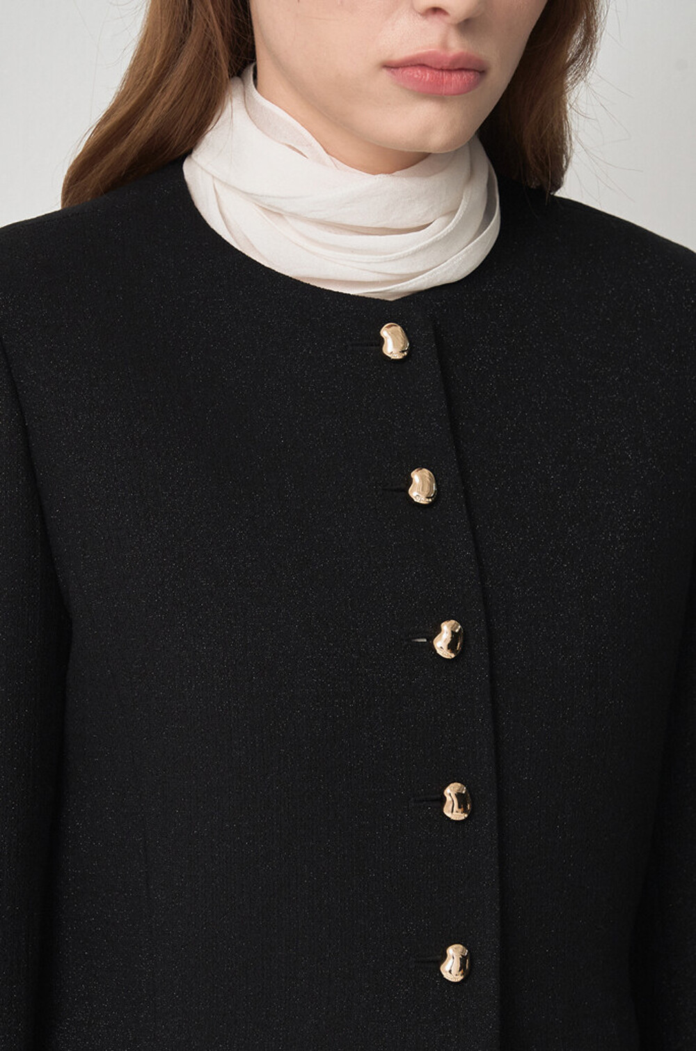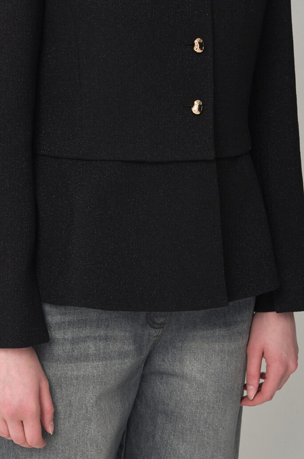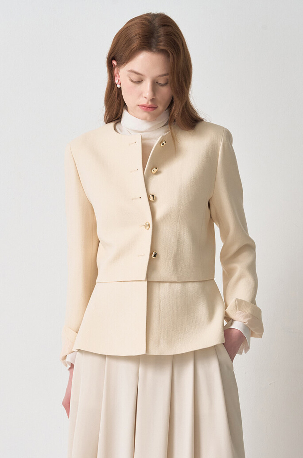- 밑단 내부에 버튼으로 탈부착 가능한 페플럼 헴 디자인