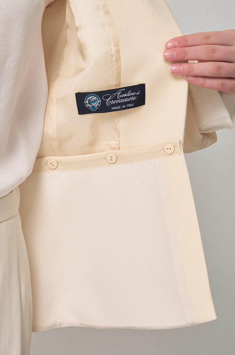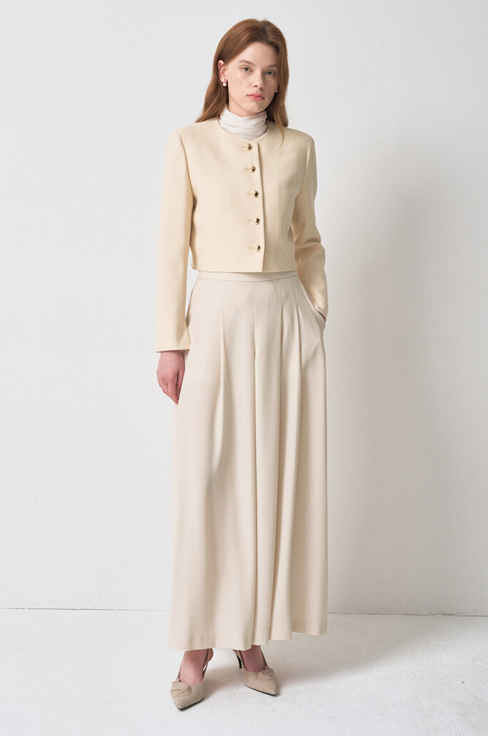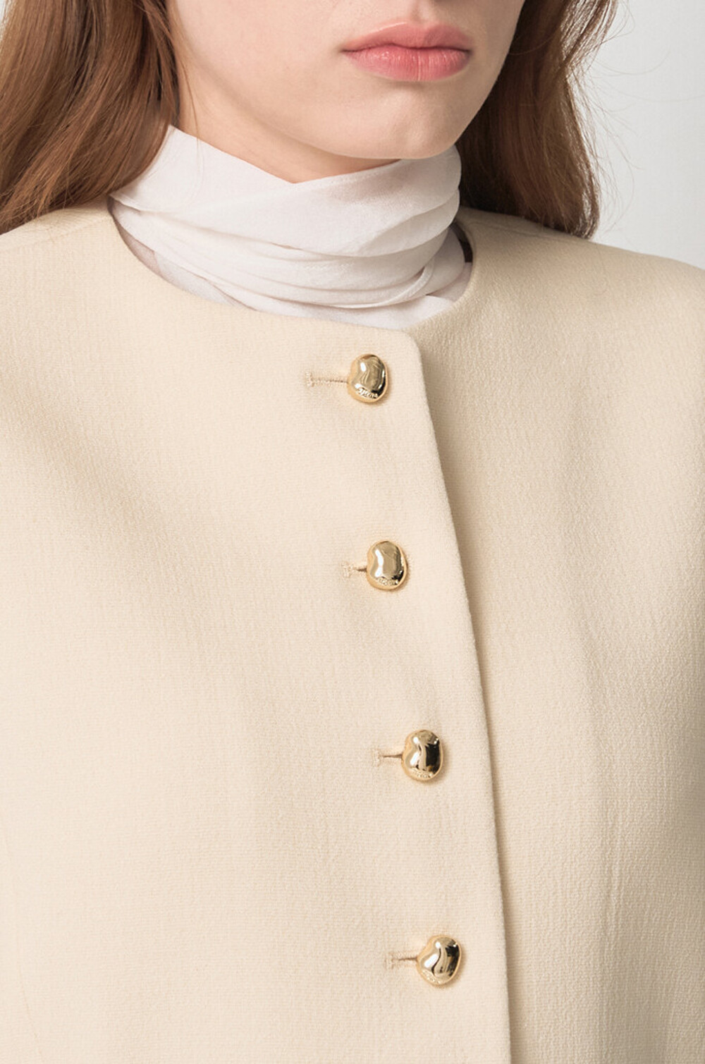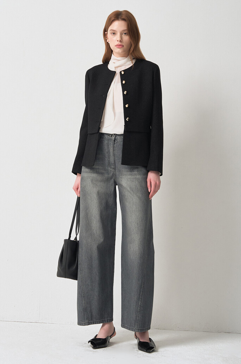- 밑단 내부에 버튼으로 탈부착 가능한 페플럼 헴 디자인