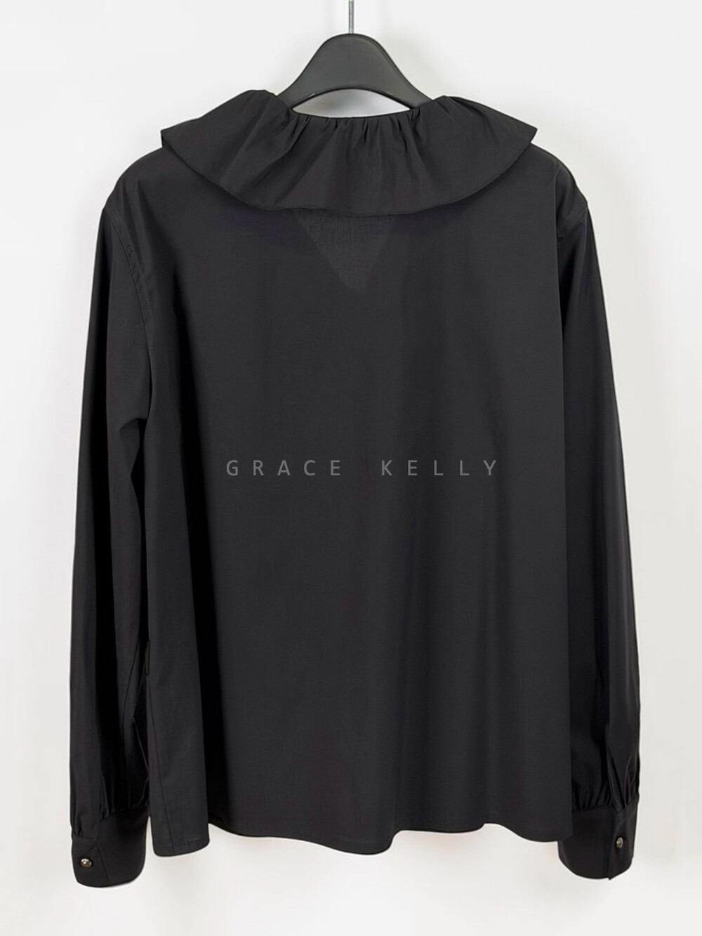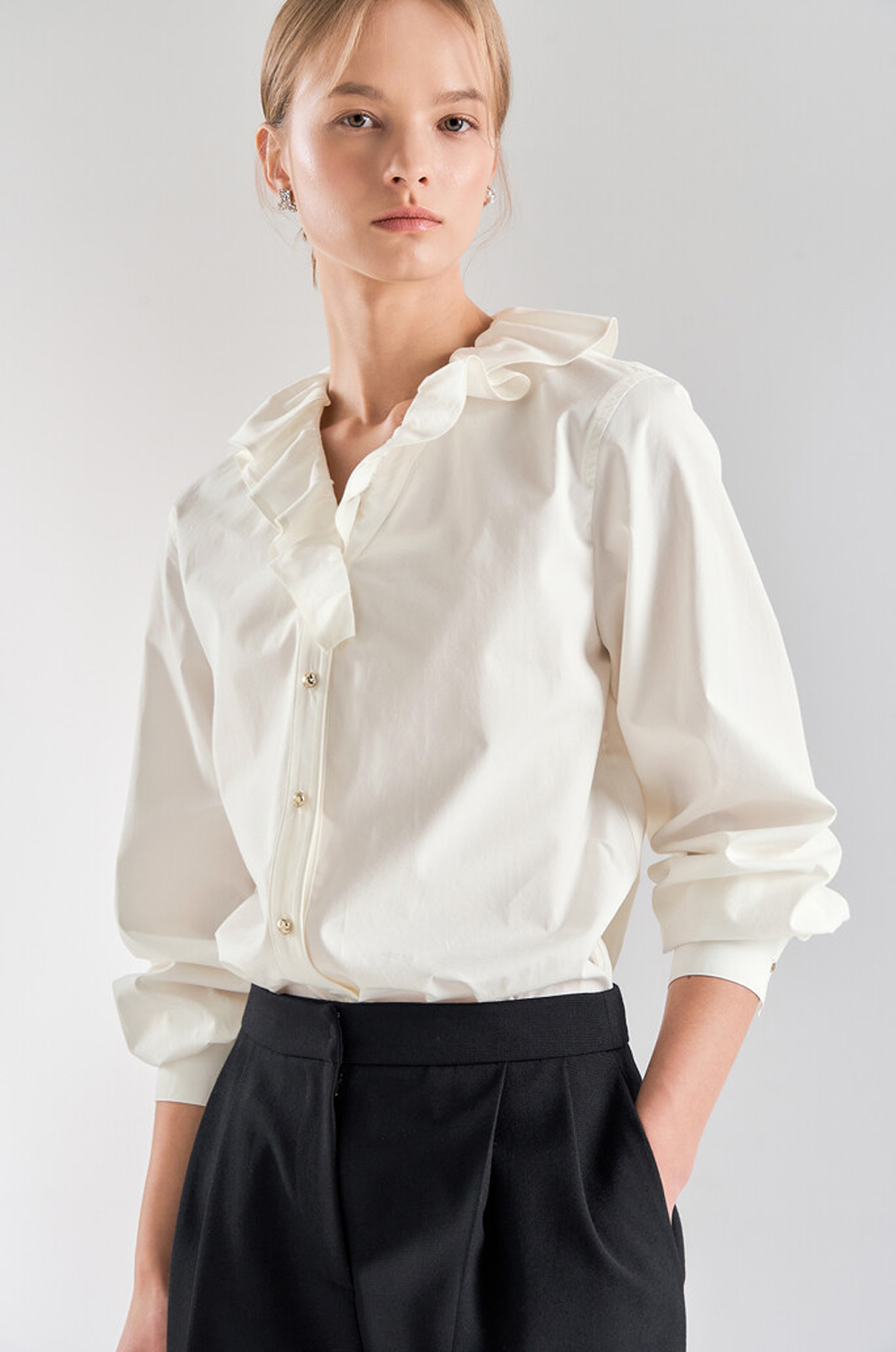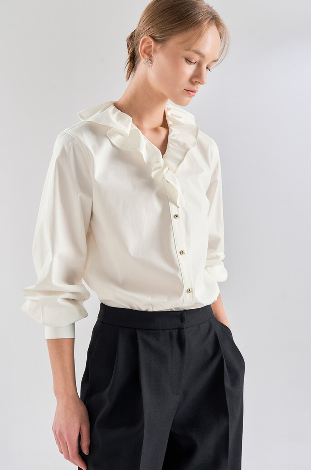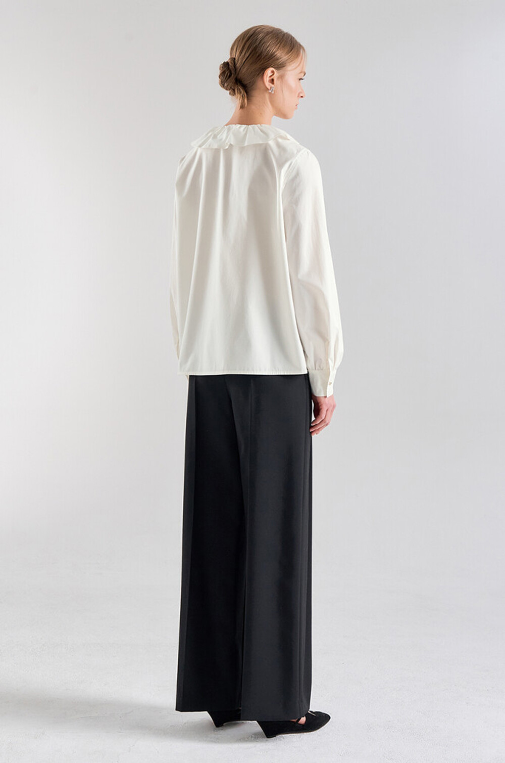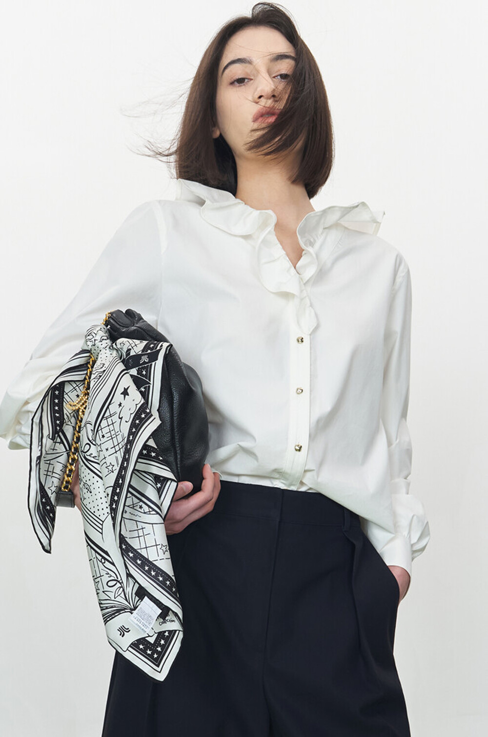 랑방컬렉션 실크 블렌드 러플 패널 셔츠