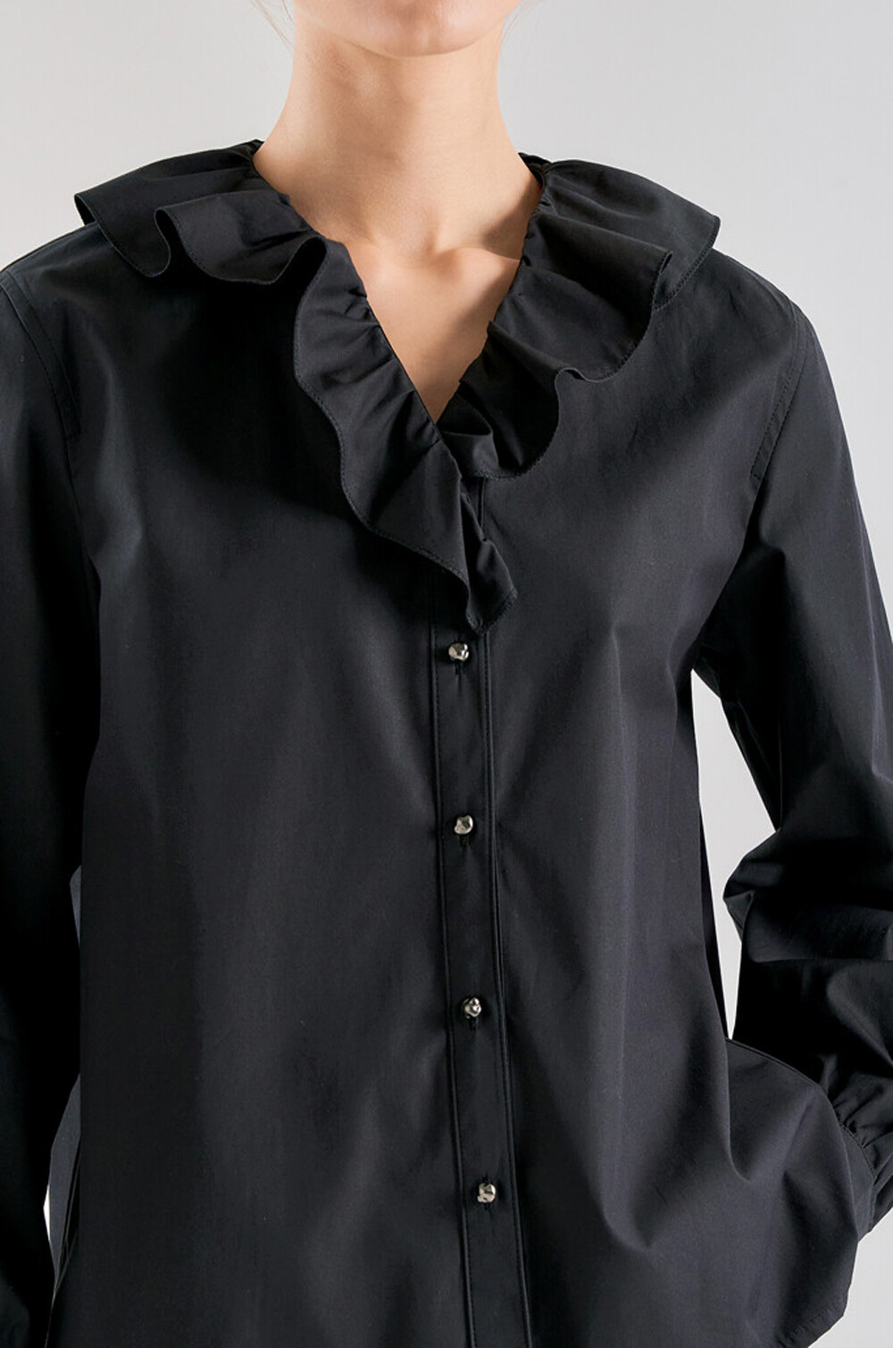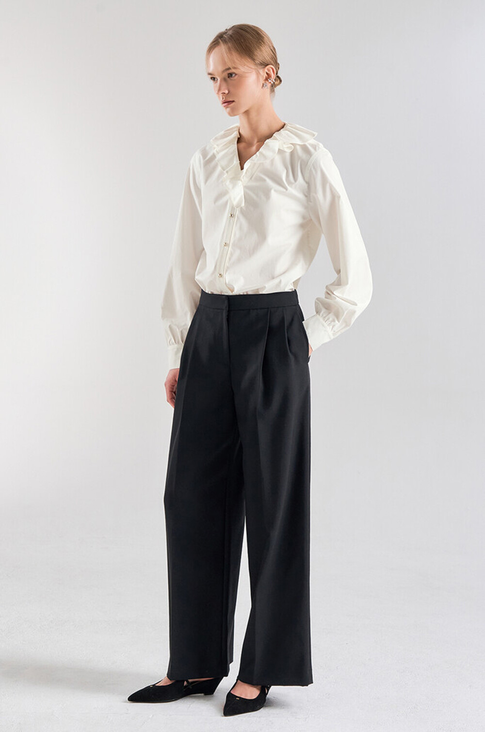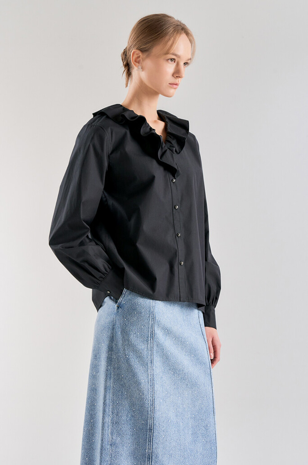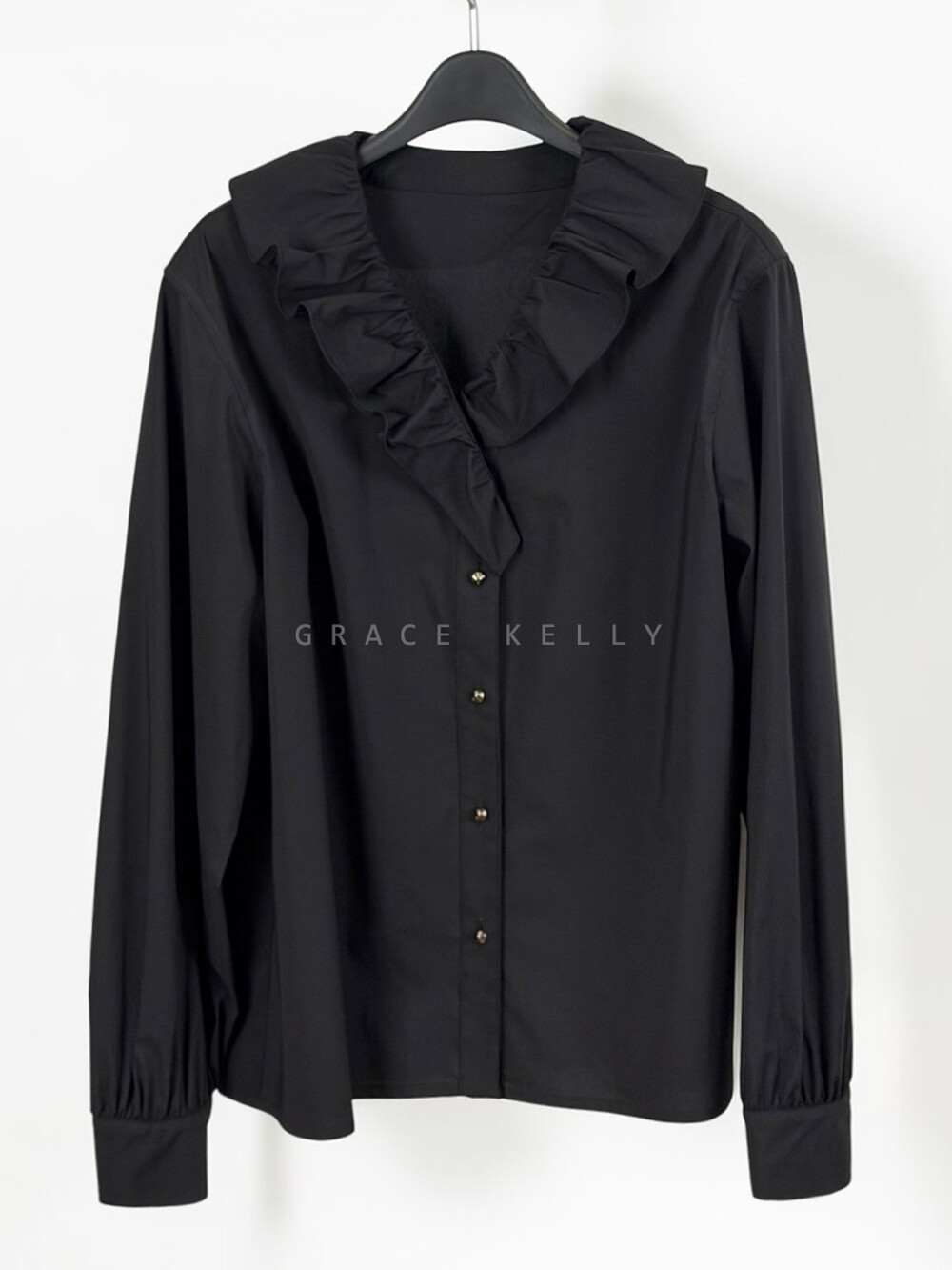 랑방컬렉션 실크 블렌드 러플 패널 셔츠