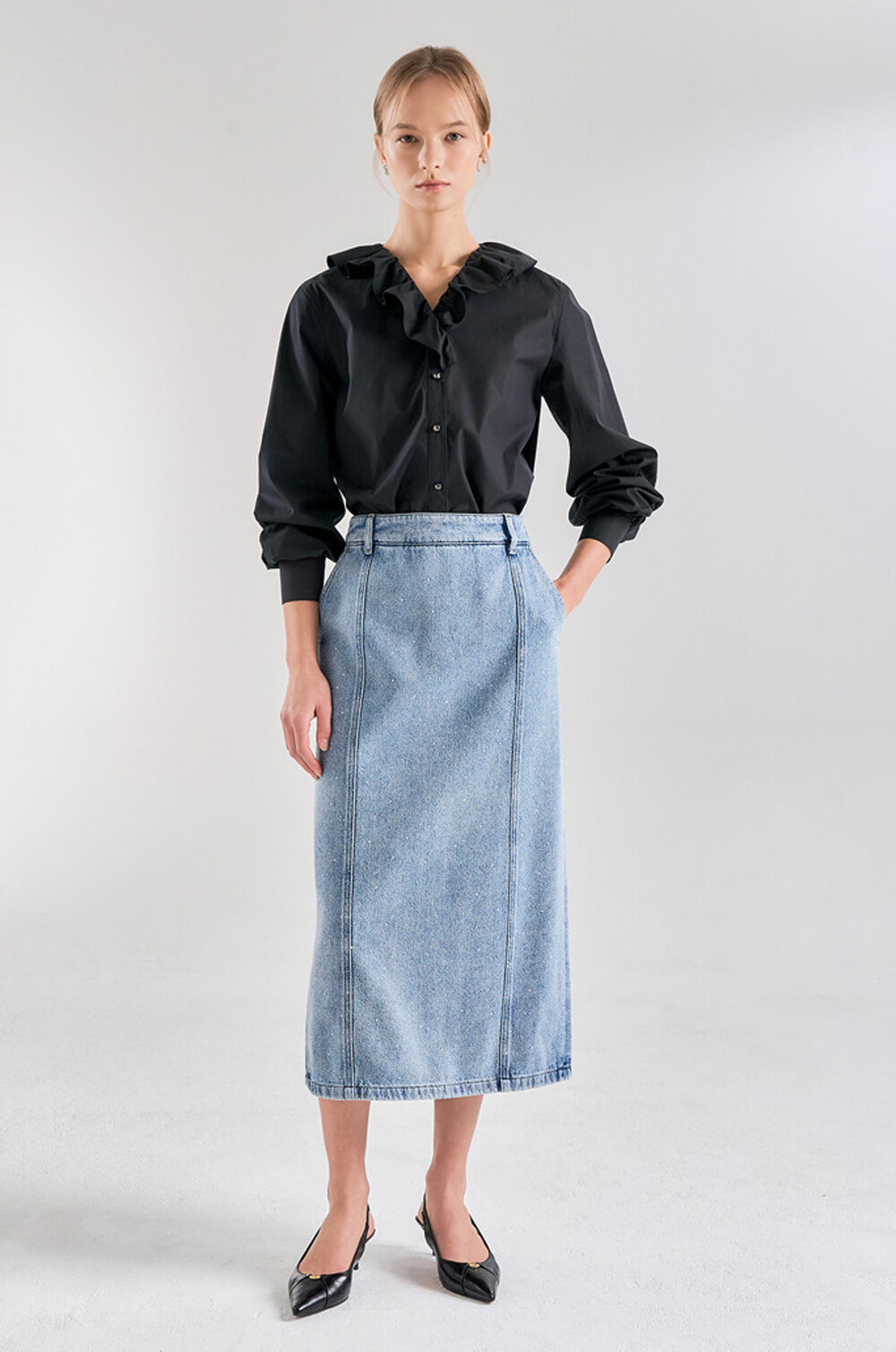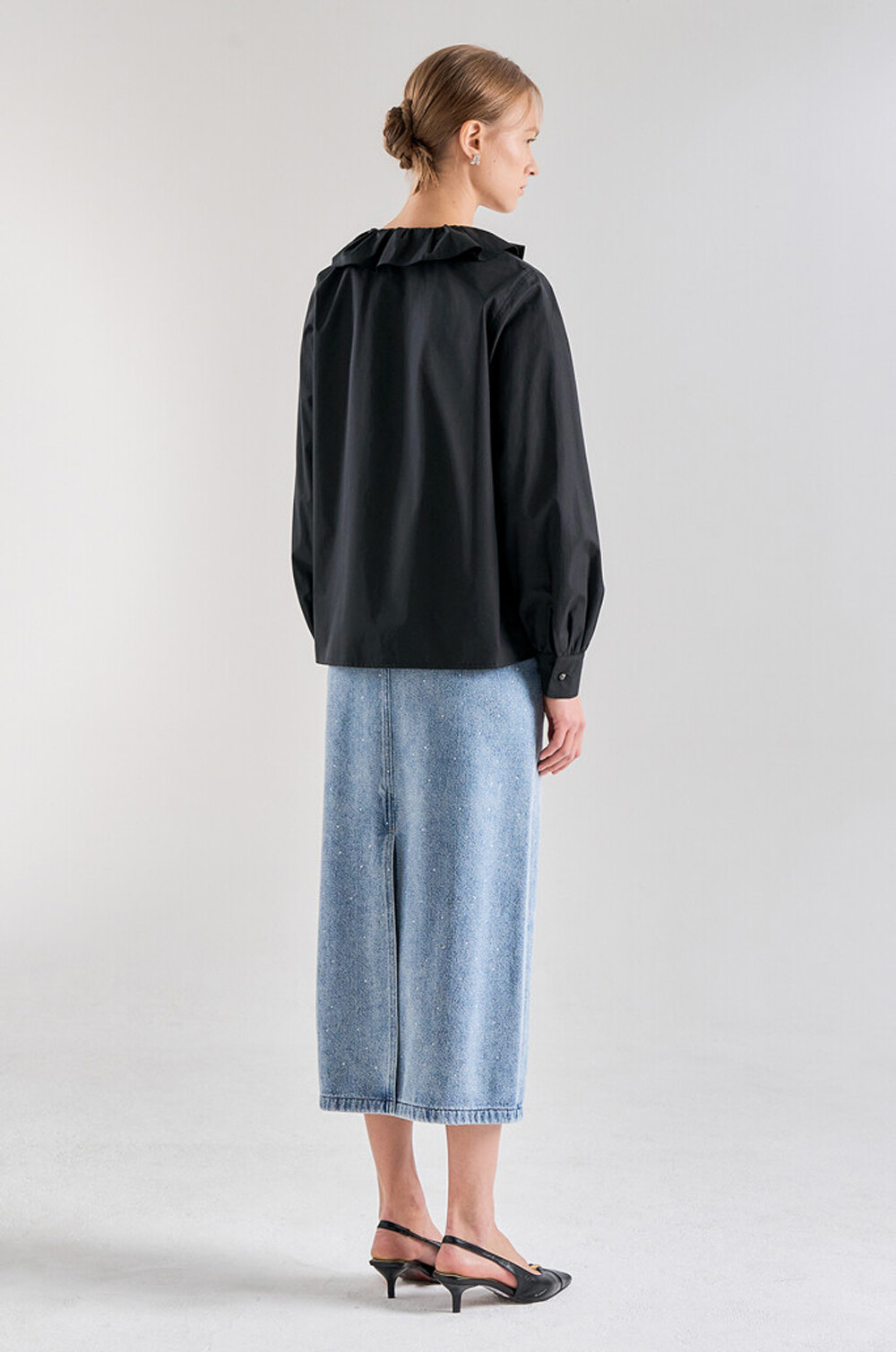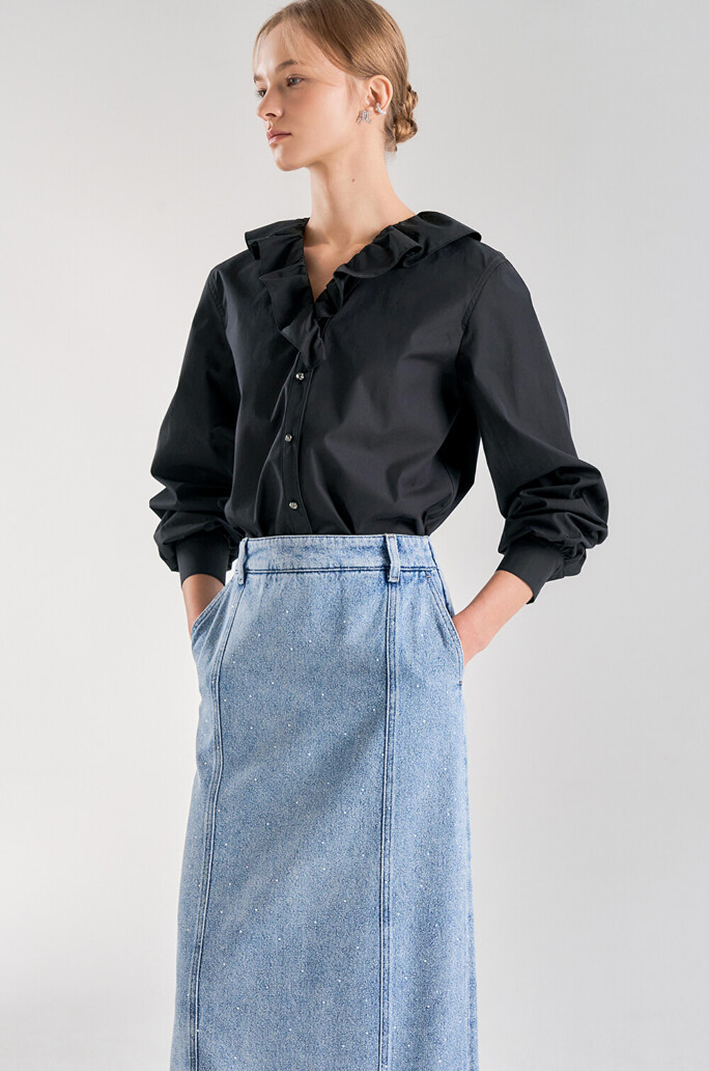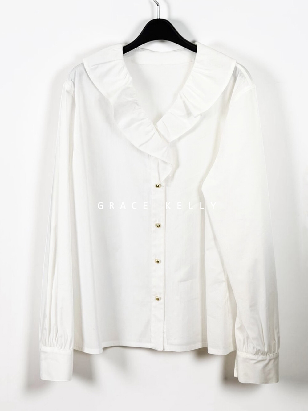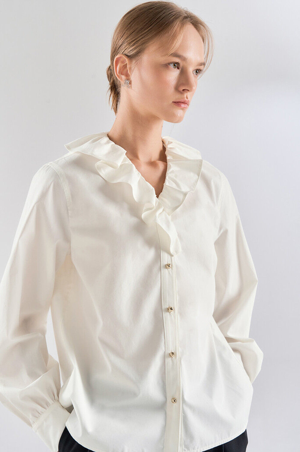 랑방컬렉션 실크 블렌드 러플 패널 셔츠
