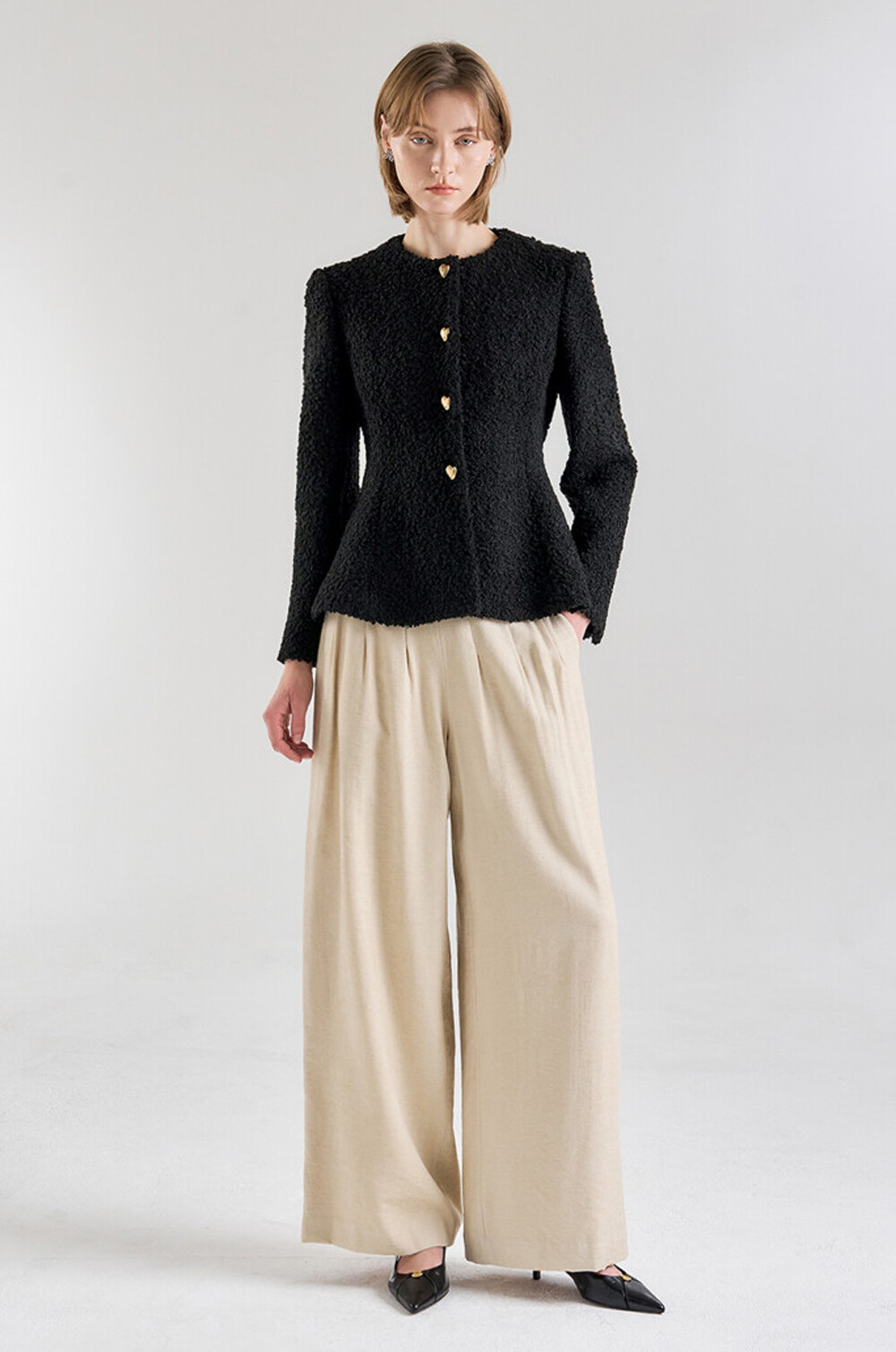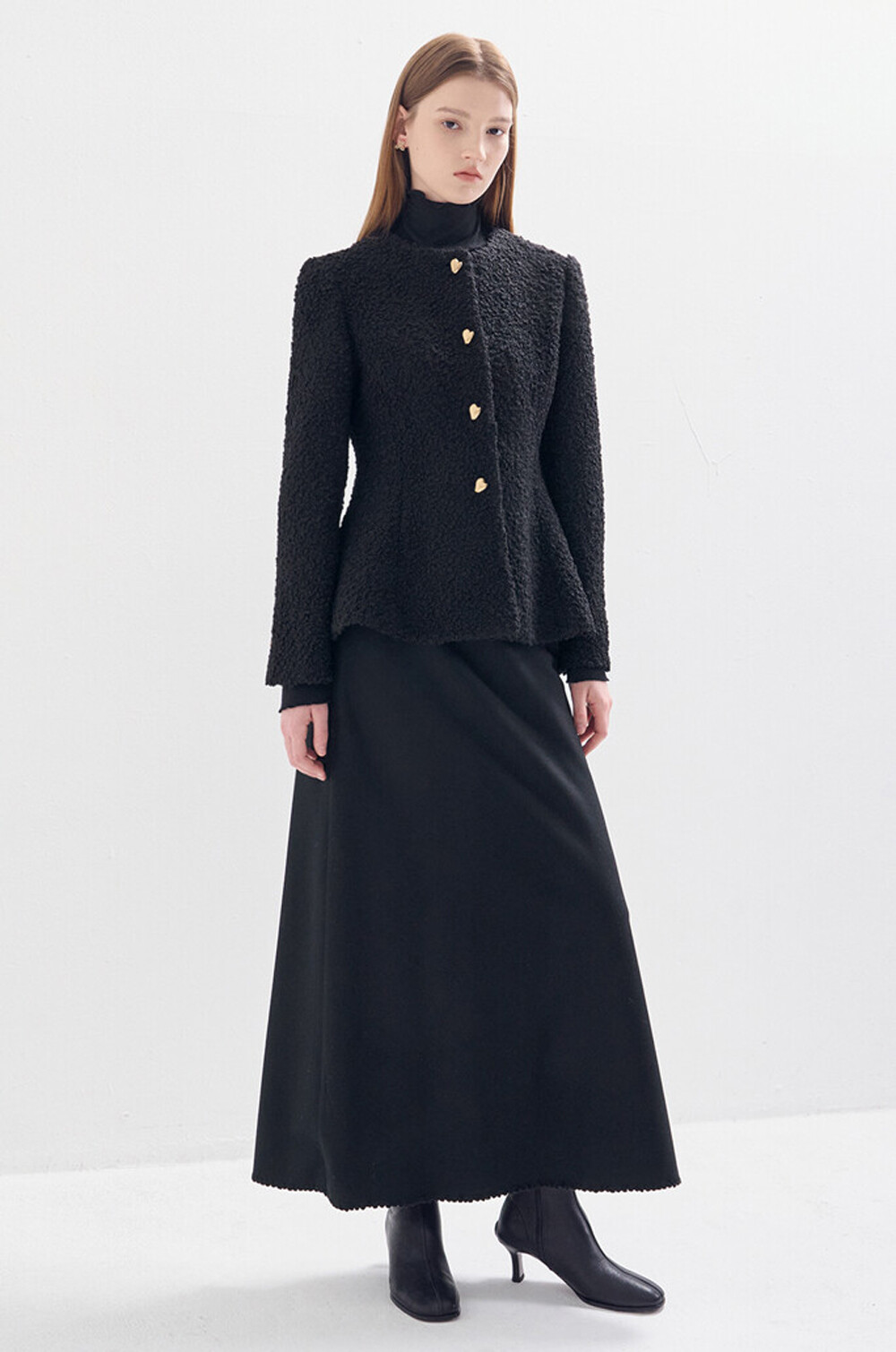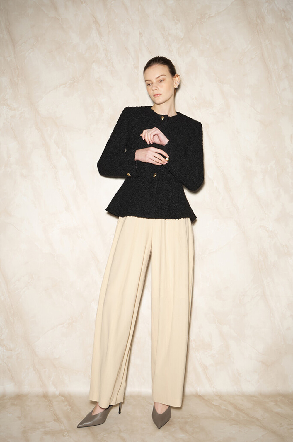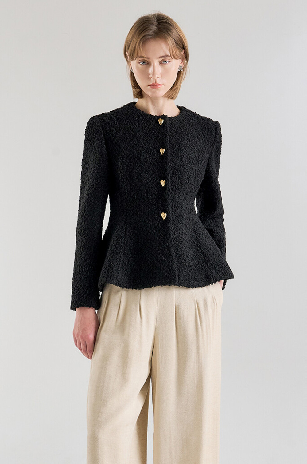 랑방컬렉션 울 블렌드 부클 칼라리스 페플럼 자켓
