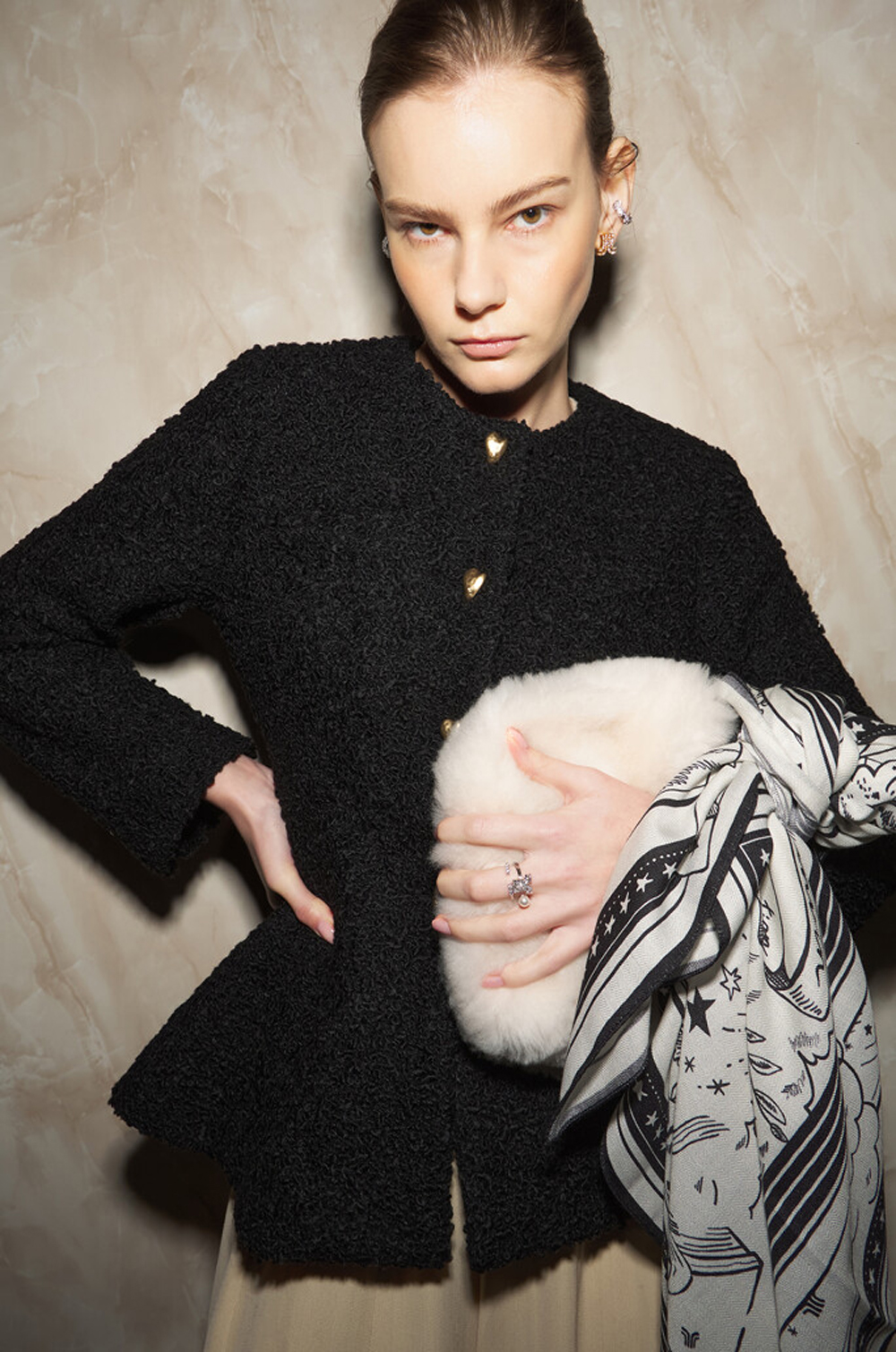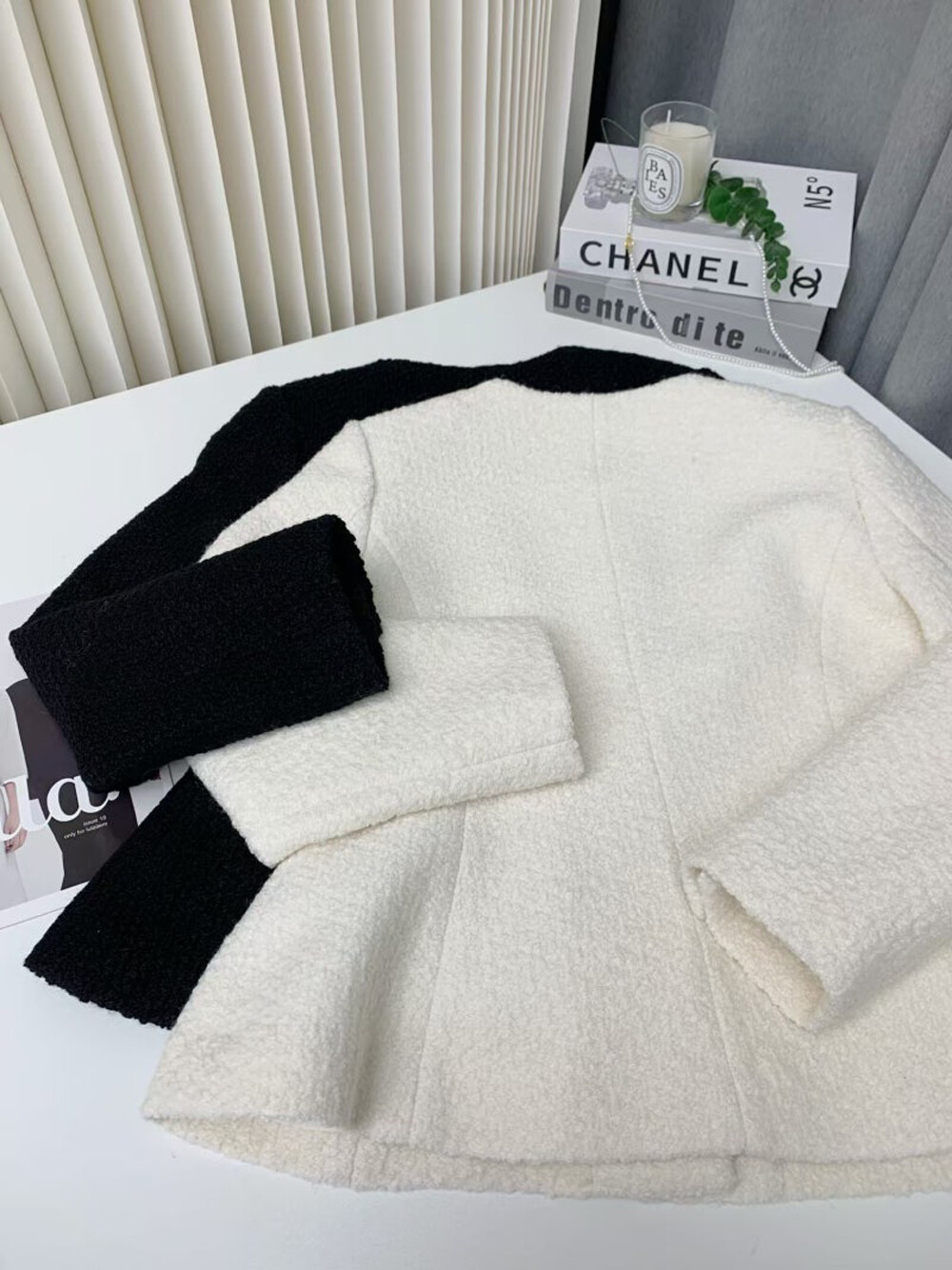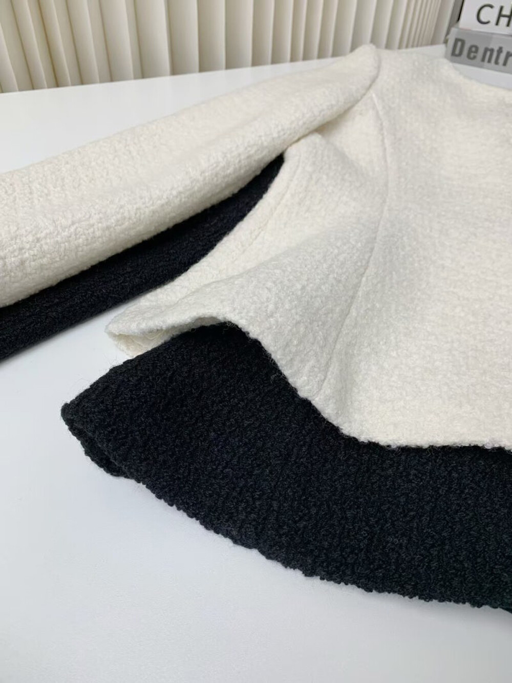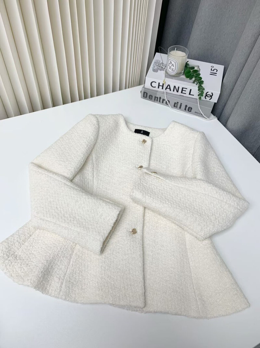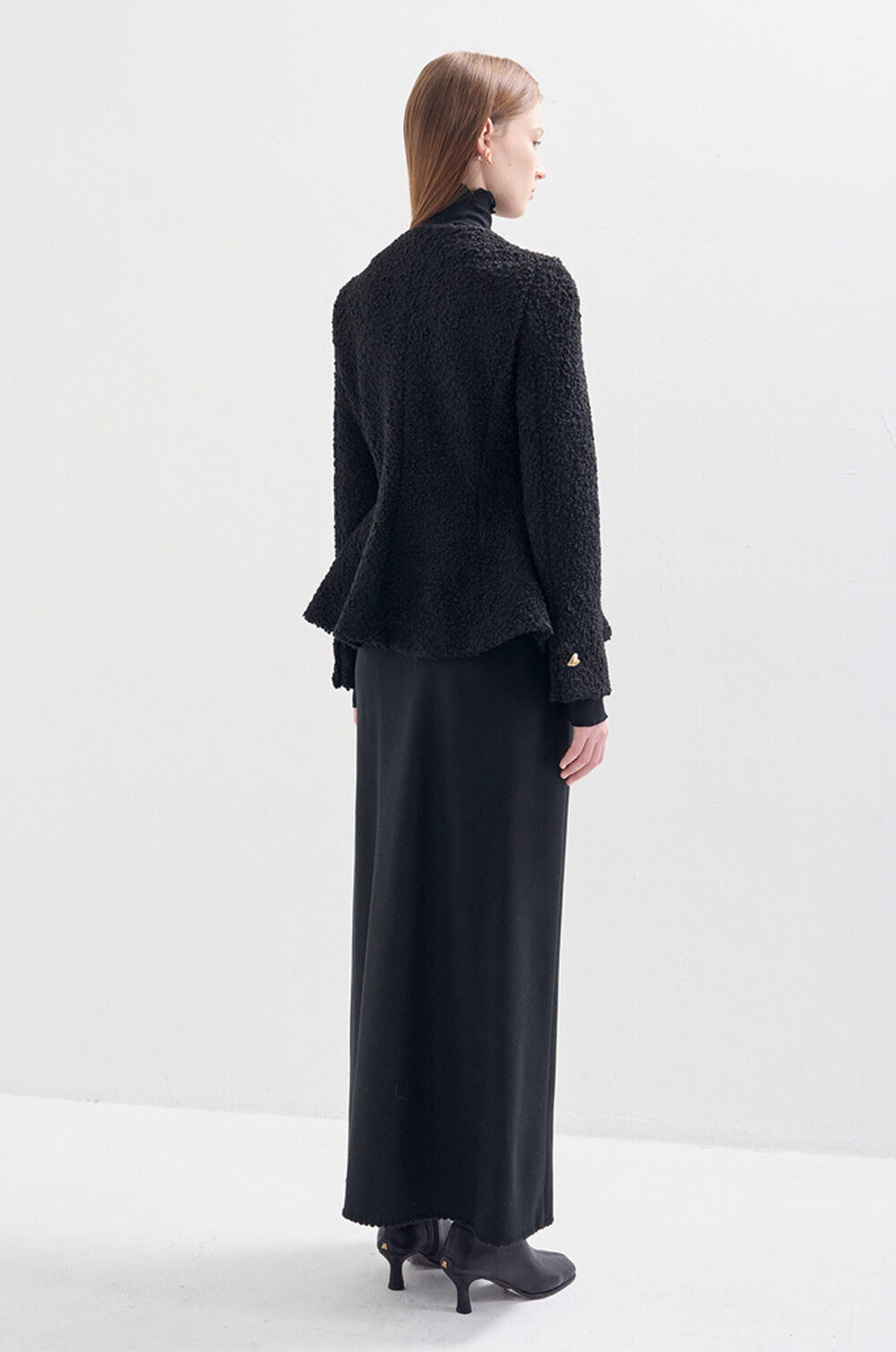 랑방컬렉션 울 블렌드 부클 칼라리스 페플럼 자켓