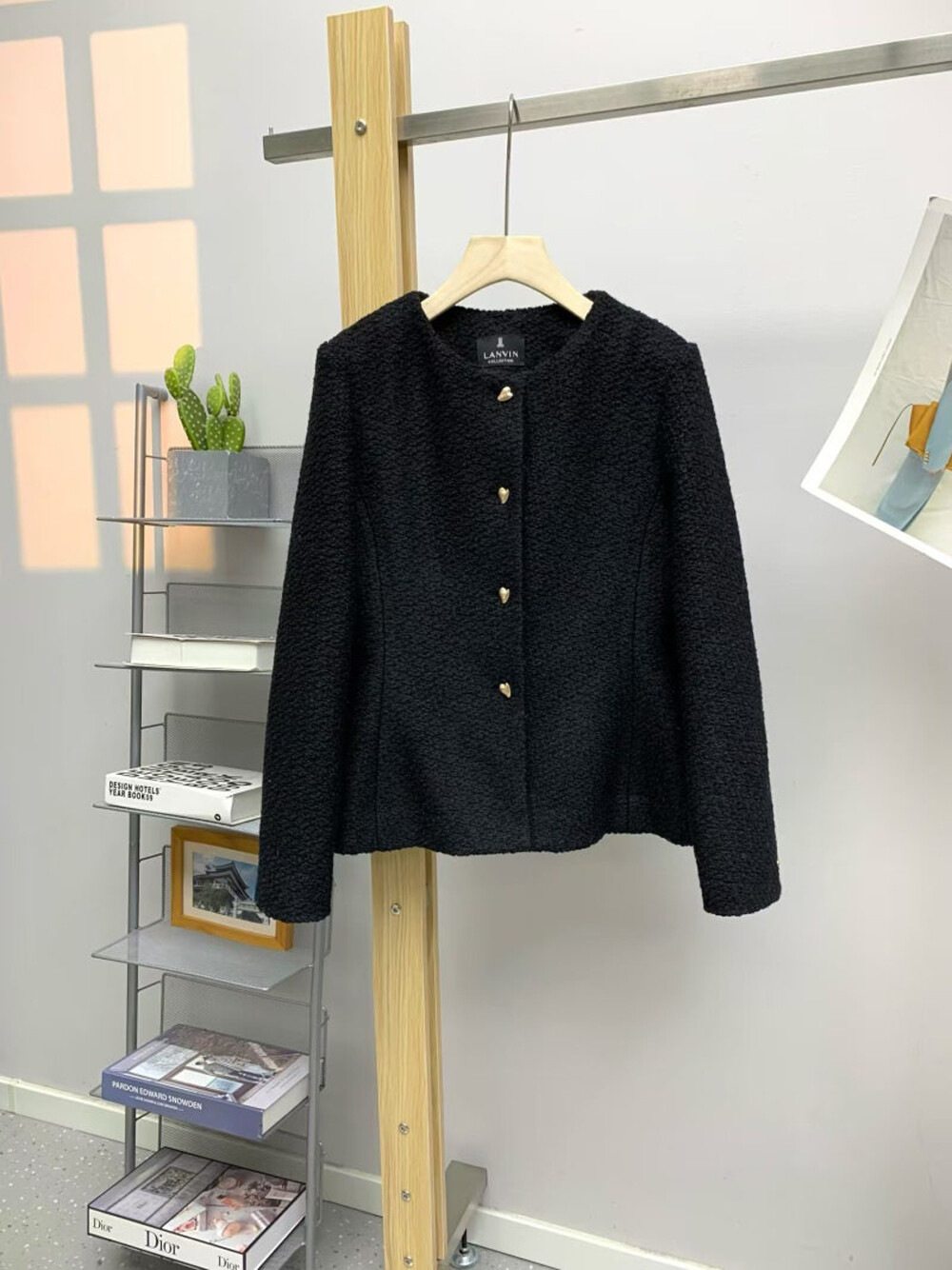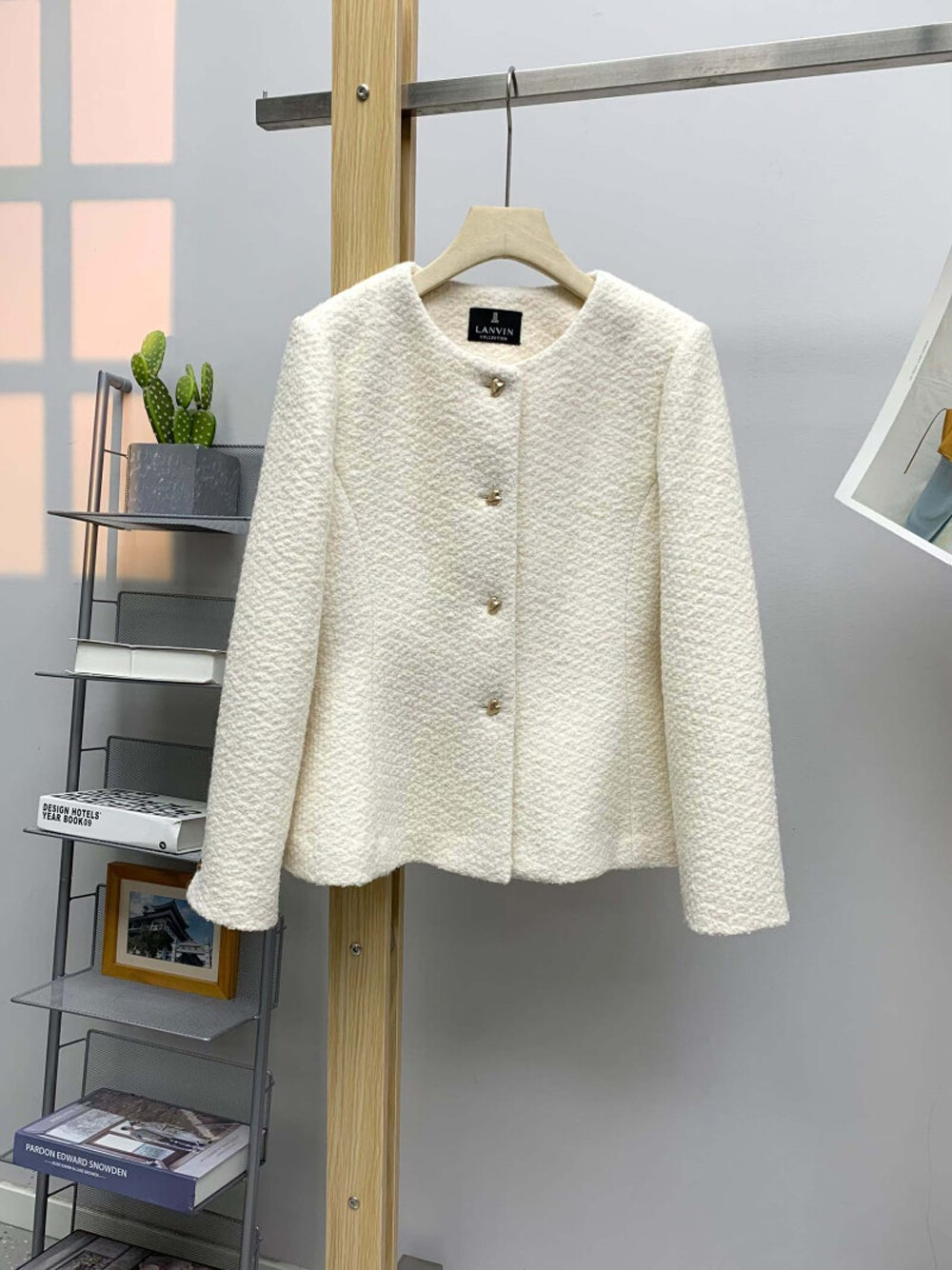 LANVIN. Wool Blend Boucle Collarless Jacket