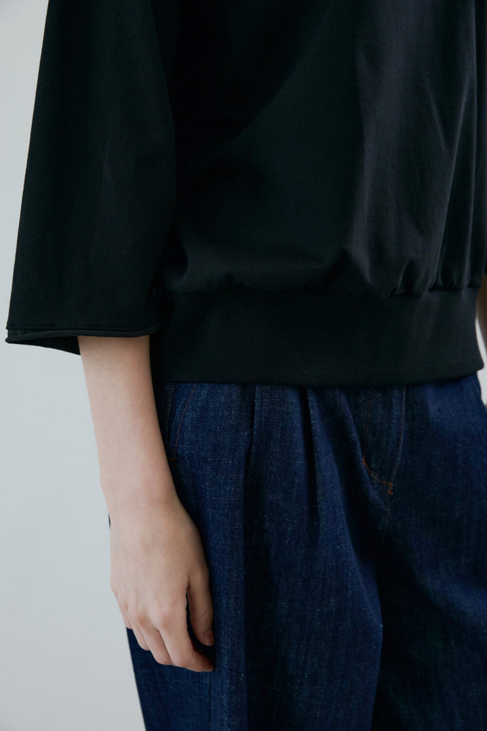 넥 라인과 밑단에 리브 마감으로