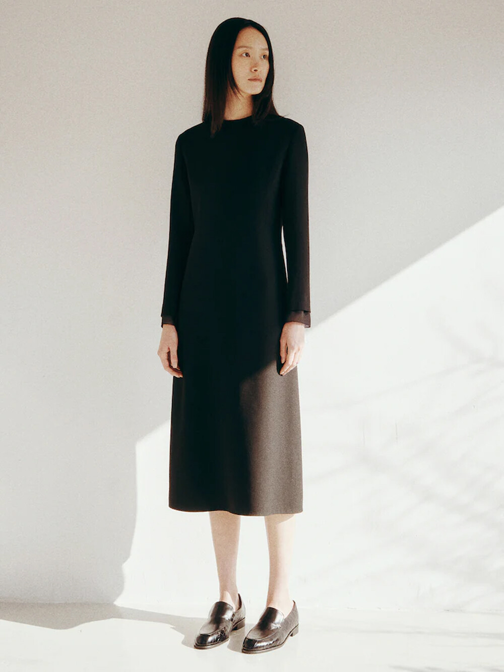 이중지 소재의 슬림핏 드레스로,