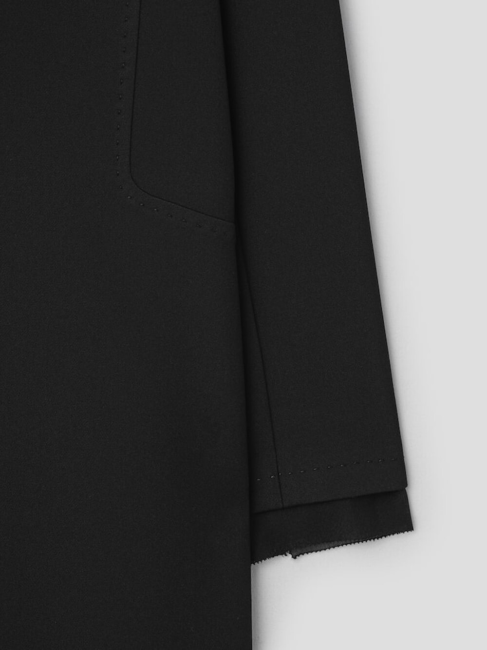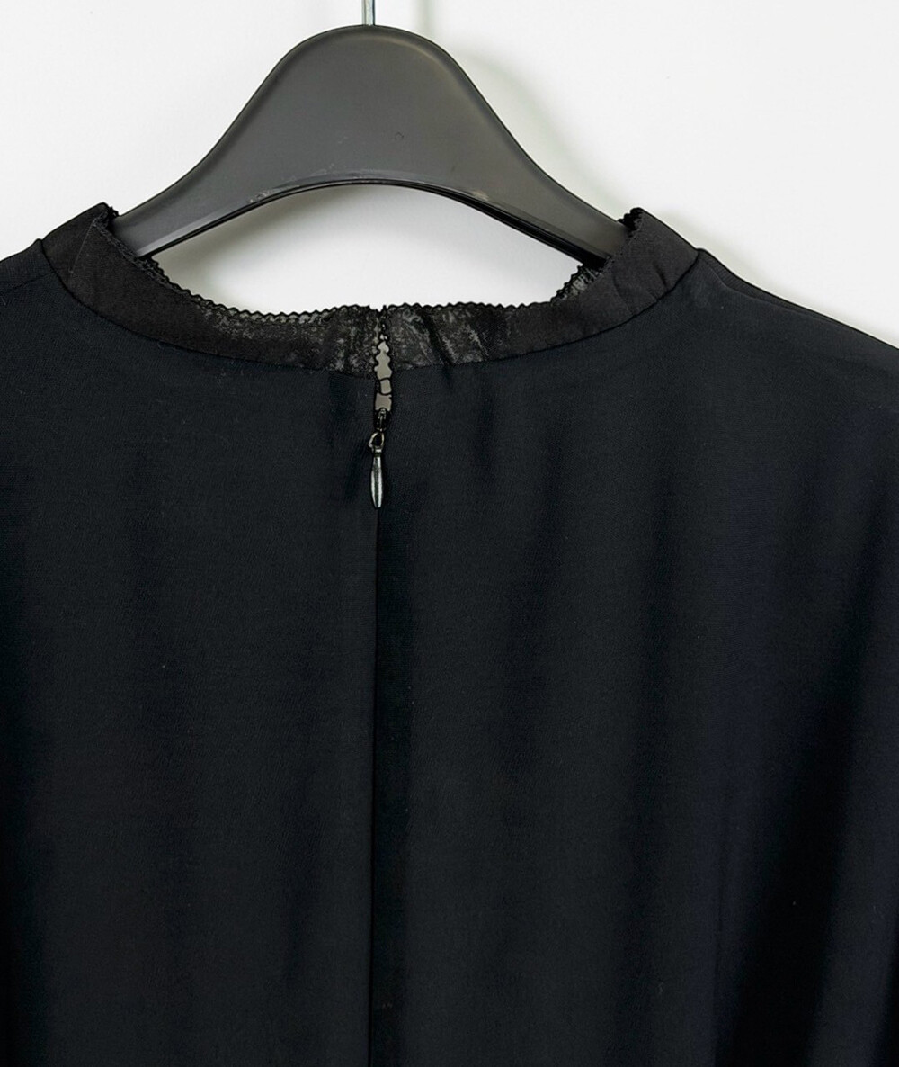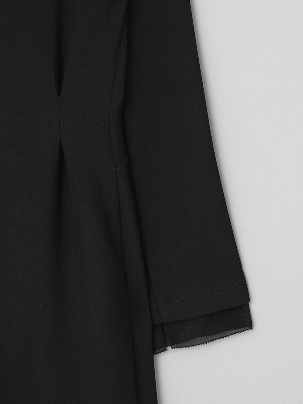 허릿단의 절개와 핀턱 디테일로