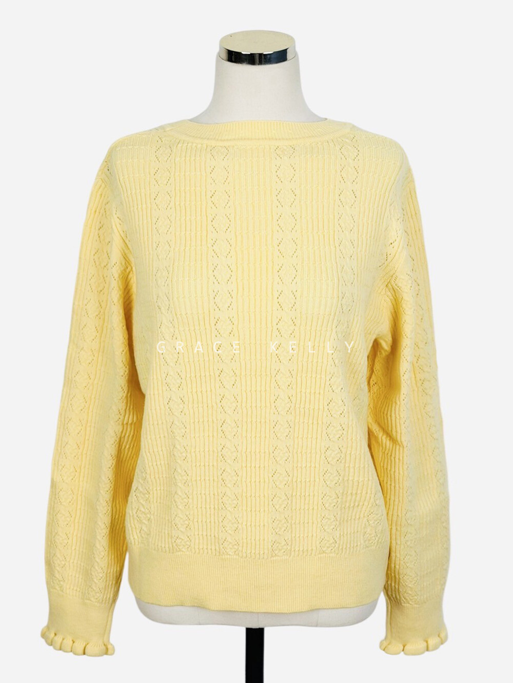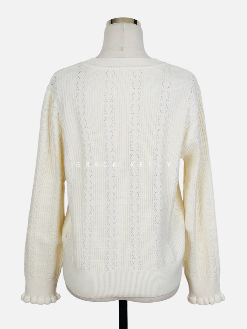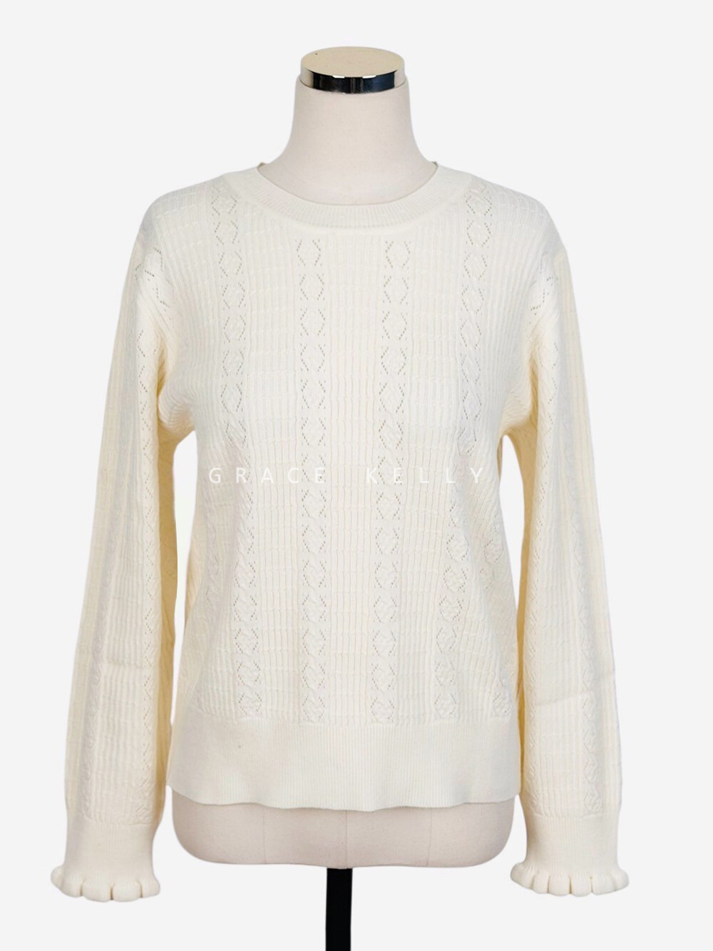 아일렛 디테일이 돋보이는 니트 탑입니다.