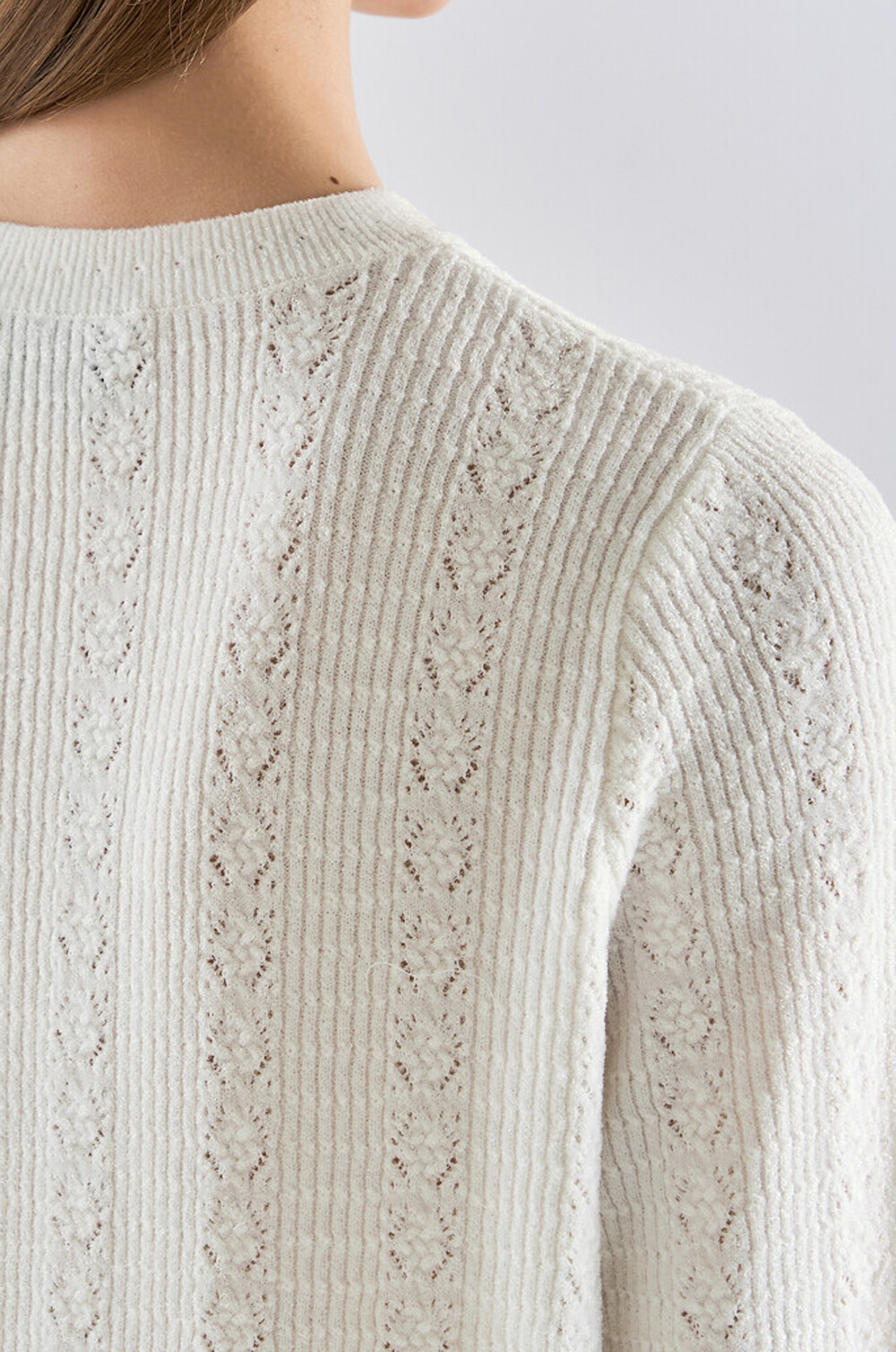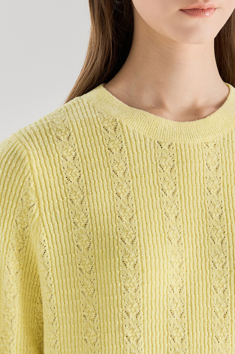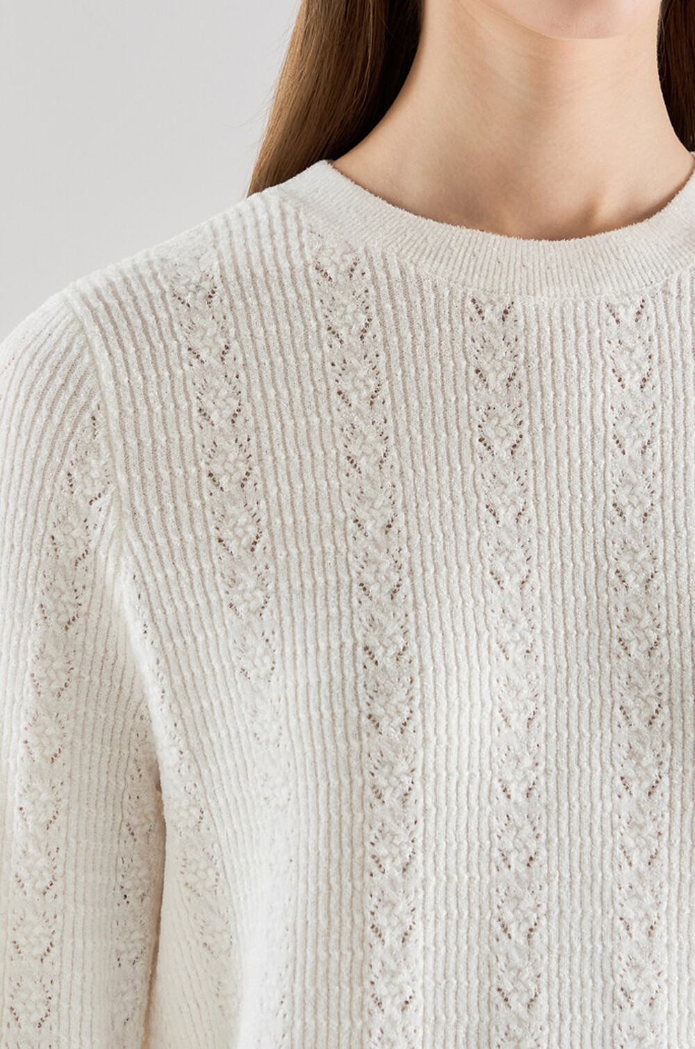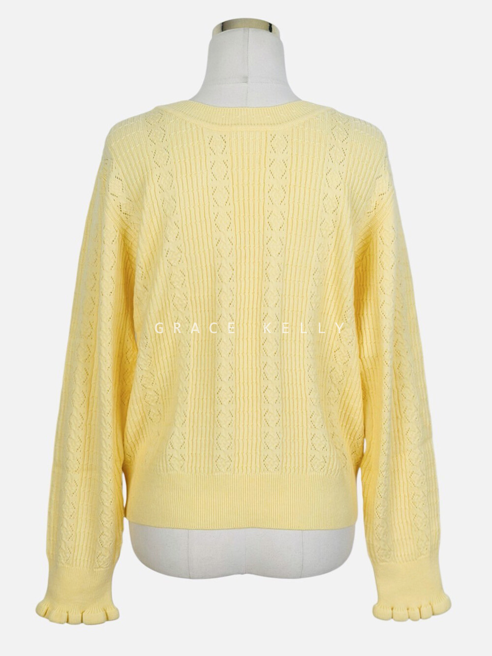 아일렛 디테일이 돋보이는 니트 탑입니다.