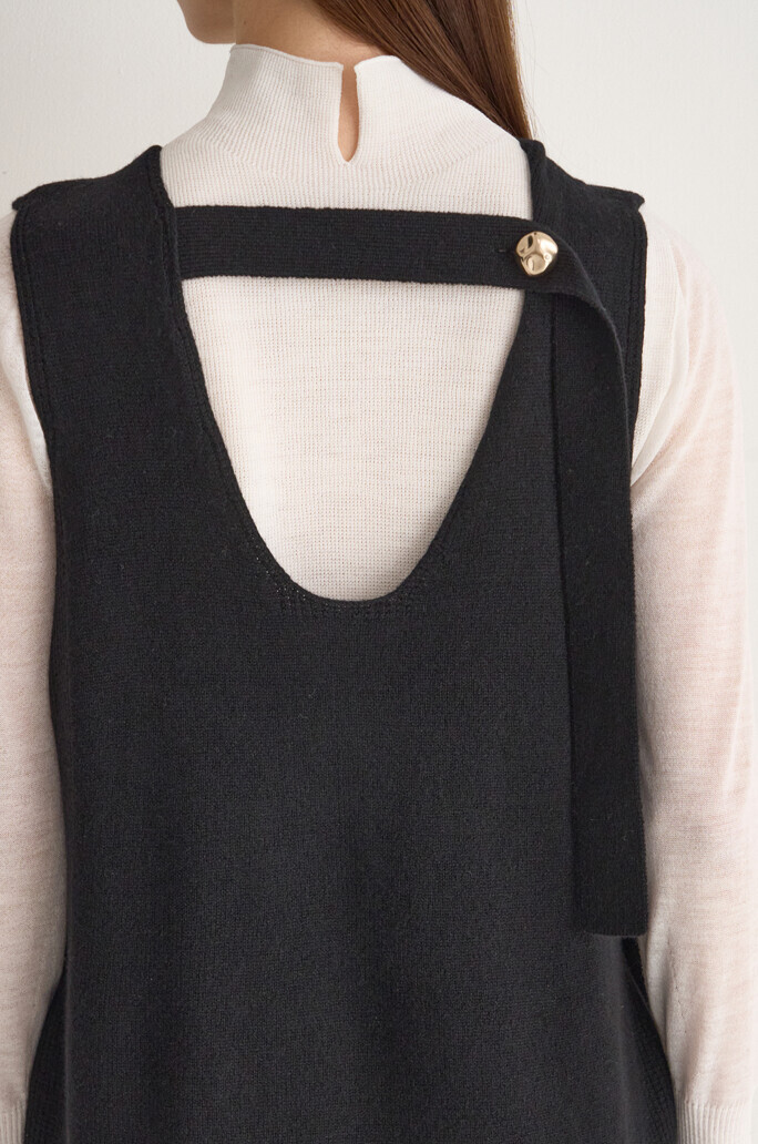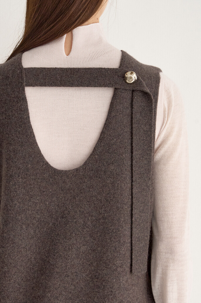 - 넥라인 뒷면에 버튼 여밈의 스트랩