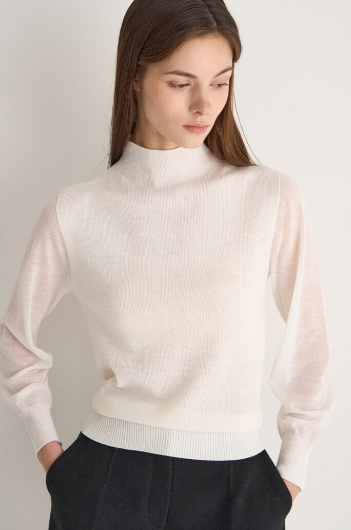 - 울혼방 소재의 하이넥 니트 탑을 함께 구성