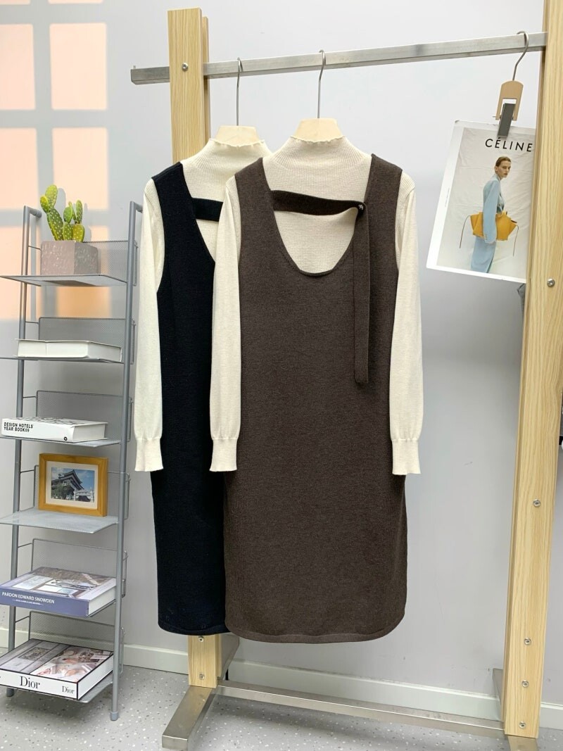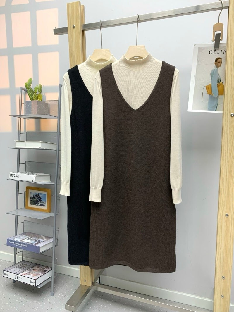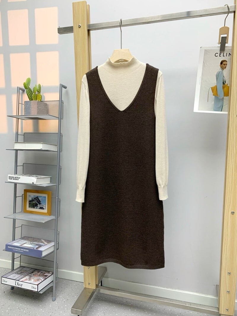 마인 캐시미어 블렌드 브이넥 드레스 & 하이넥 탑