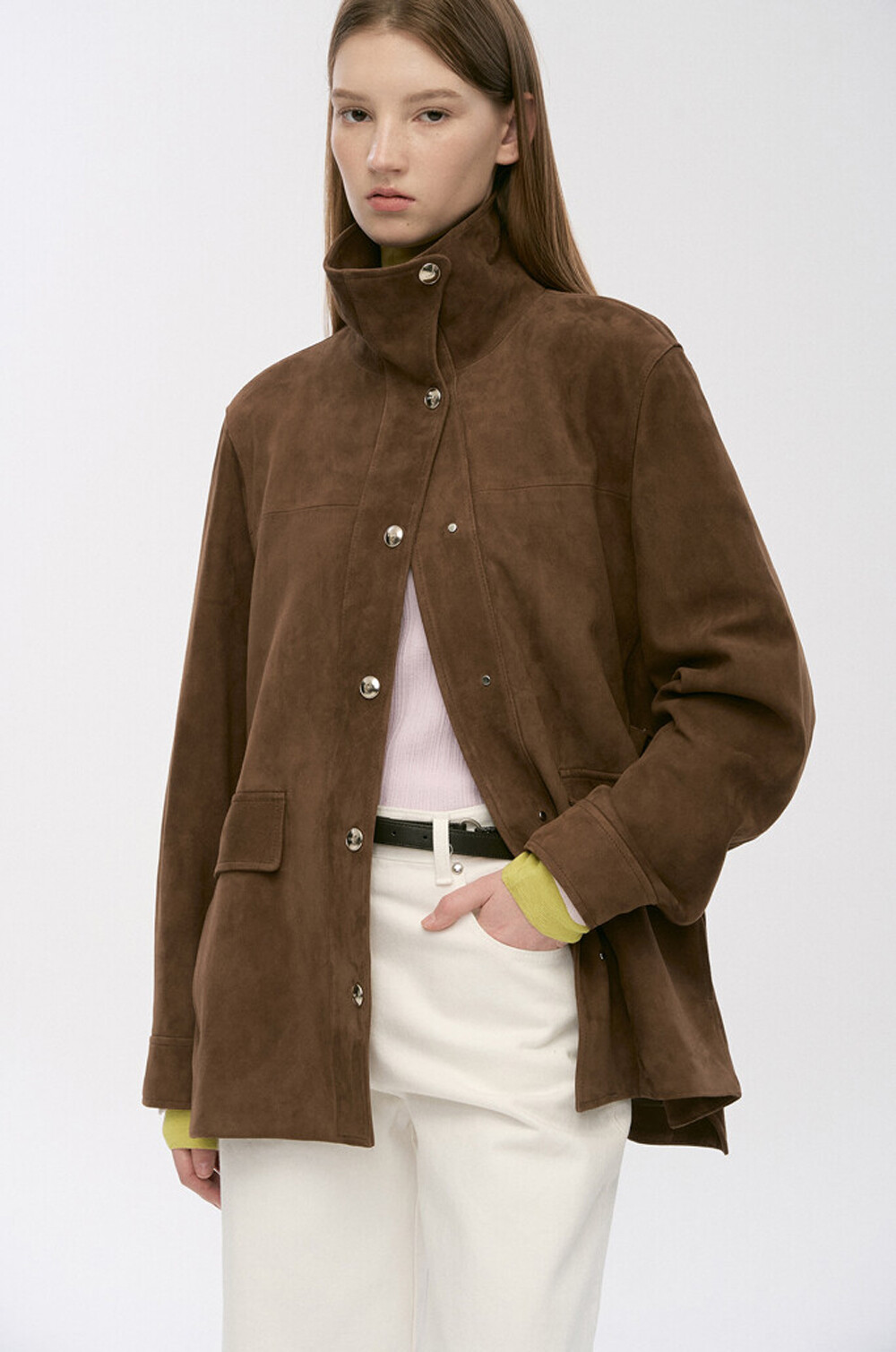스웨이드 소재로 완성된 자켓입니다.
