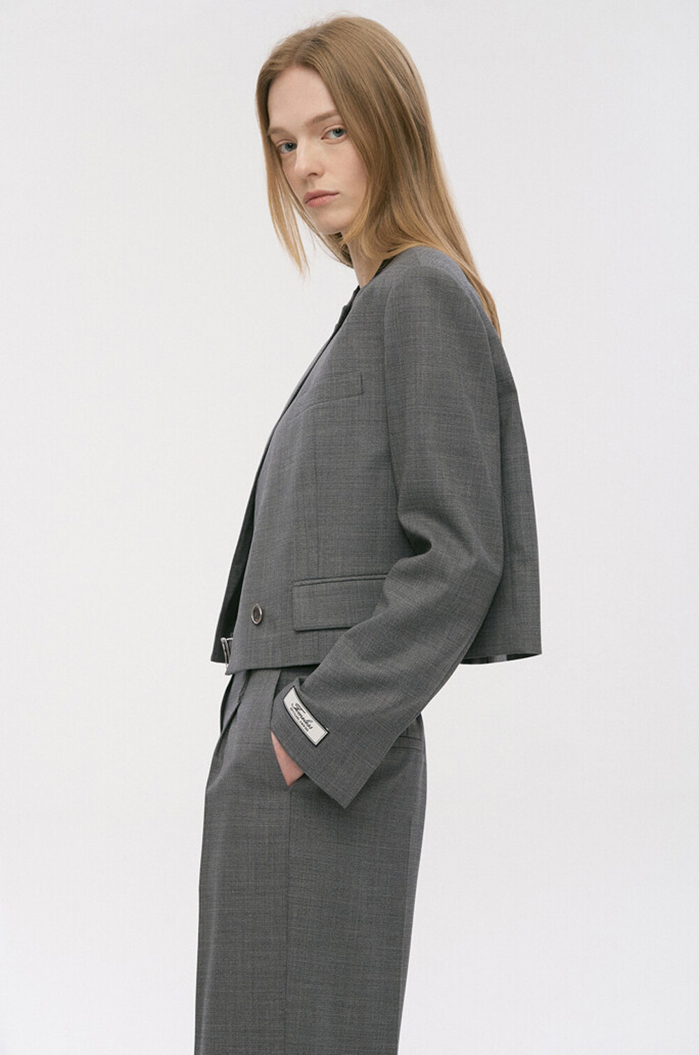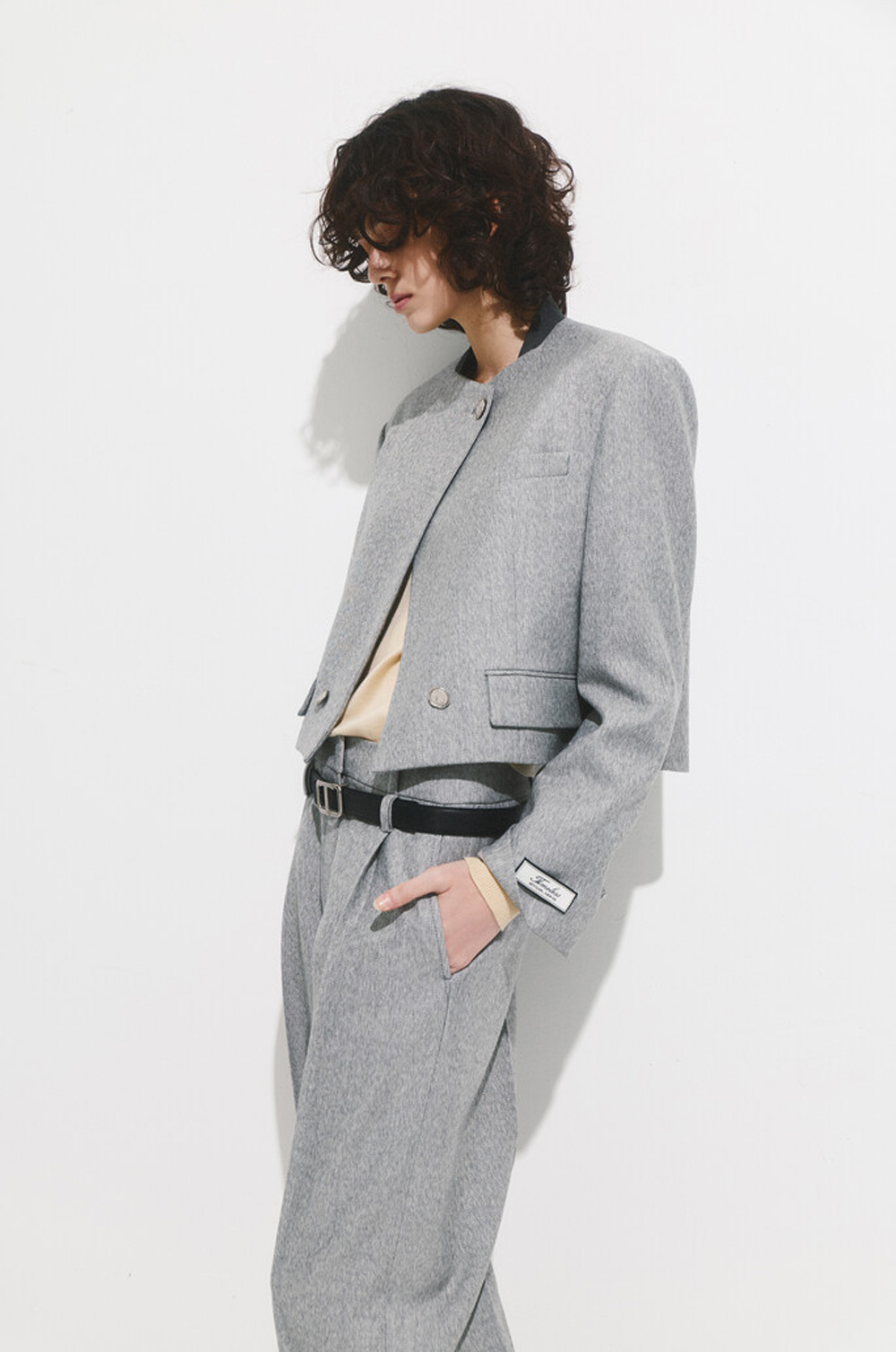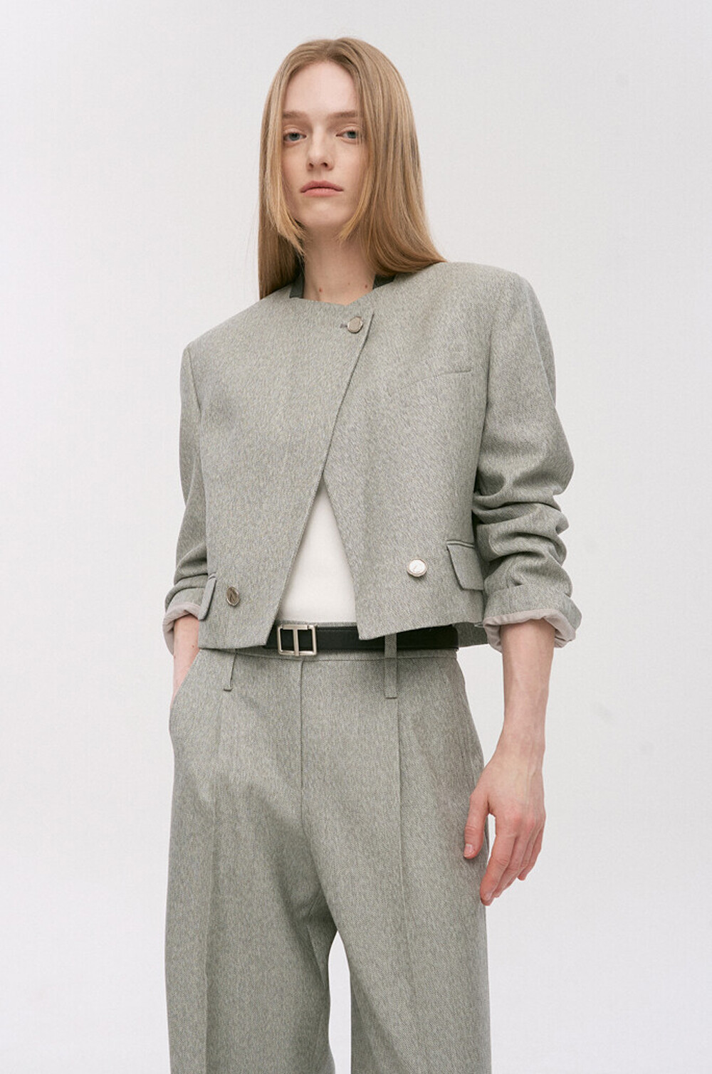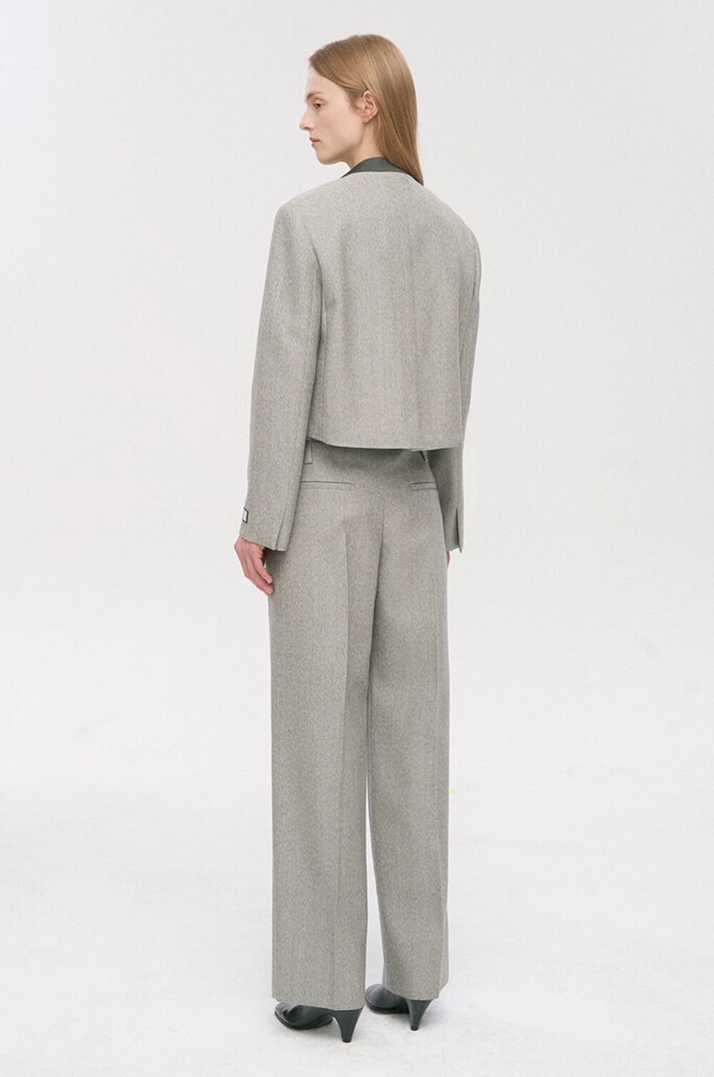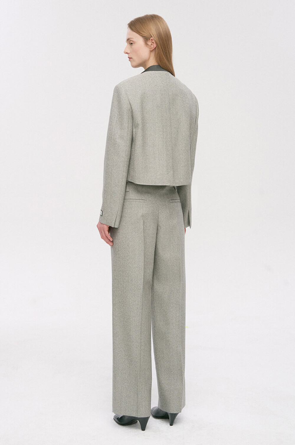 타임 울 블렌드 칼라리스 크롭 자켓 & 팬츠