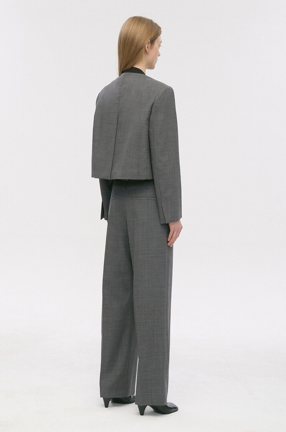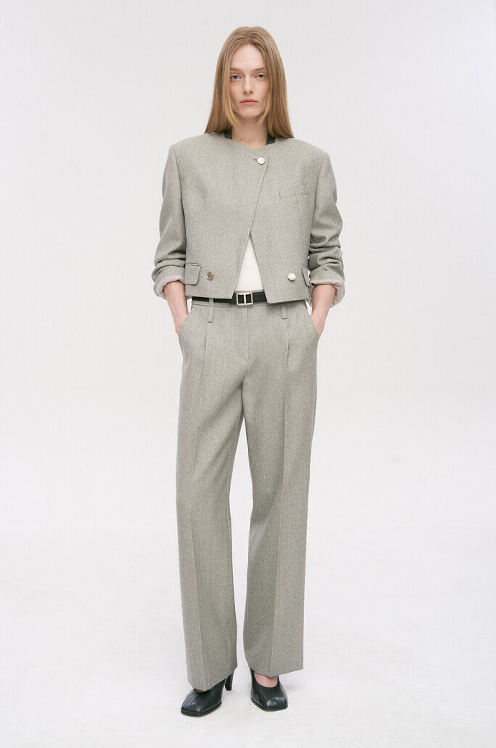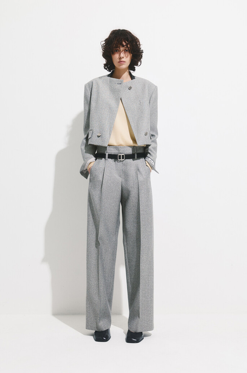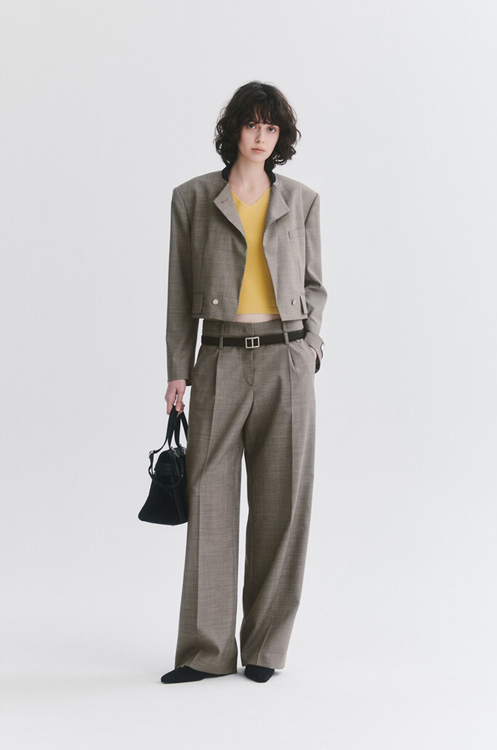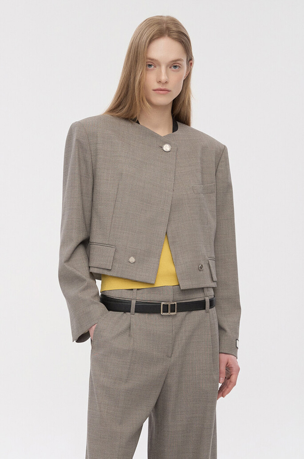 타임 울 블렌드 칼라리스 크롭 자켓 & 팬츠