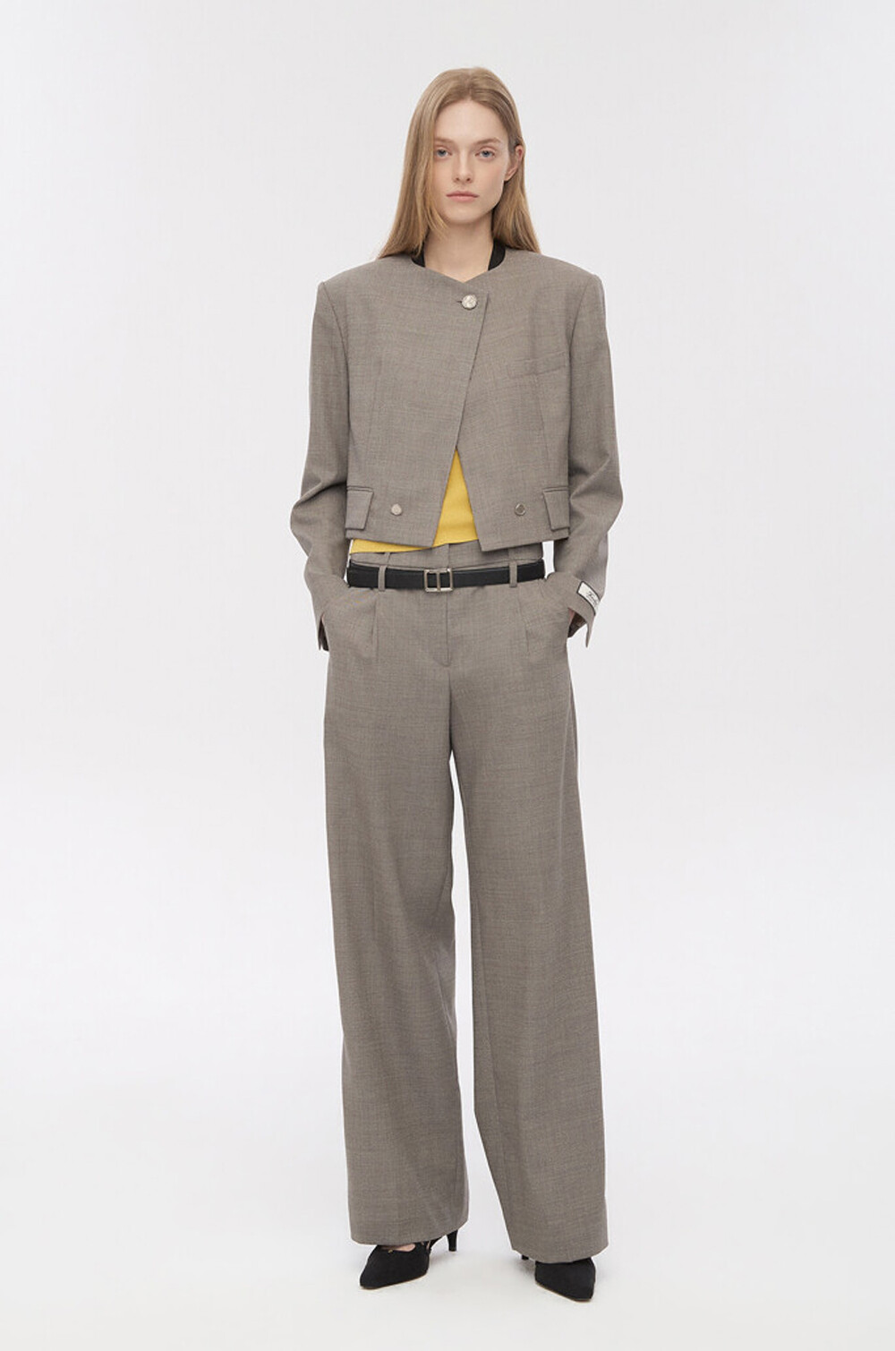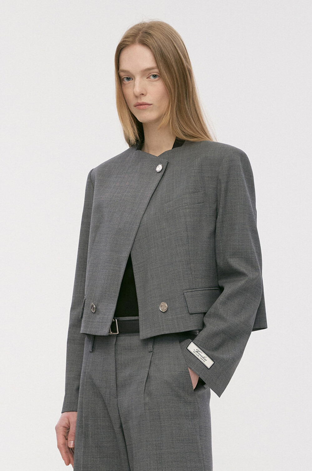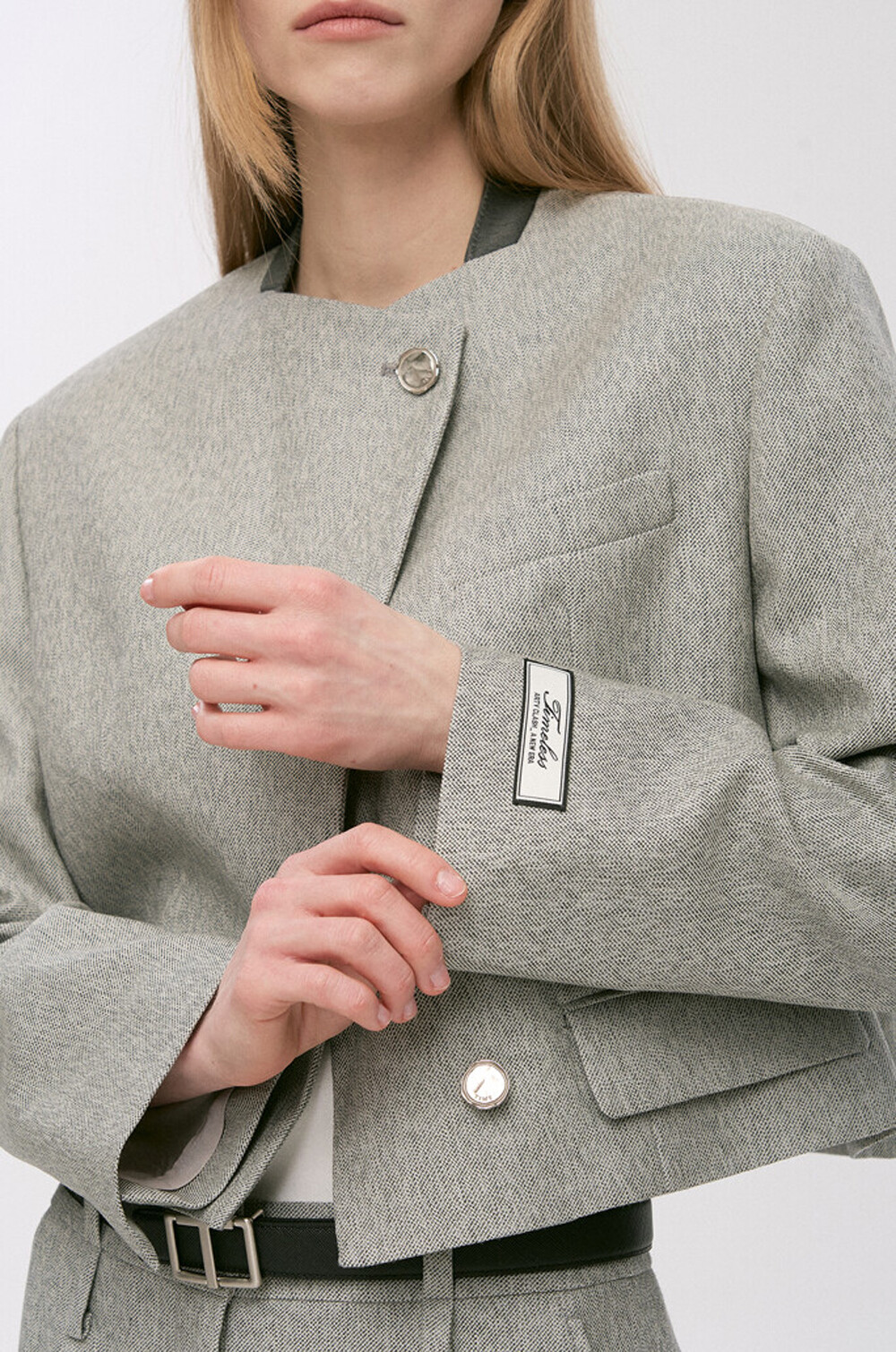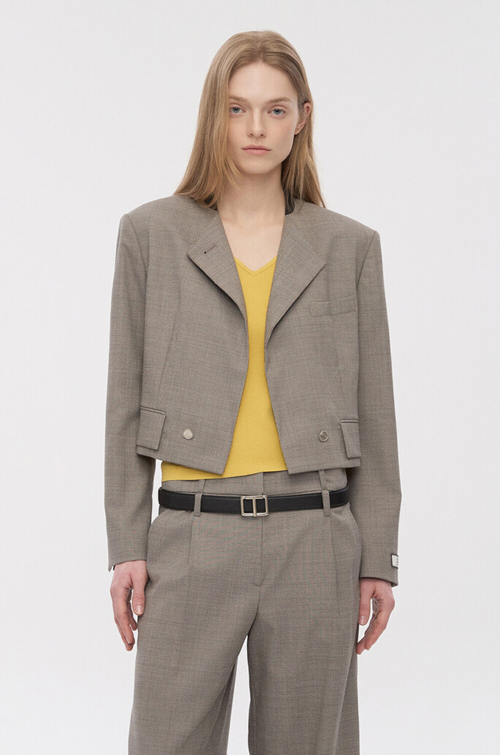 타임 울 블렌드 칼라리스 크롭 자켓 & 팬츠
