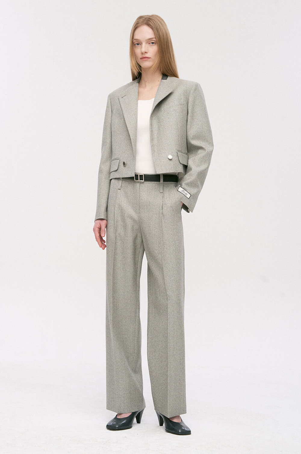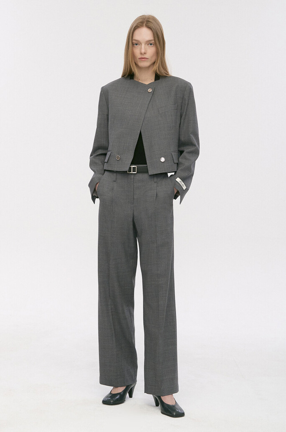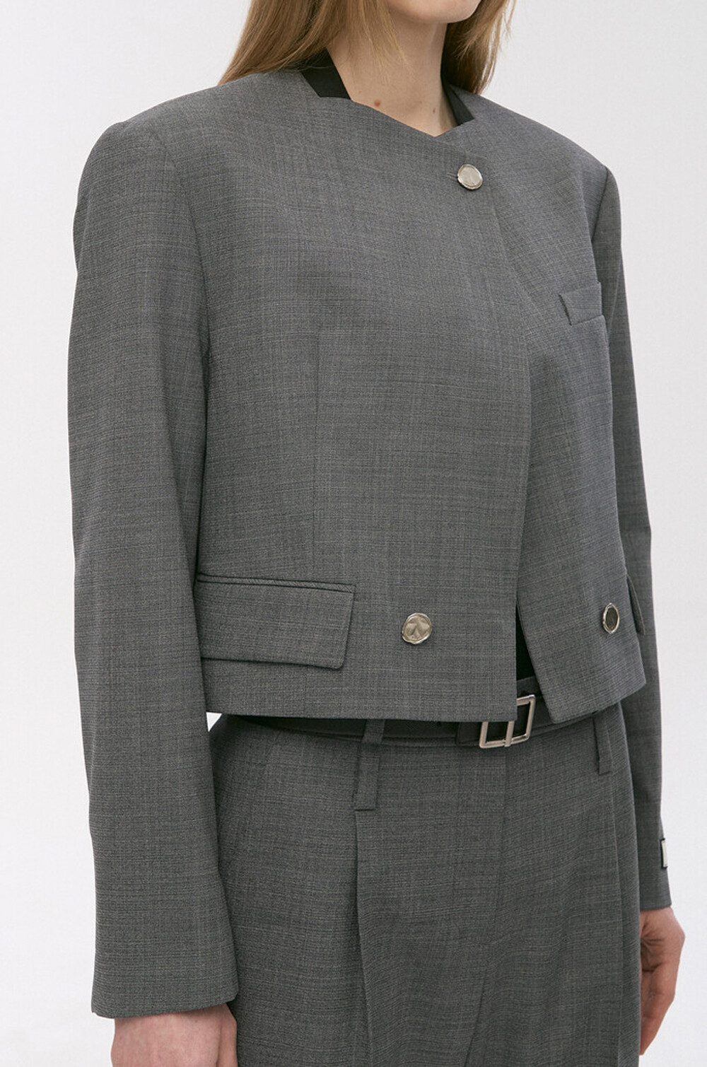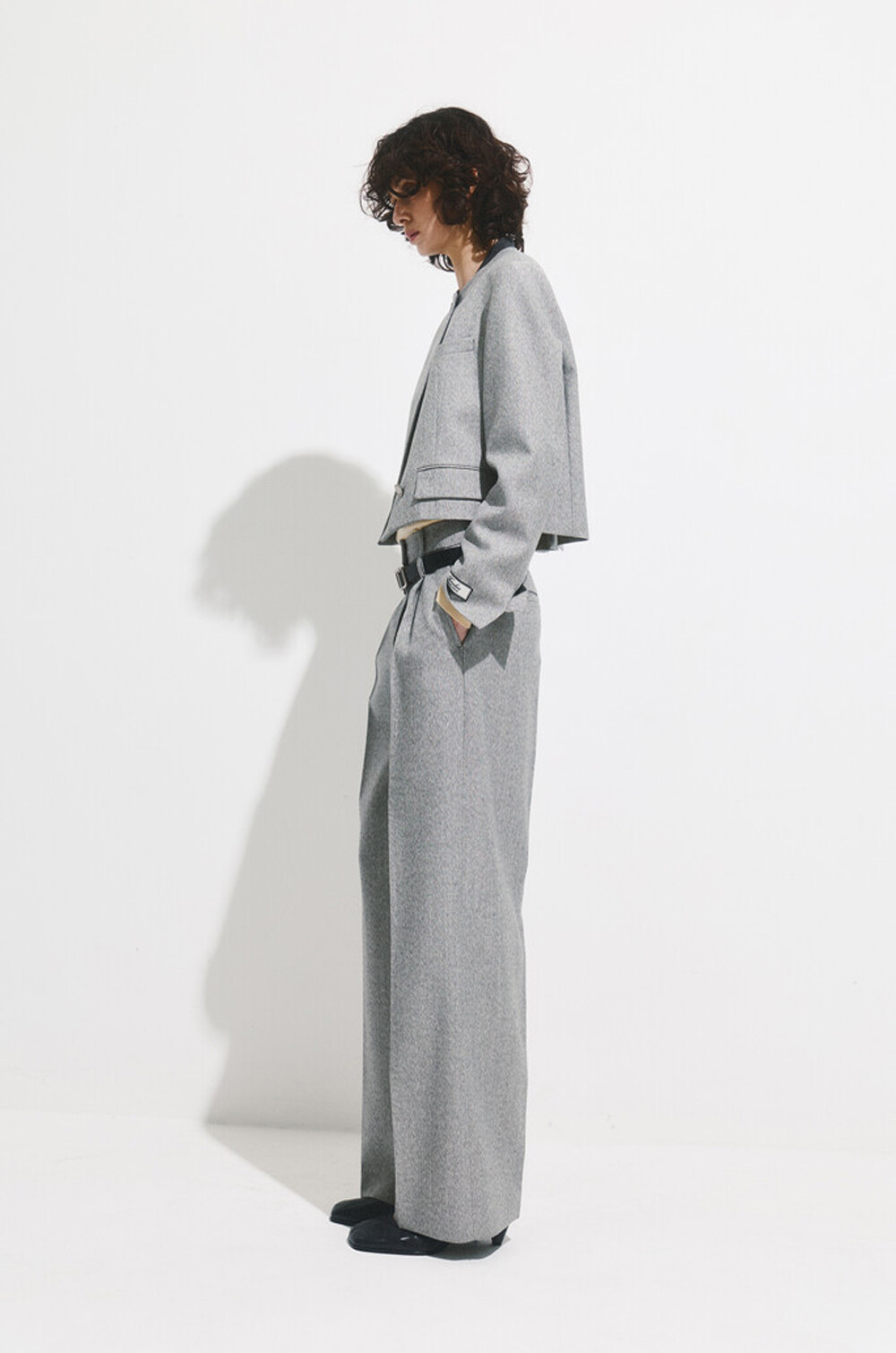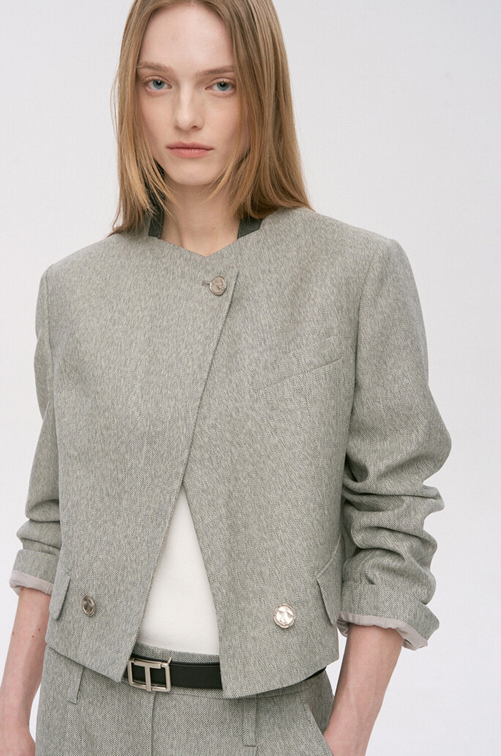 타임 울 블렌드 칼라리스 크롭 자켓 & 팬츠