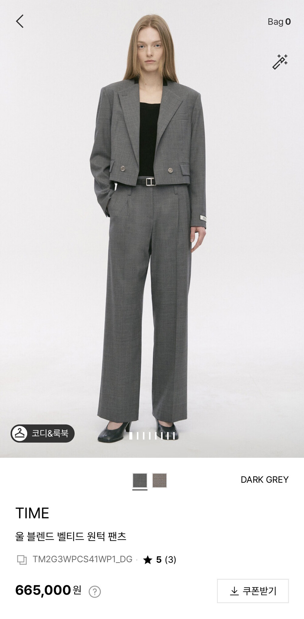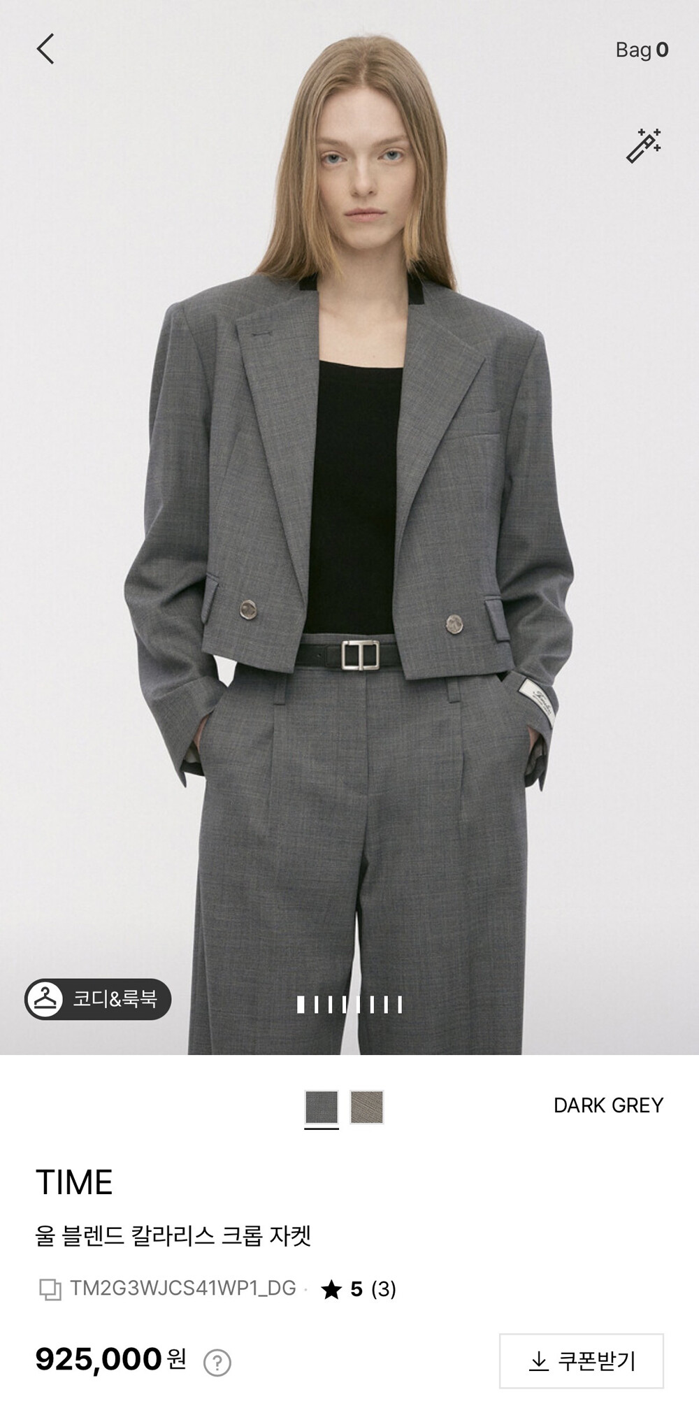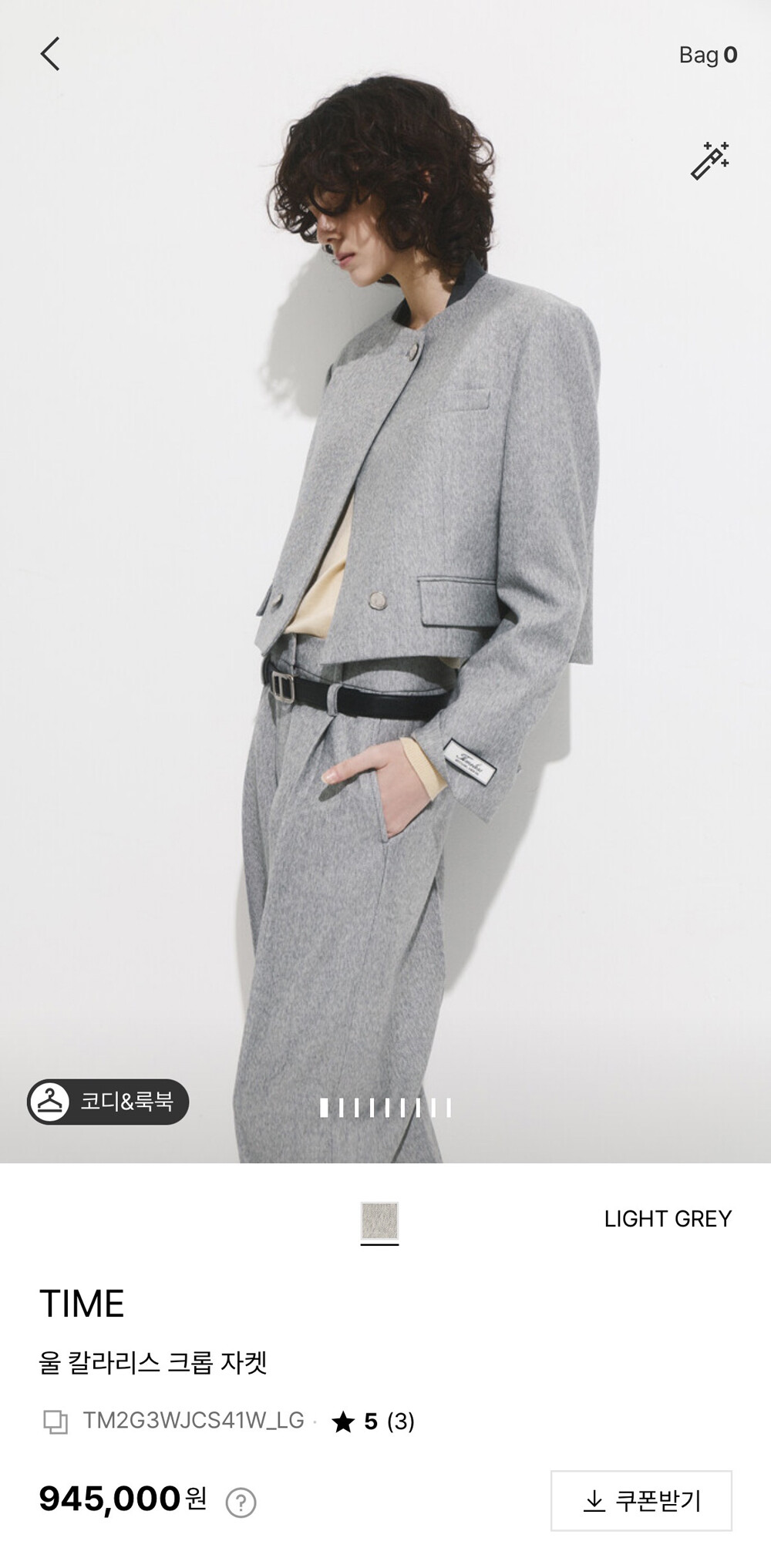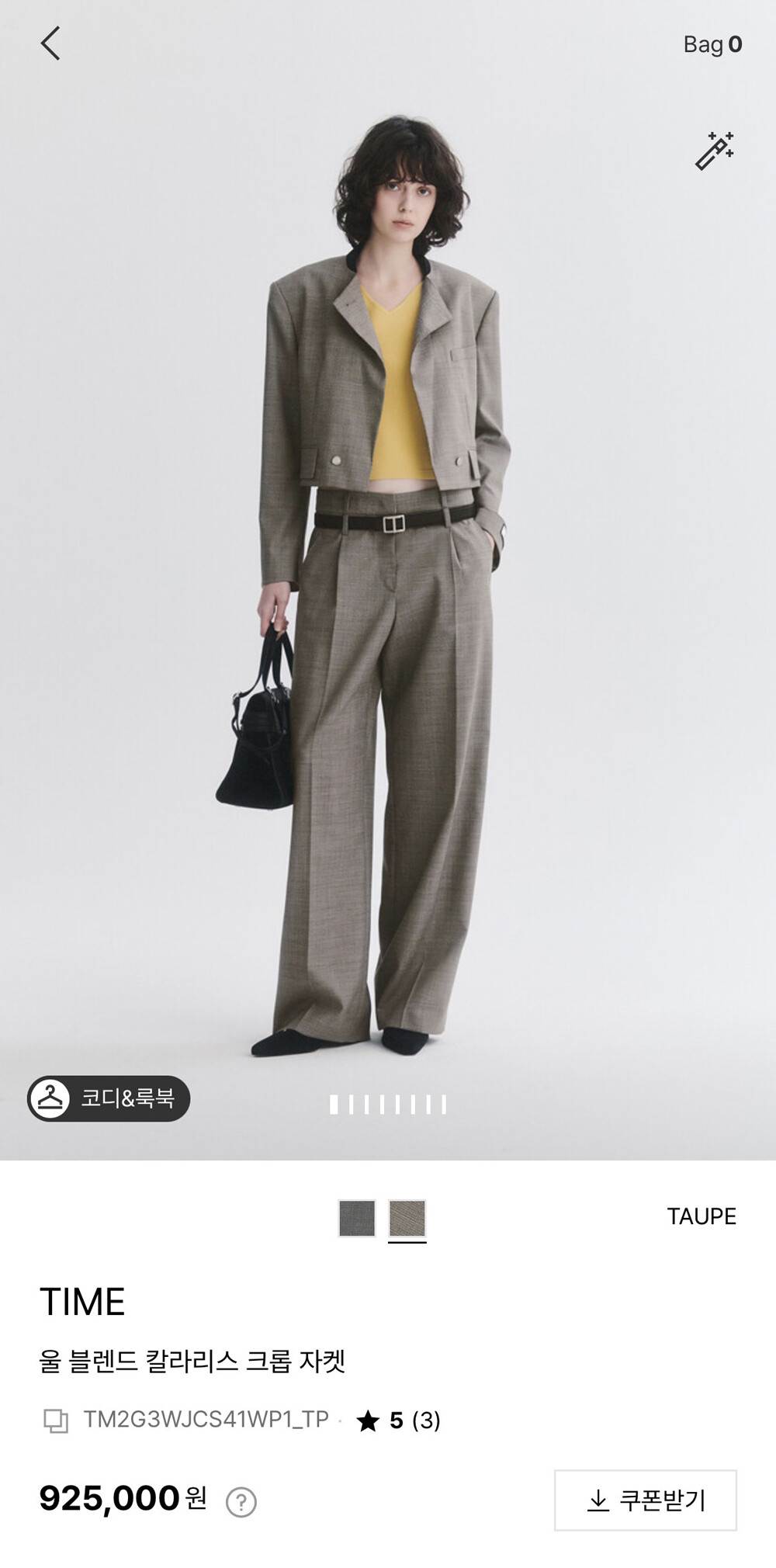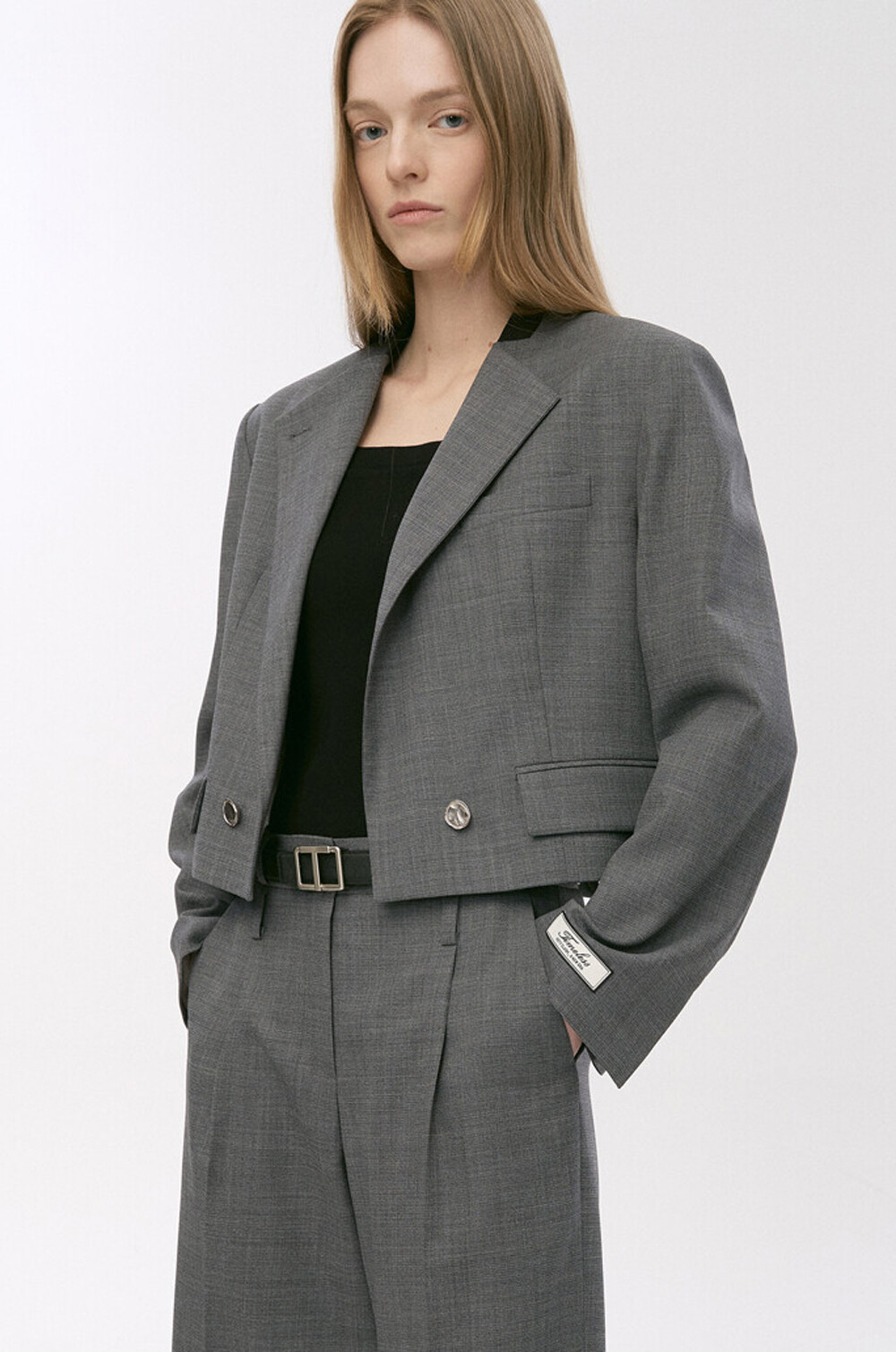 타임 울 블렌드 칼라리스 크롭 자켓 & 팬츠