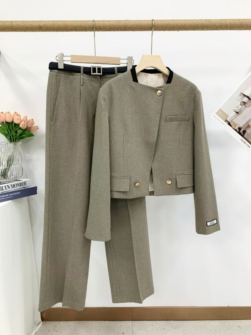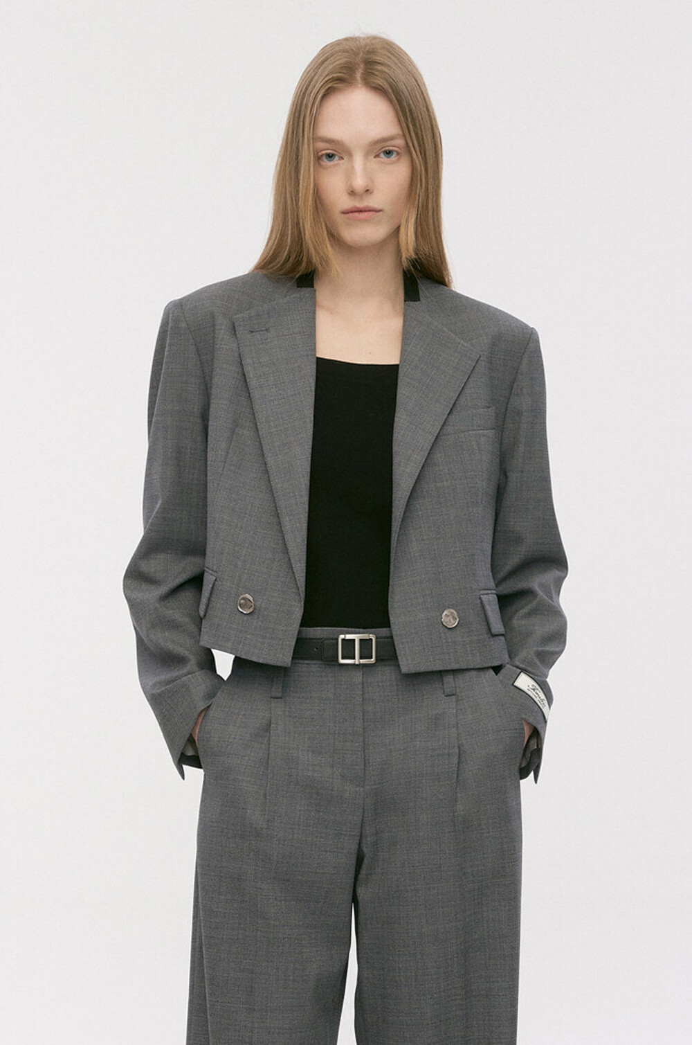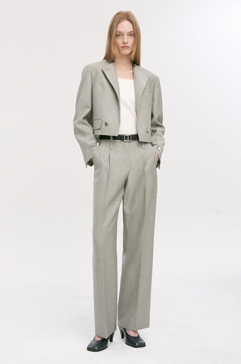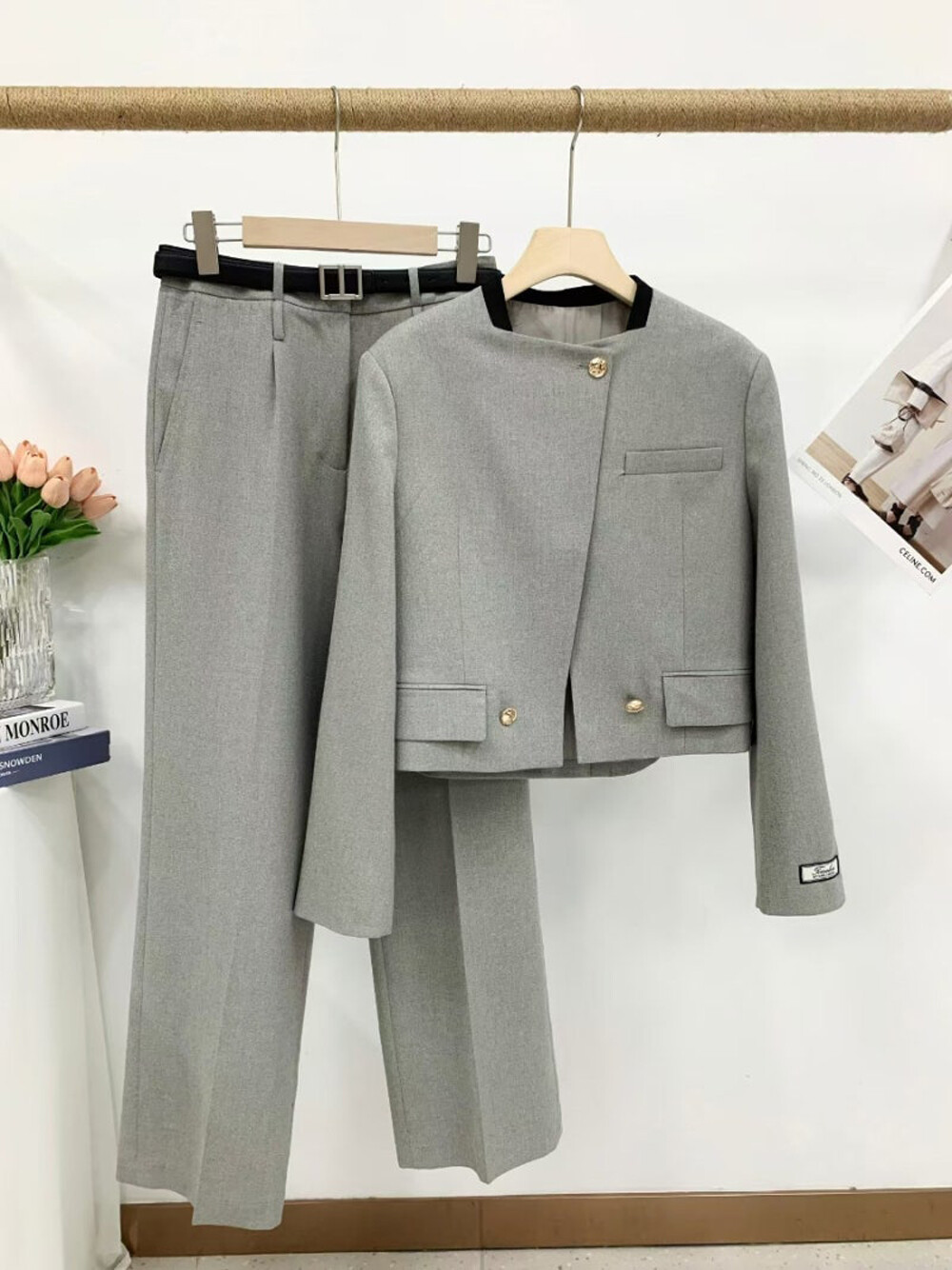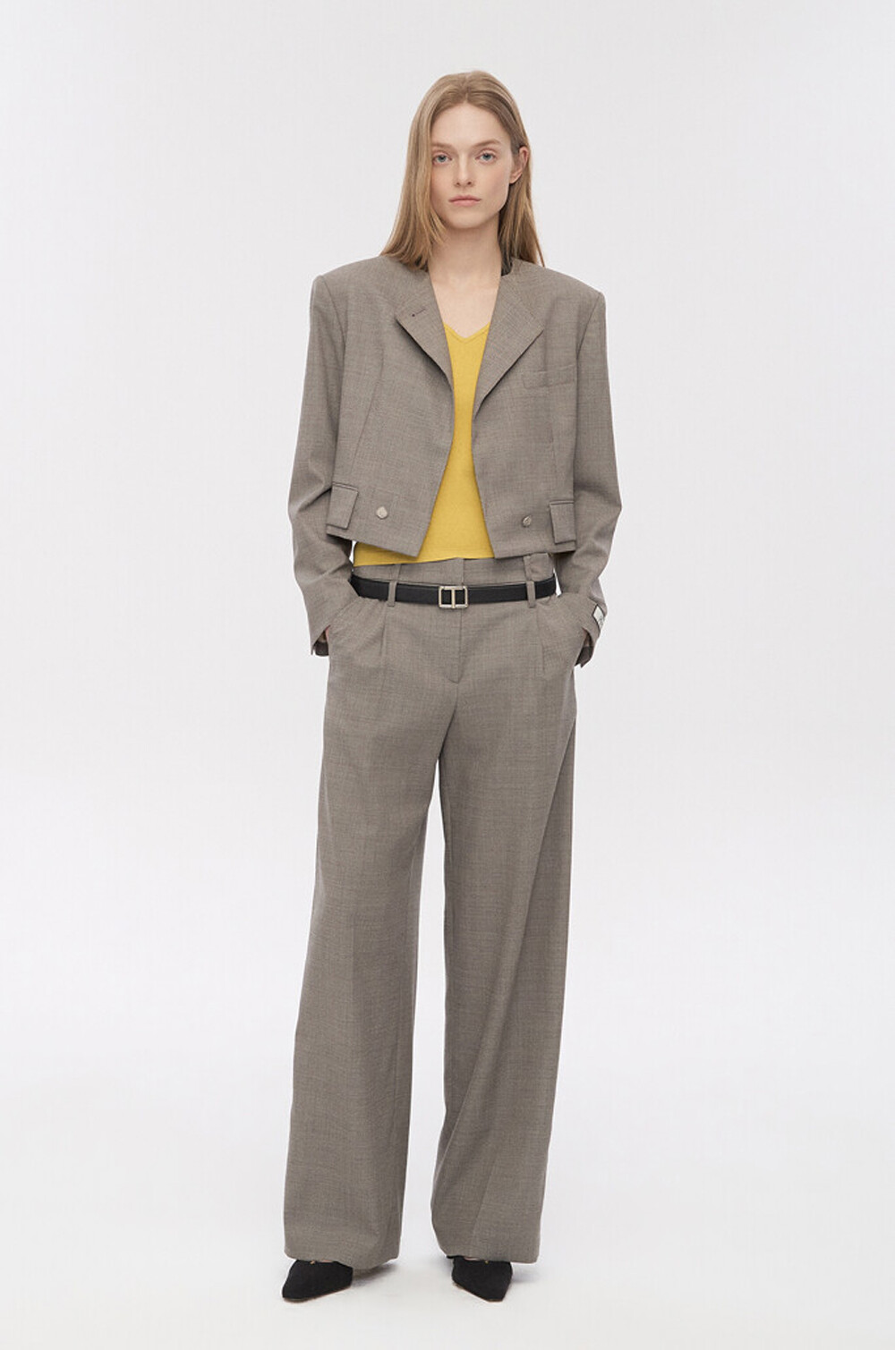 크롭 자켓과 스트레이트 팬츠