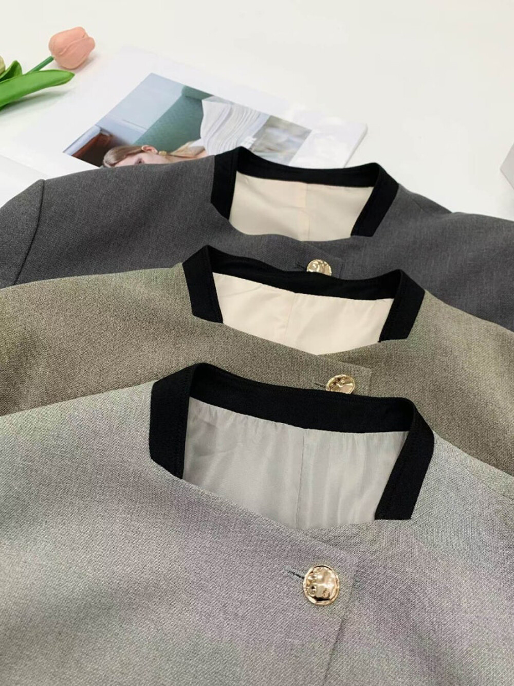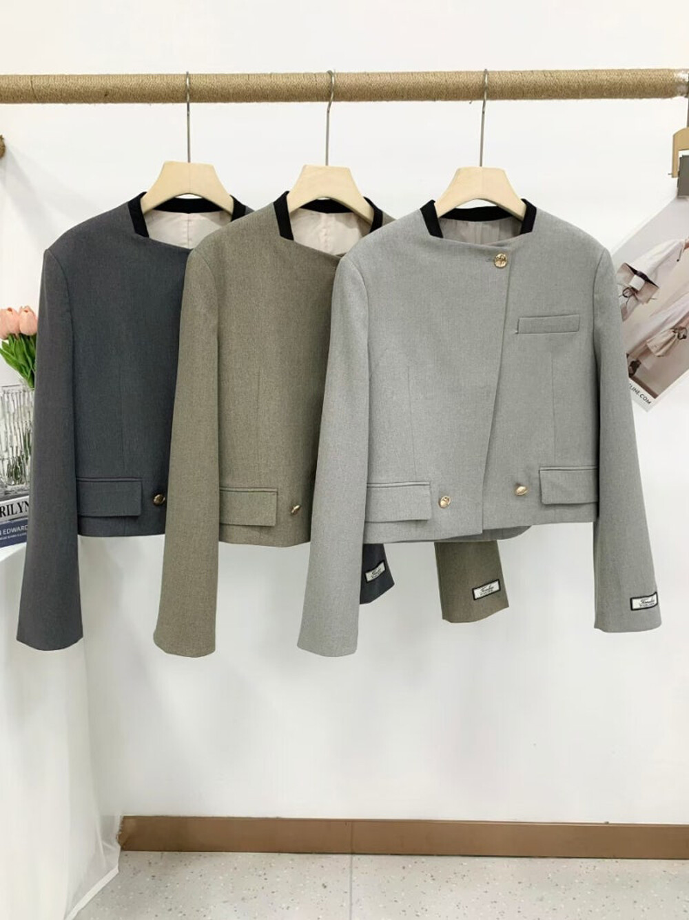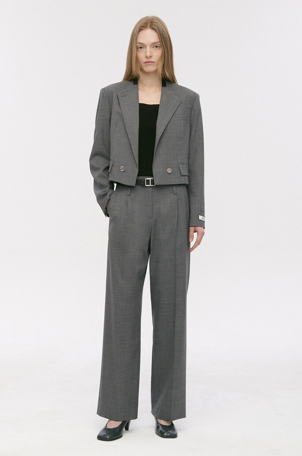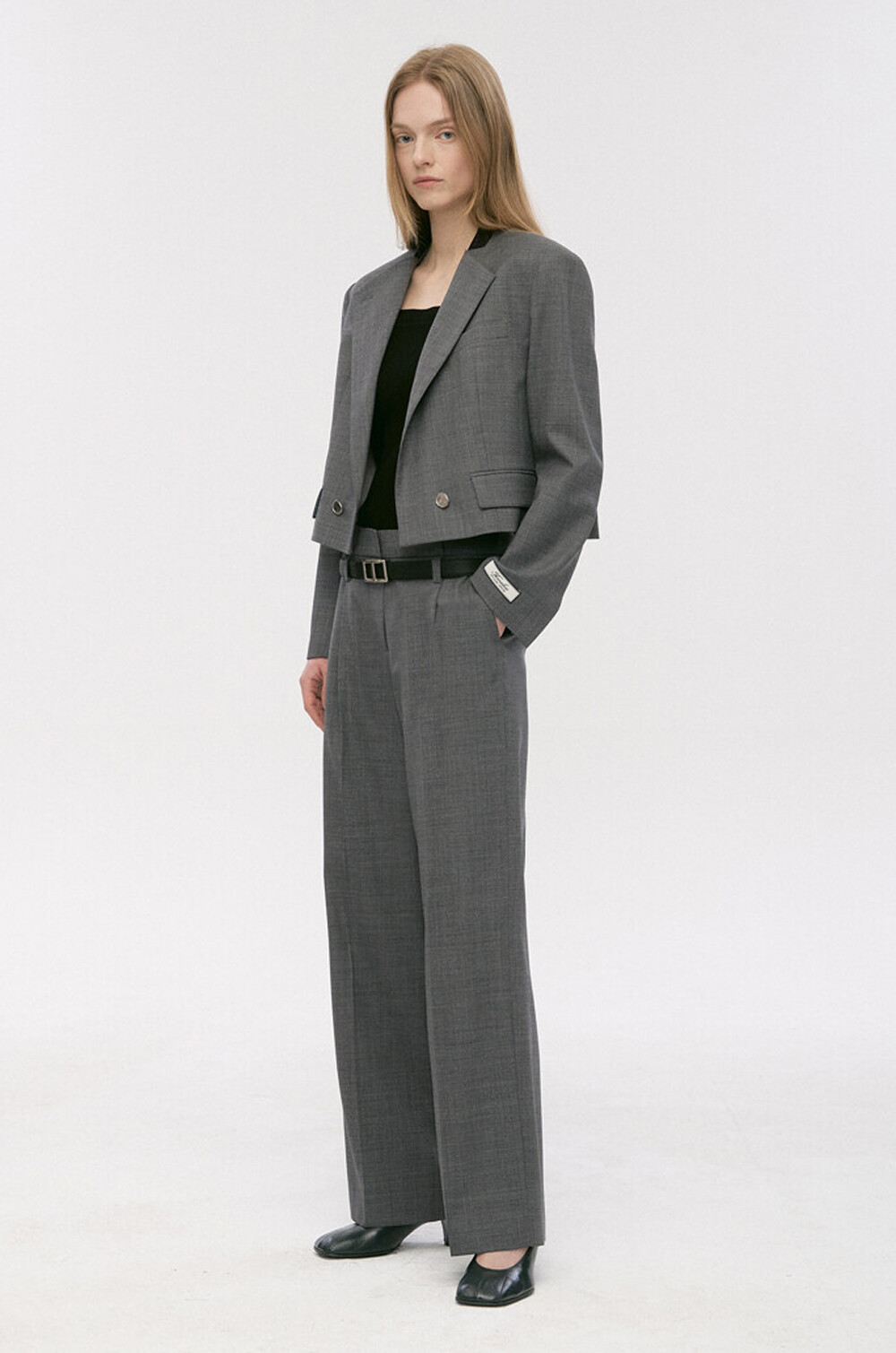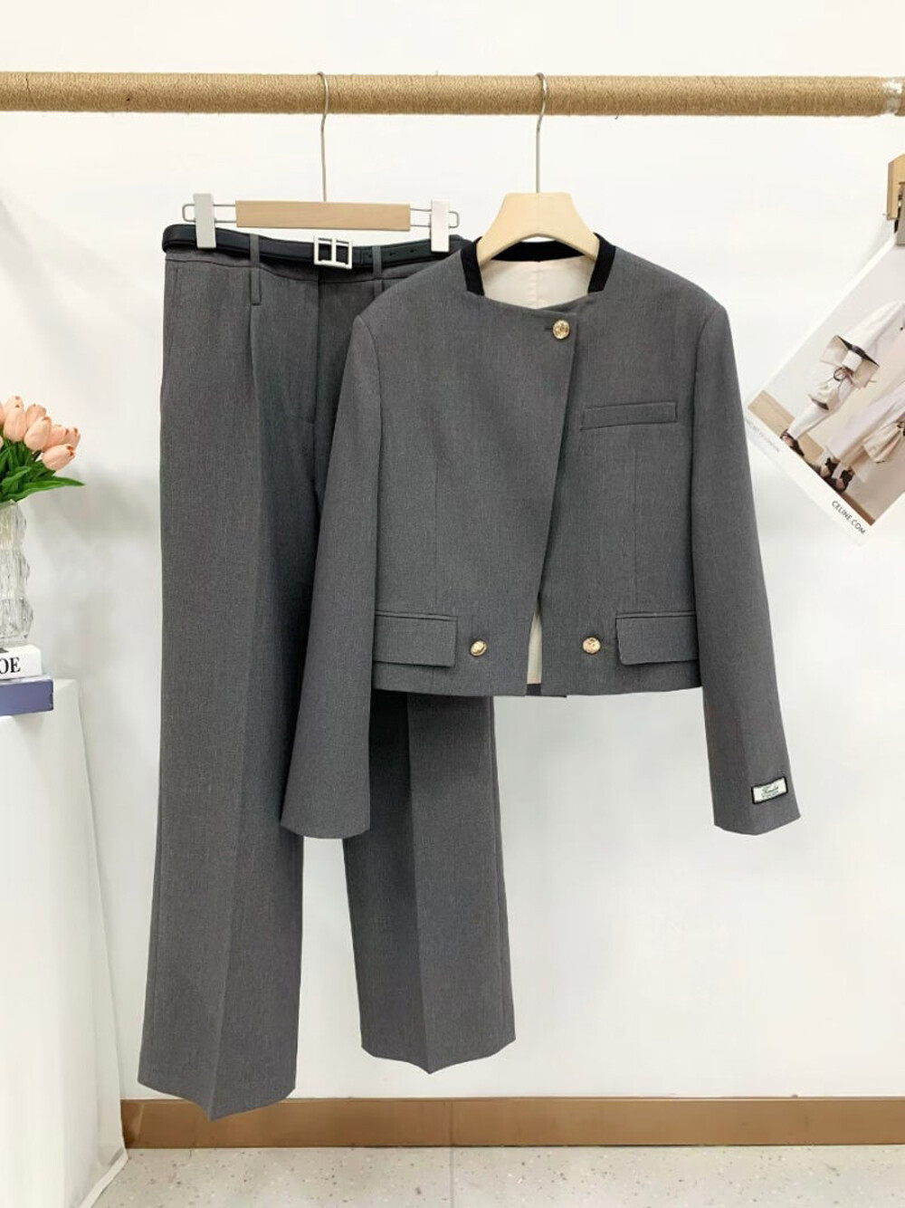 크롭 자켓과 스트레이트 팬츠