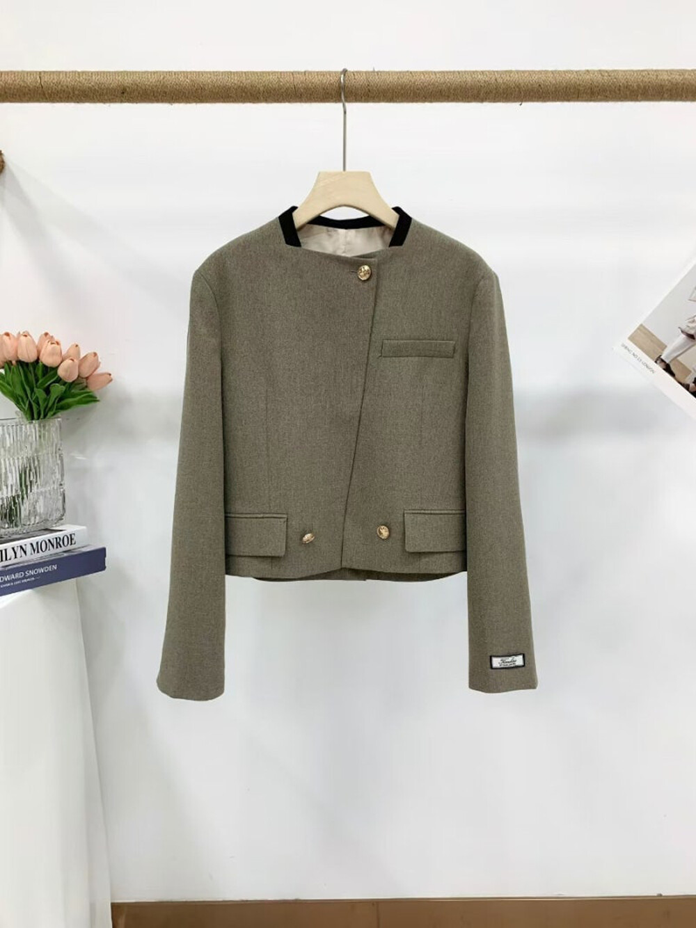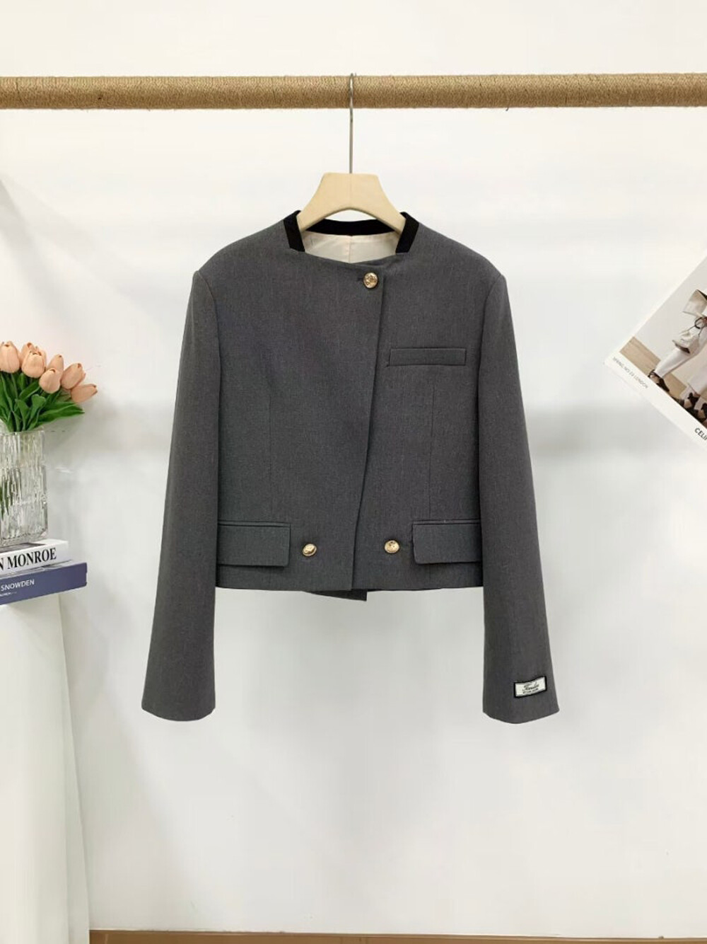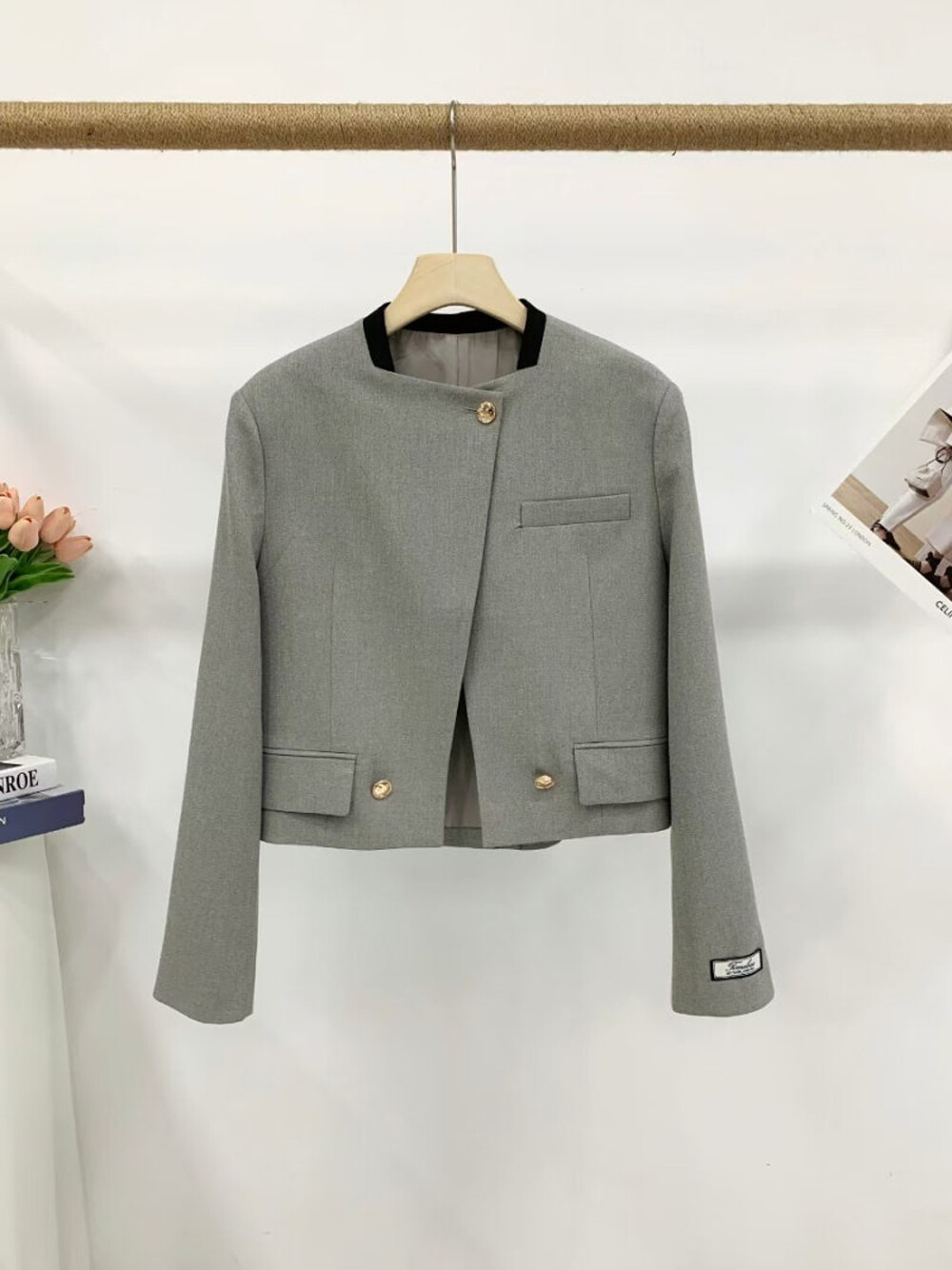 울 블렌드 크롭 자켓입니다.