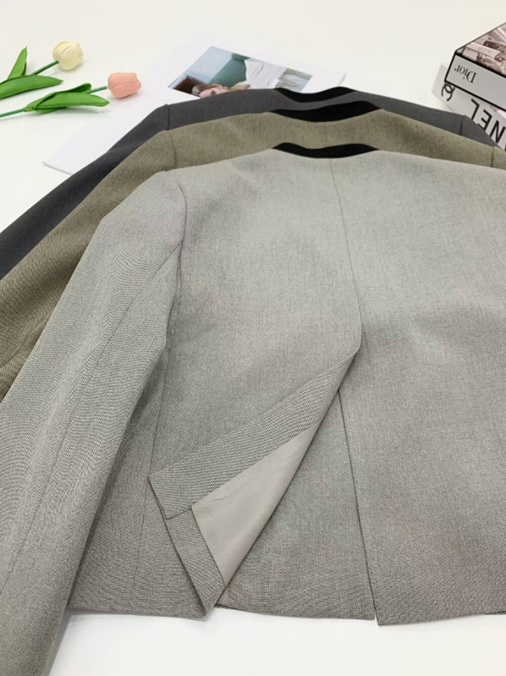 소맷단 슬릿과 깊은 백 슬릿
